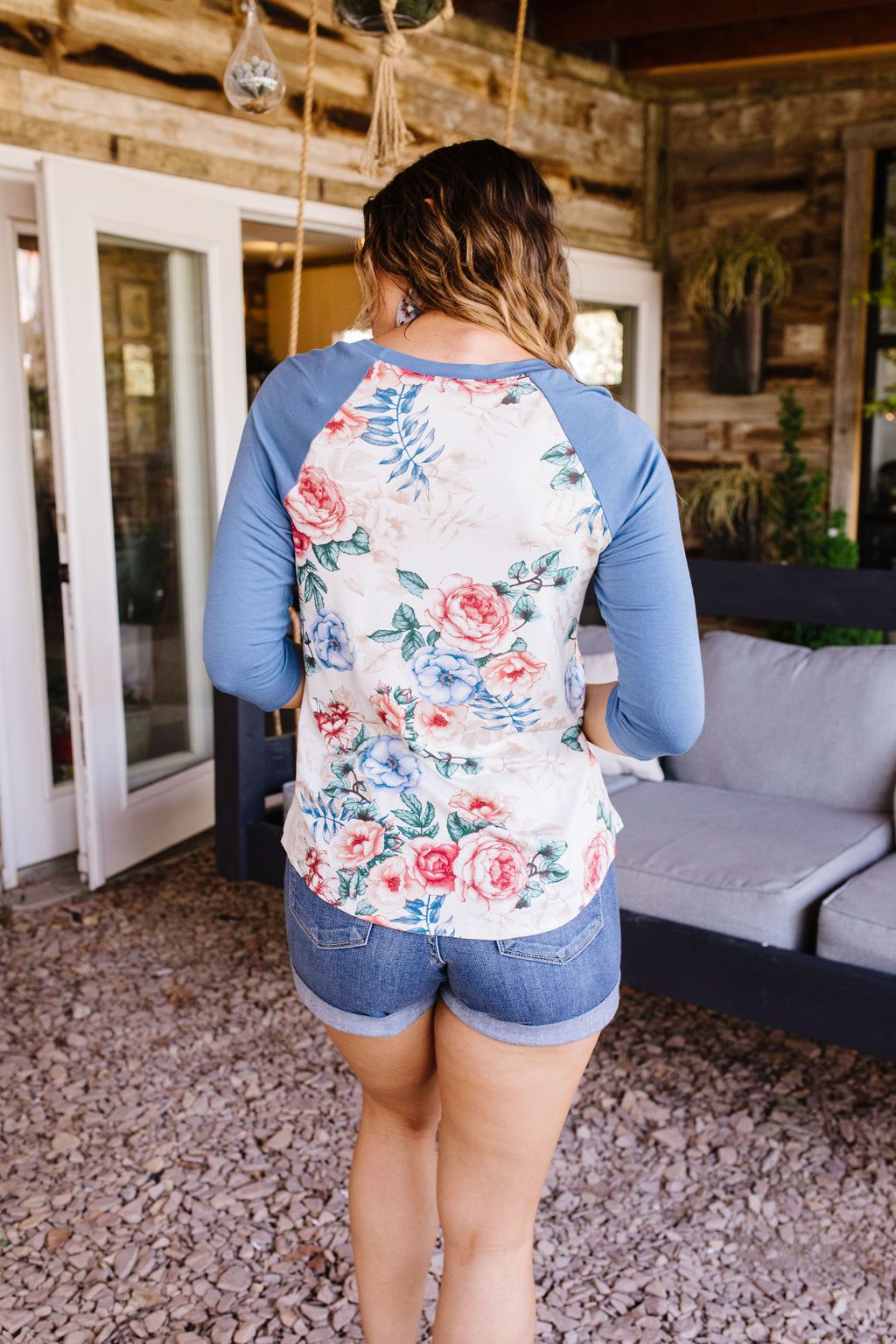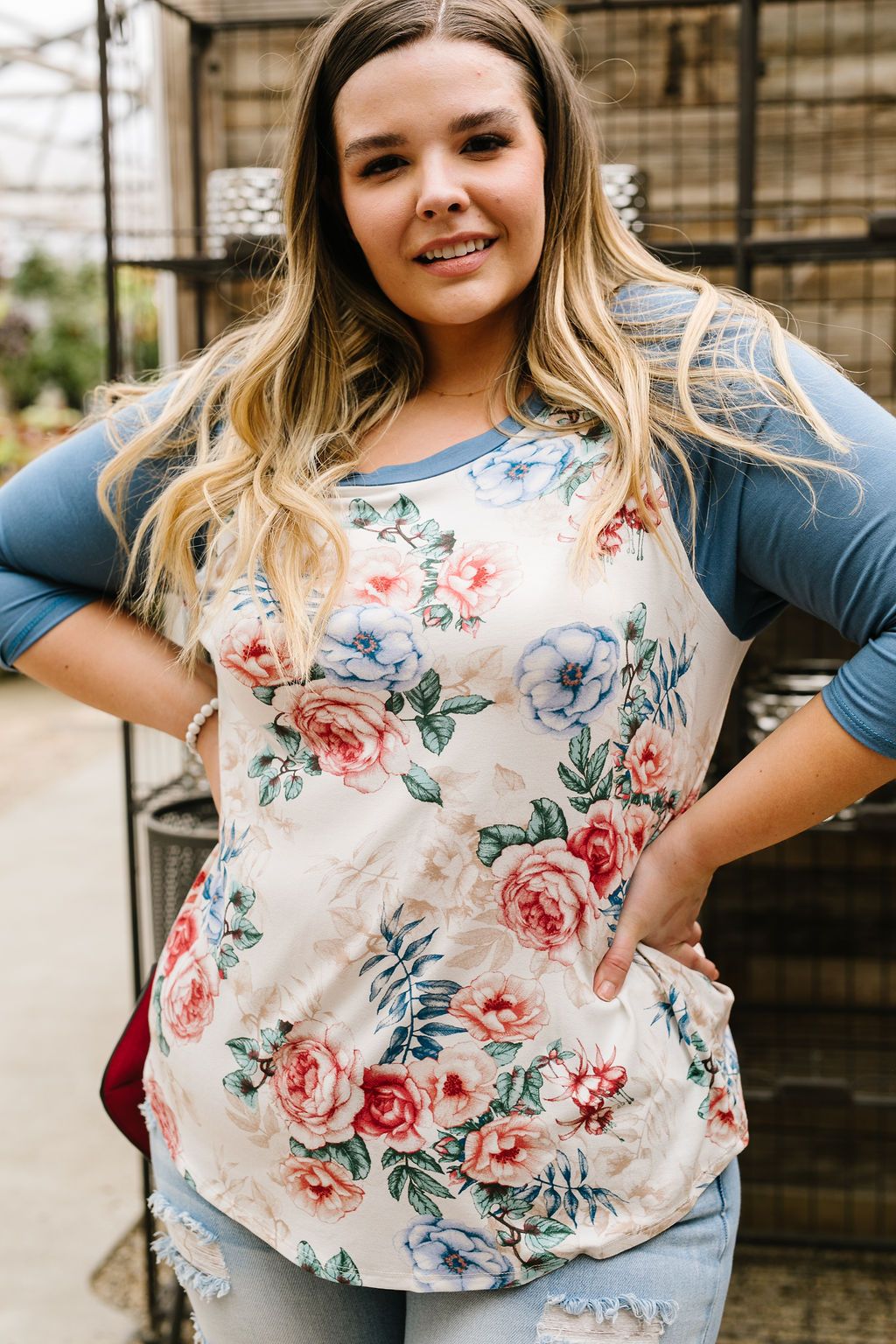 Relationships are hard, right? Especially when you’re stuck at home a lot more than normal! This little top has the right idea though…feminine floral knit meets the more masculine style of a raglan tee for the perfect marriage of comfort & style.