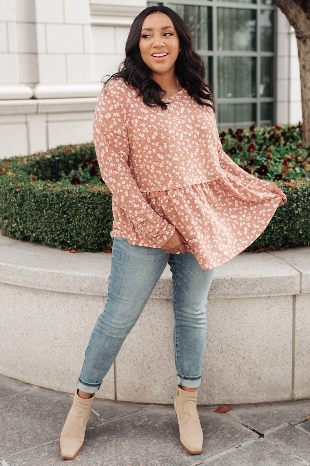 Warm florals are a must have this season! This beautifully cut peplum top with a flattering round neckline will layer perfectly under a jacket or worn on its own. Stay trendy & stylish with the All About Flowers Top!