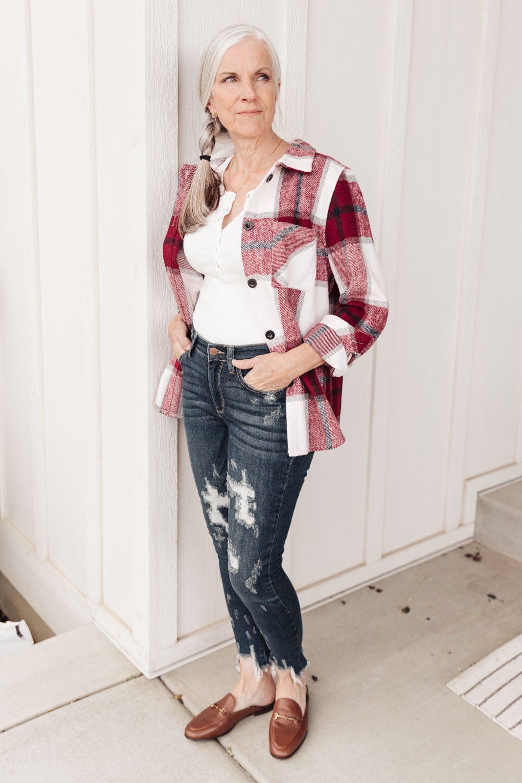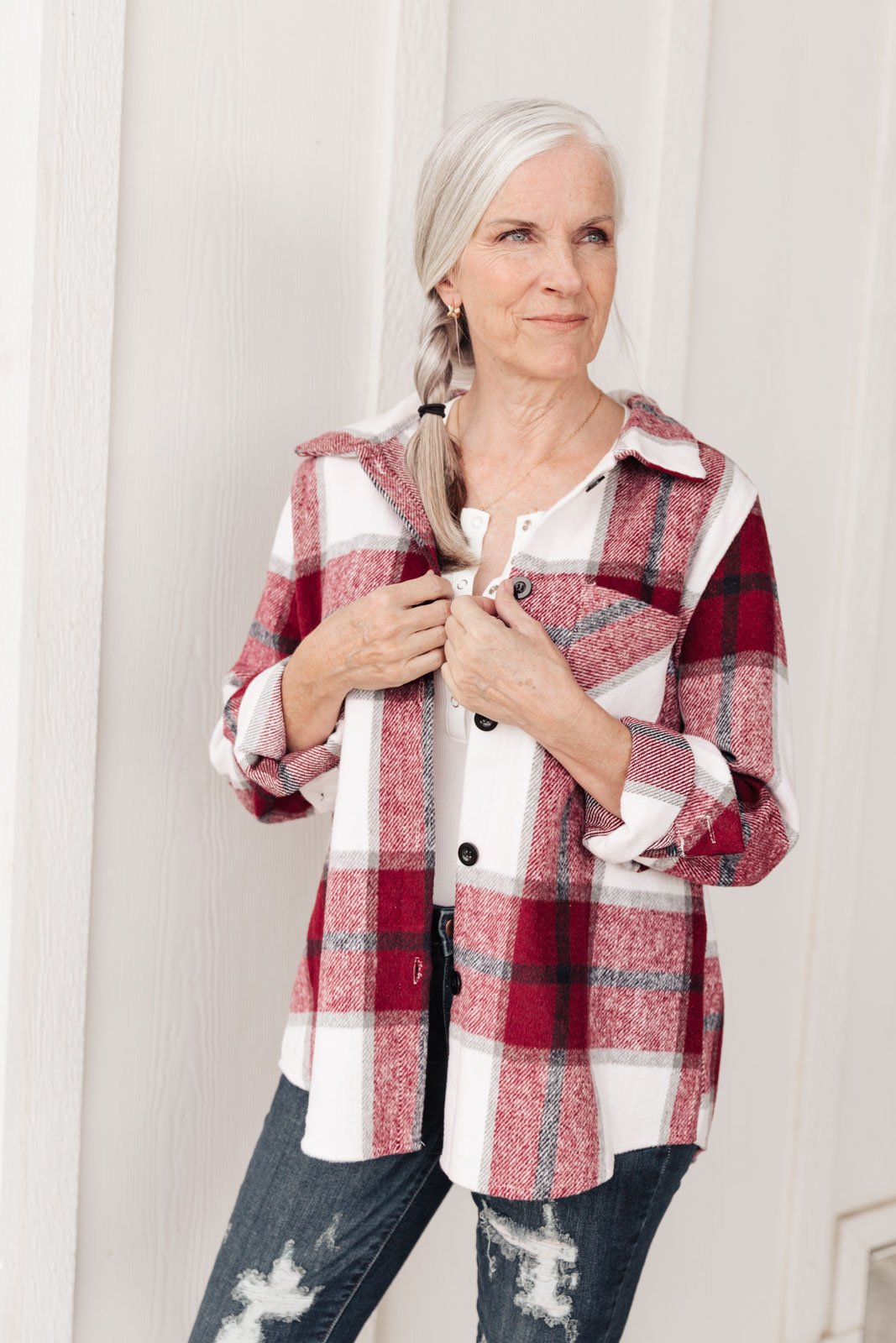 Keywords: Burgundy Top, Burgundy Jacket, Burgundy Shacket, Flannel