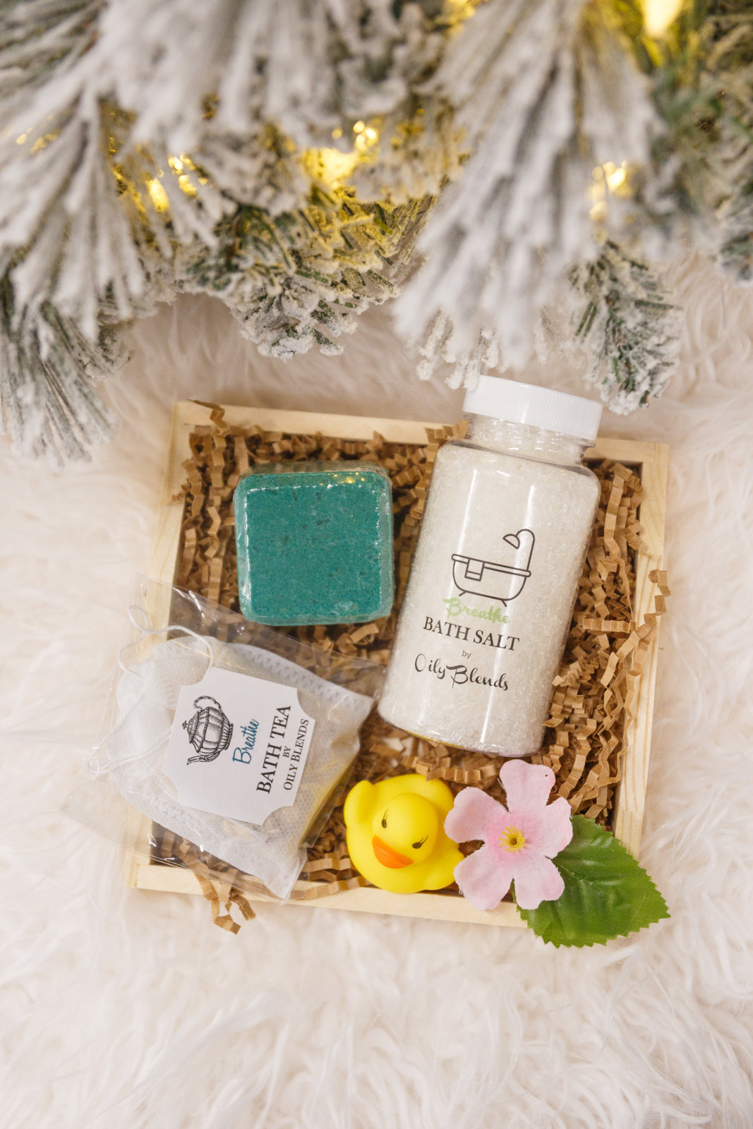 The Bath Collection Gift Set is essential for the holiday seasons! Each set comes with a rubber ducky, 1 hand mixed bath bomb, bath salt, and bath tea.