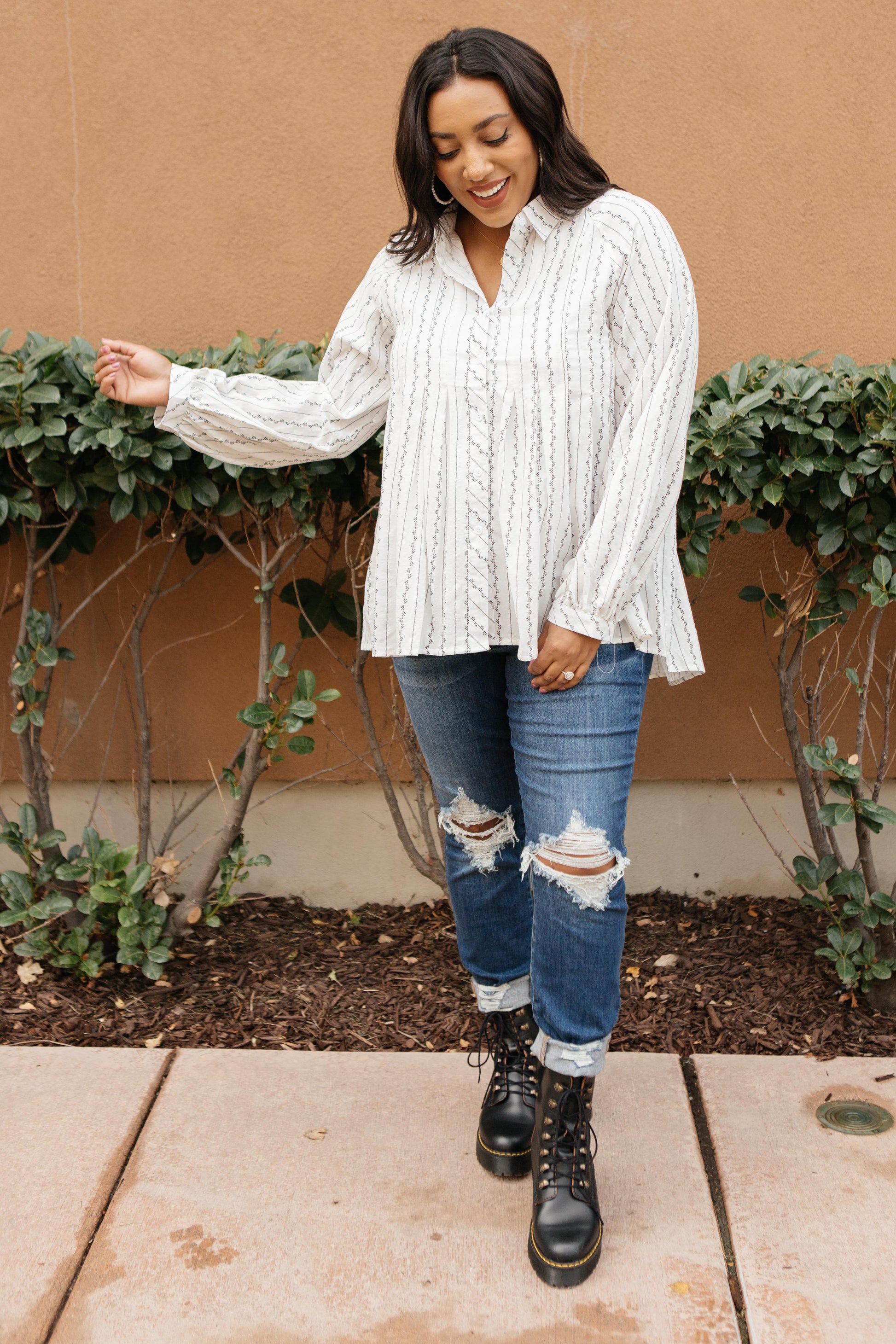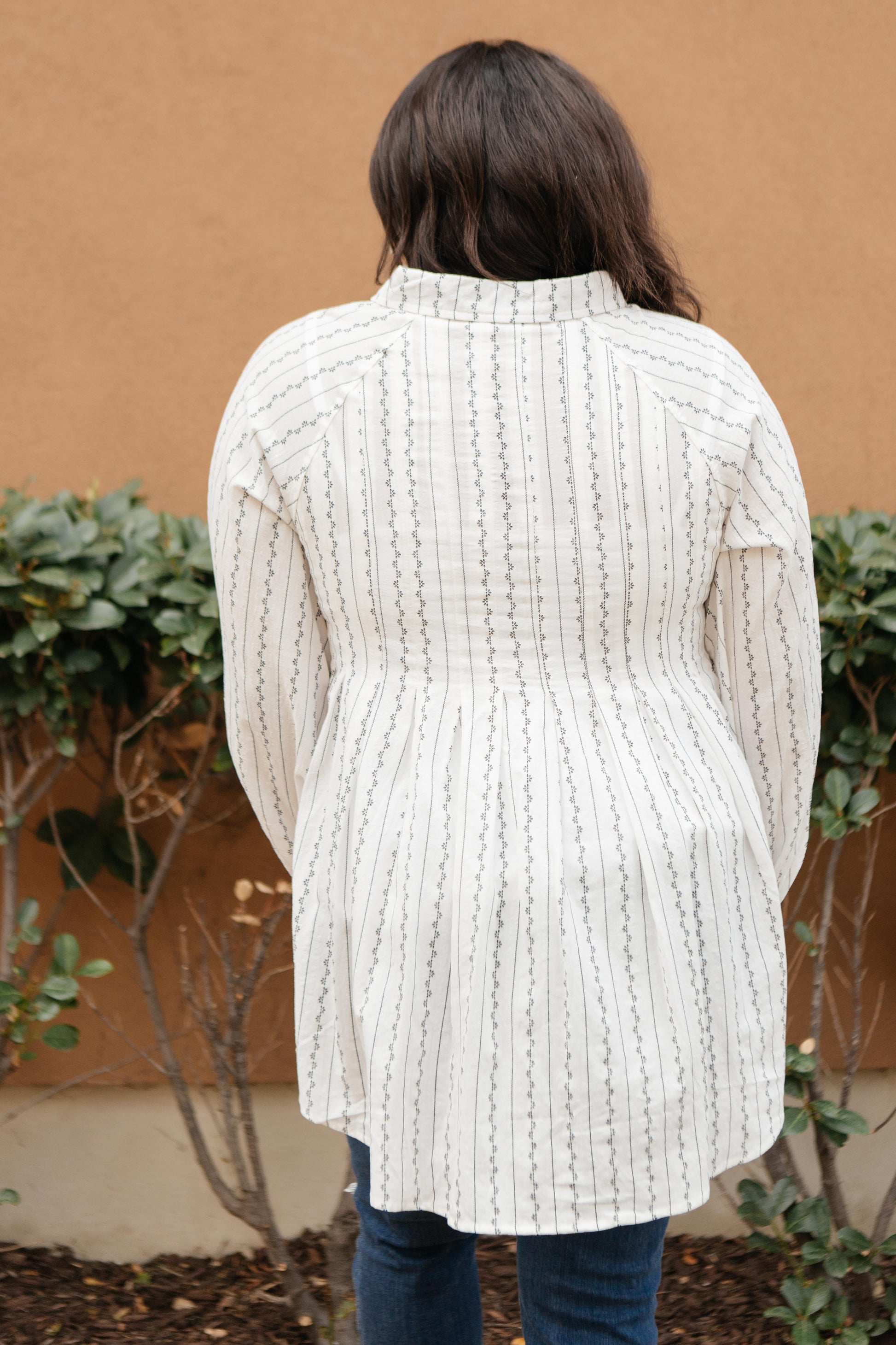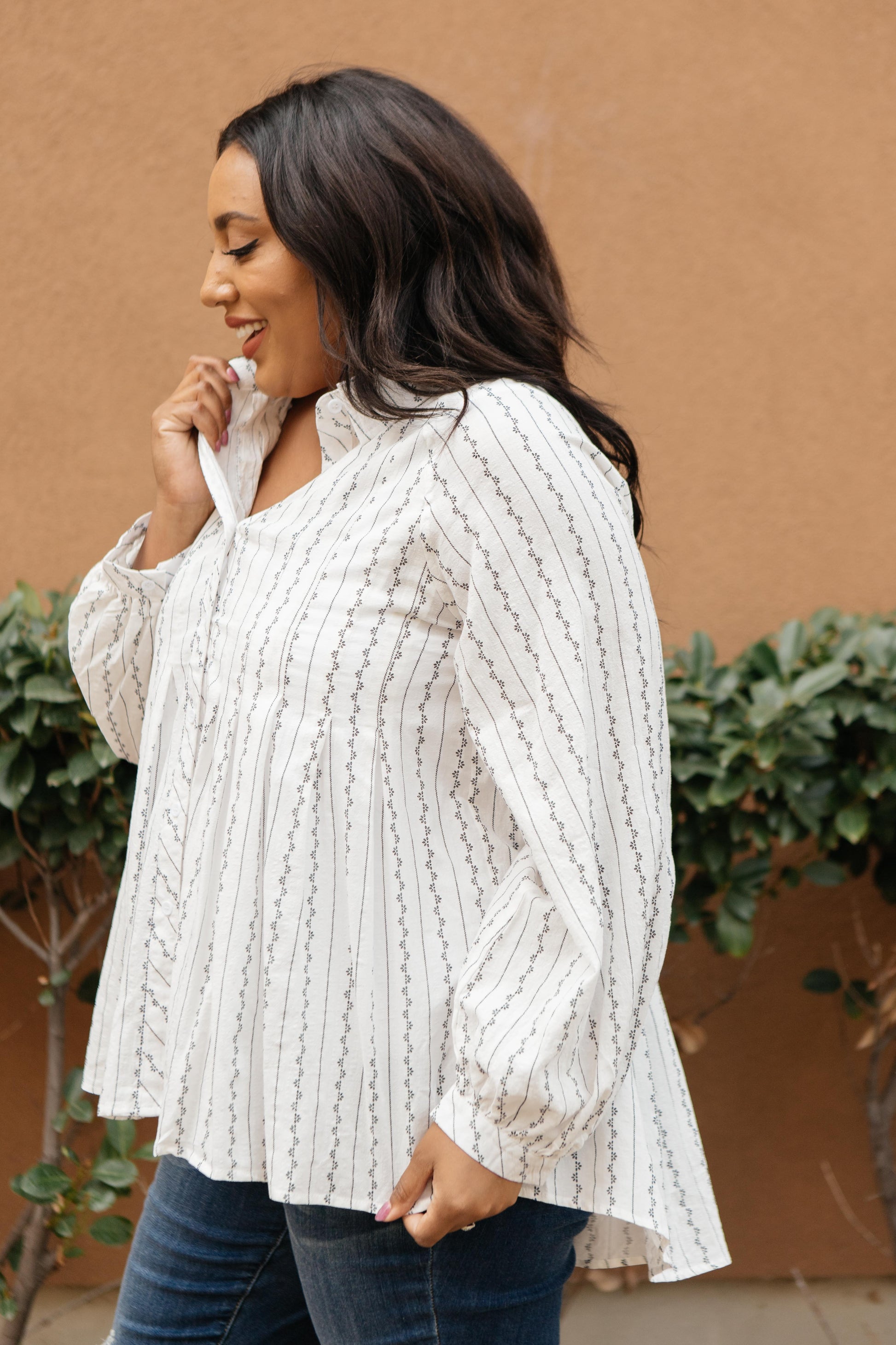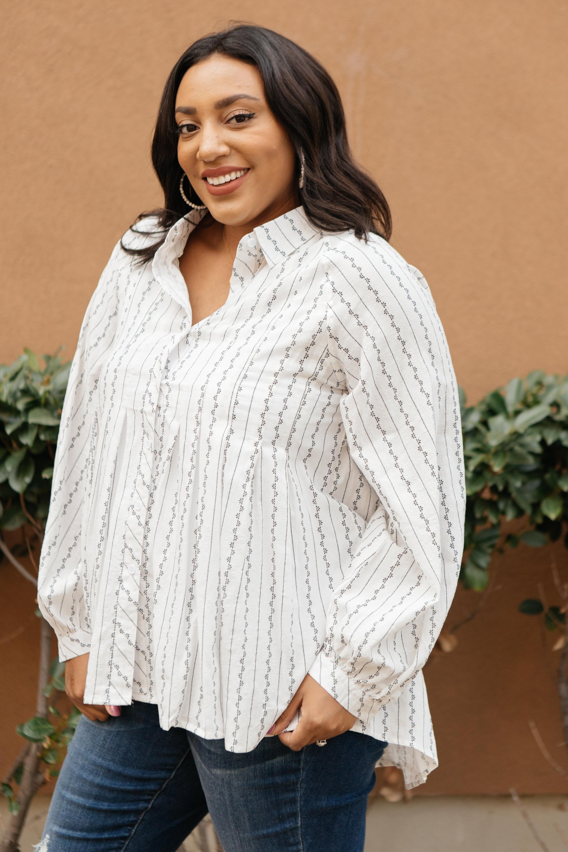 The Bethany Button-Up Top is a fantastic choice for those wanting to add a lovely modern functional button-up top to their wardrobe! This blouse has a simple and charming pattern covering it, and flowy, long sleeves. It's also a fantastic cut to highlight your curves and keep you looking your best.