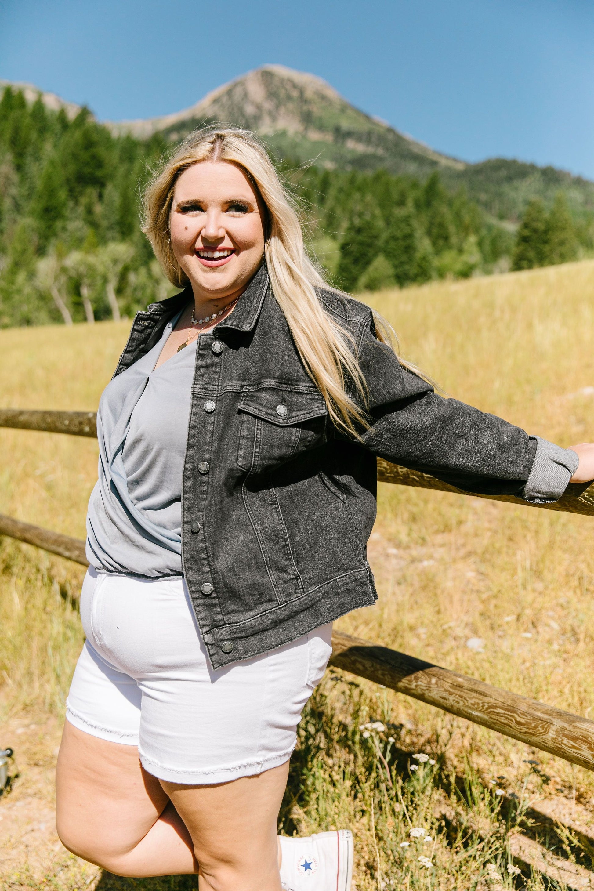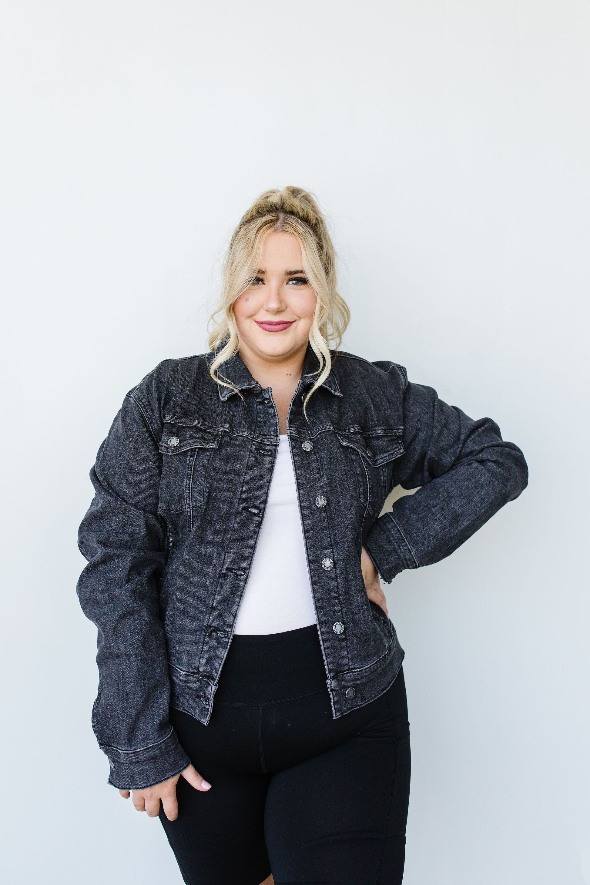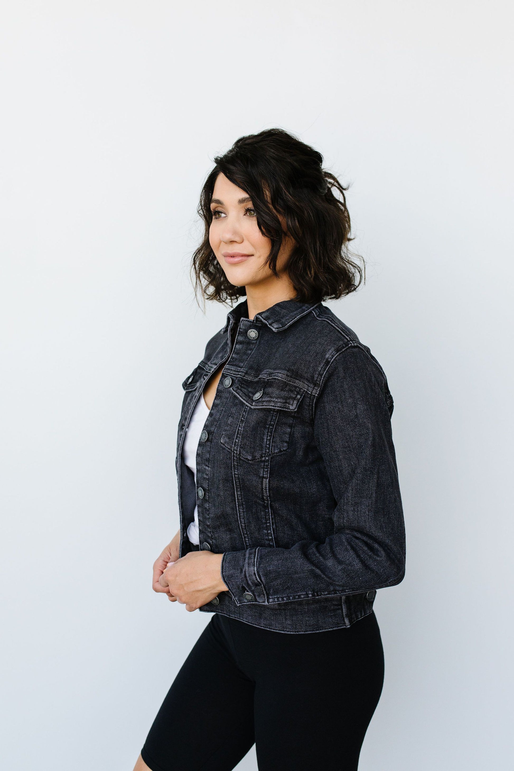 This jacket is truly everything it appears to be! A black denim jacket is way more essential than you think it is, and you'll love that this jacket holds its shape and fits at the perfect semi-cropped length to best suit a woman's figure! It's a must-have fall item that you'll adore for many more seasons to come.