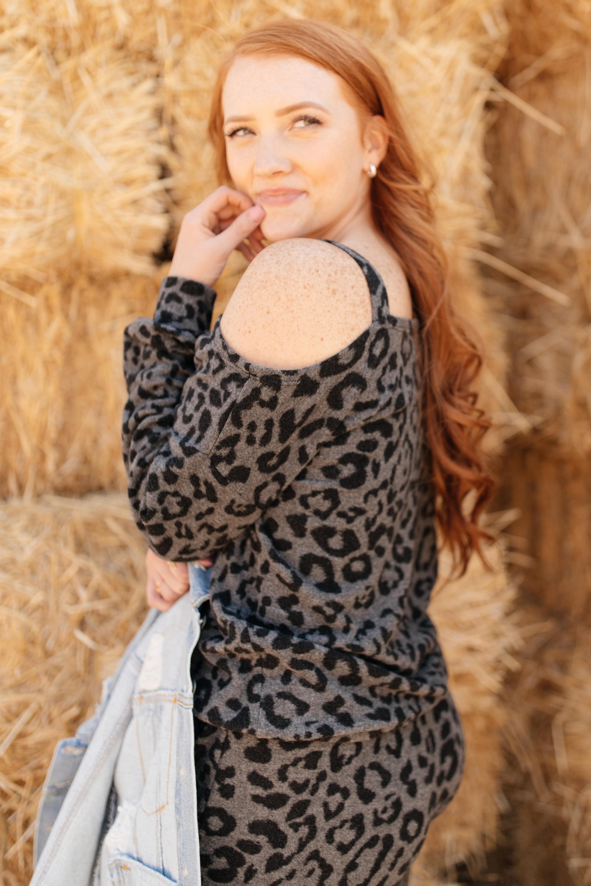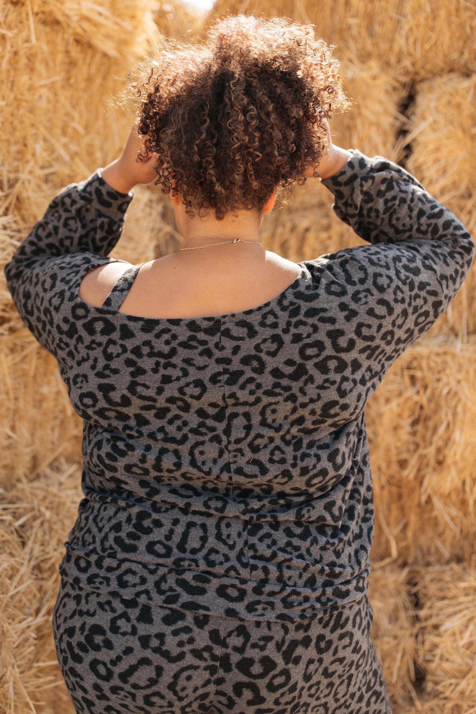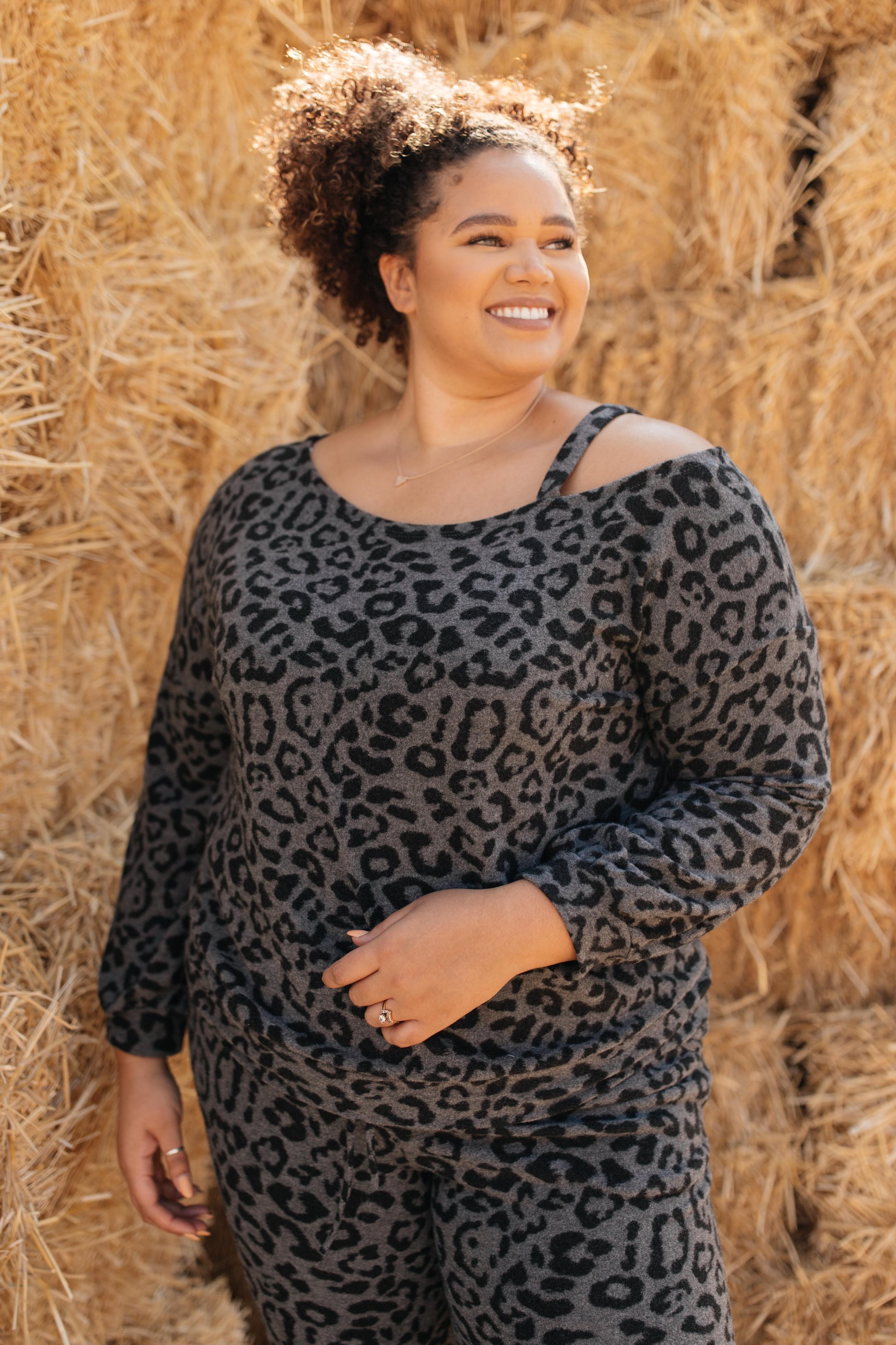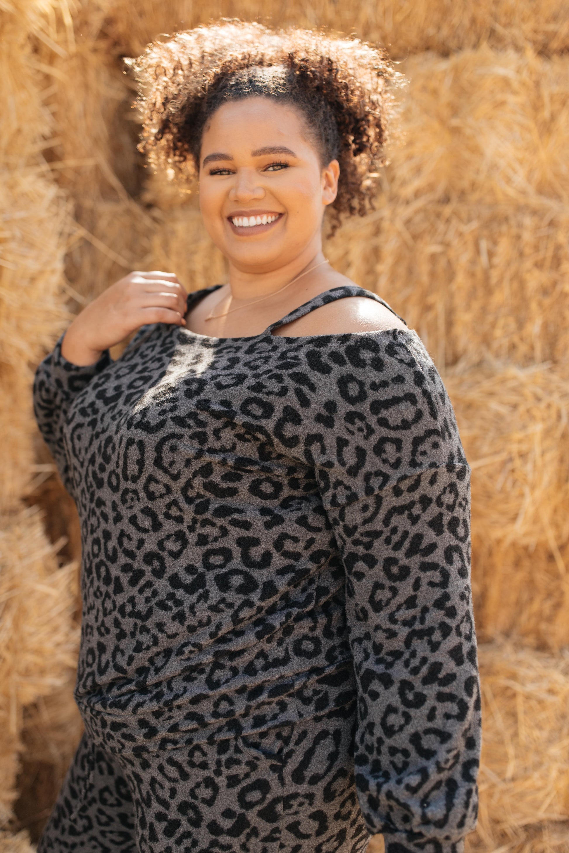 This spotted top belongs to a set that can double as casual wear and nighttime wear! It features a slanted neckline with a cute cold shoulder held up by a simple strap. It's one of the softest materials you'll ever touch. I promise, when you have this on, you'll feel like you're in heaven.
