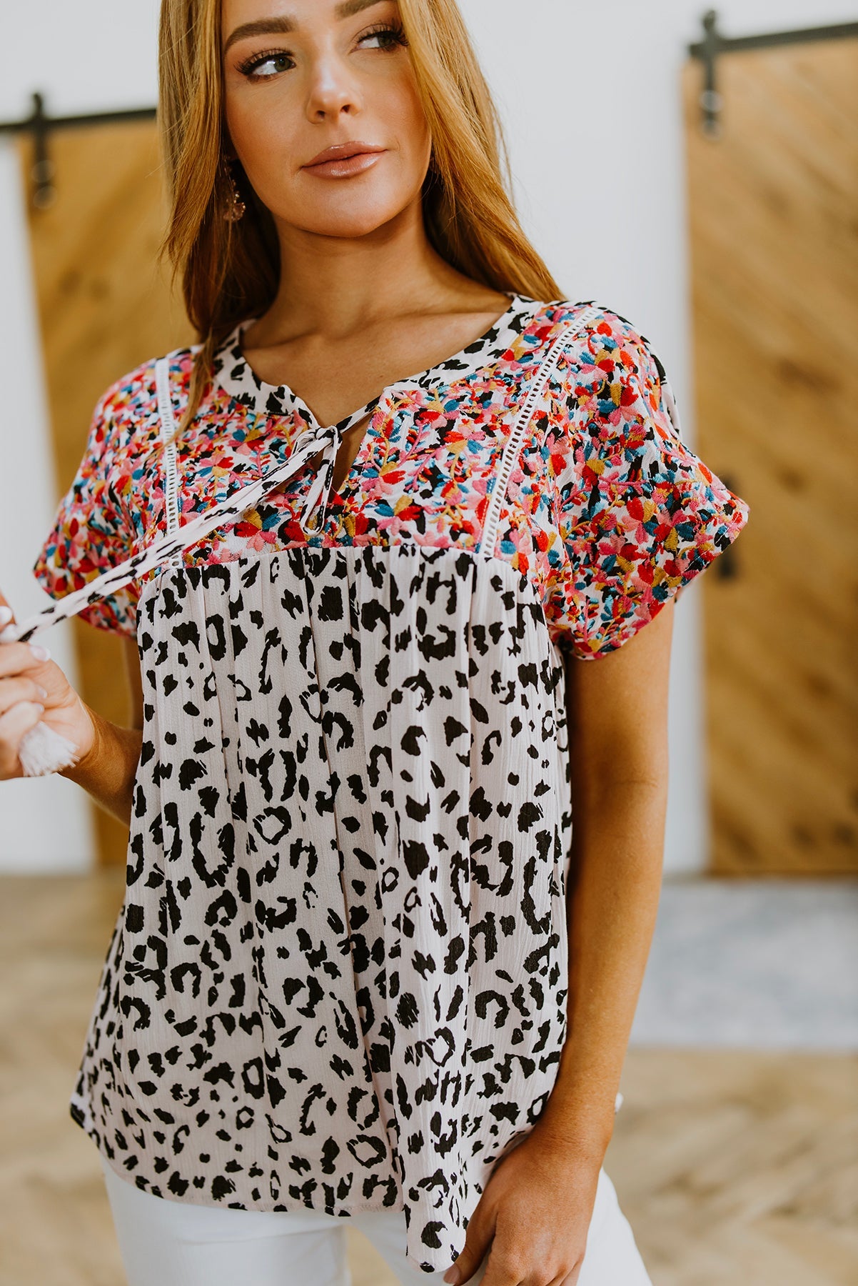 Step into the wild side with our Bohemian Dreams Leopard Top! This stunning top features a woven animal print fabric with playful colorful embroidery, dolman sleeves, and tassel details for a boho-chic look. Make a statement and add a touch of boldness to your wardrobe with this must-have piece.