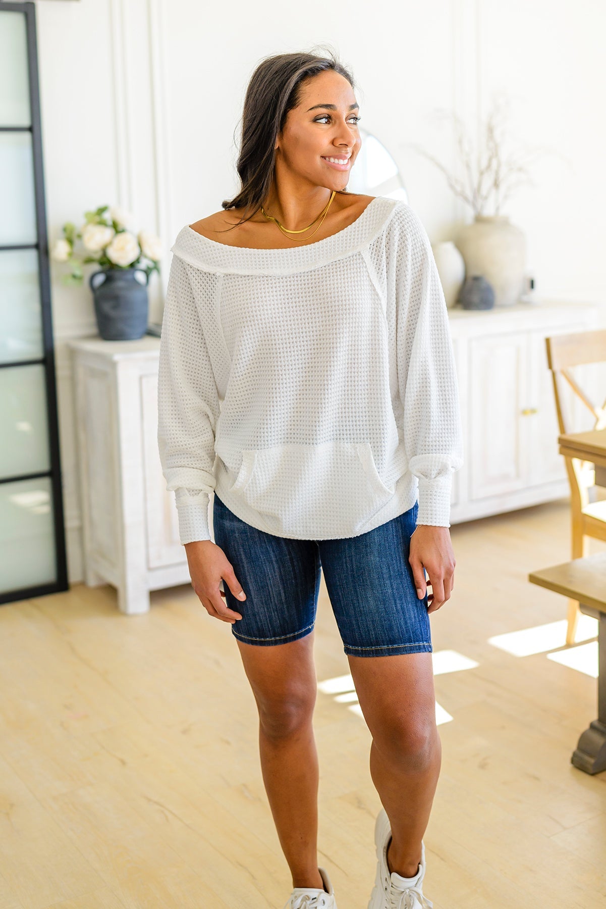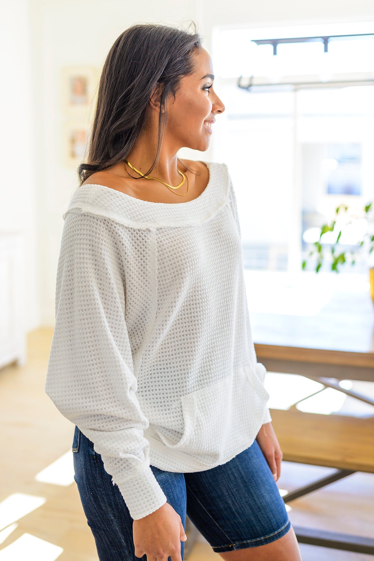 Wrap yourself in comfort and style in our Brandi Boat Neck Top. Featuring a flattering boat neckline, soft waffle knit fabric, a kangaroo pocket, and exposed seam work, you'll look and feel amazing all day long. The relaxed fit and detailed design allow you to show off your signature style with ease and confidence. Get ready to take on the day with the Brandi Boat Neck Top.