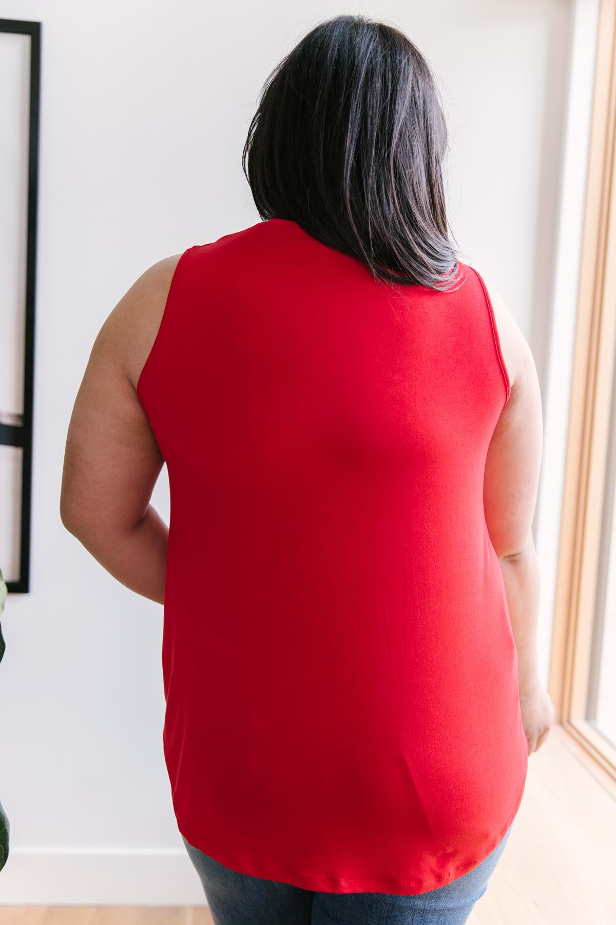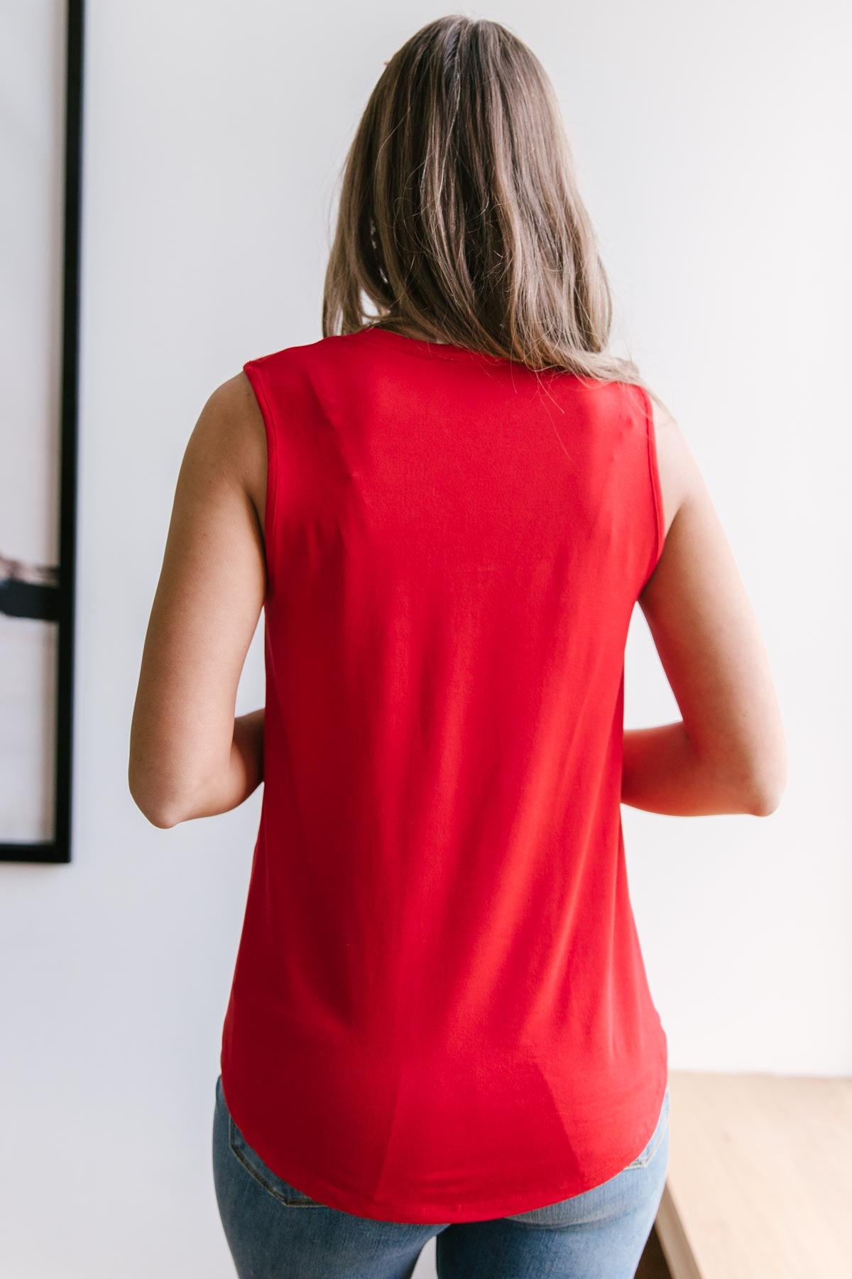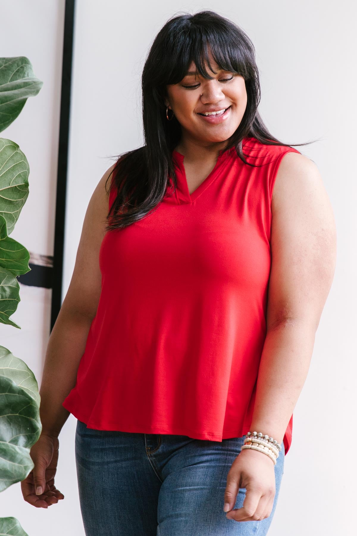 Chic and easy to wear, the Bring It On Top In Red is a vibrant tank that's perfect for any occasion. It's cut for a straight silhouette from an ultra soft fabric and features a v-neckline and wide tank straps. Style it under a blazer for a bright pop of color, or wear it with a pair of jeans for a casual feel.