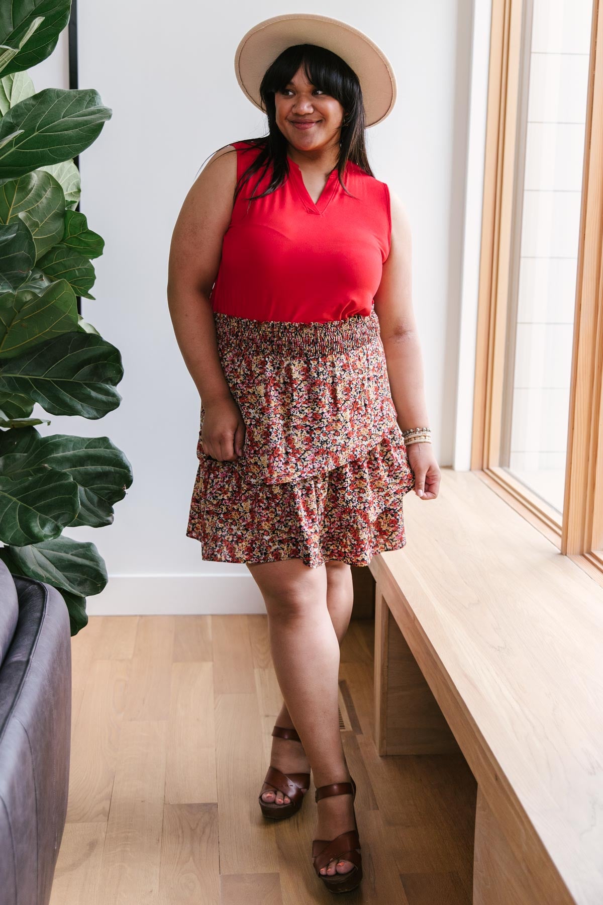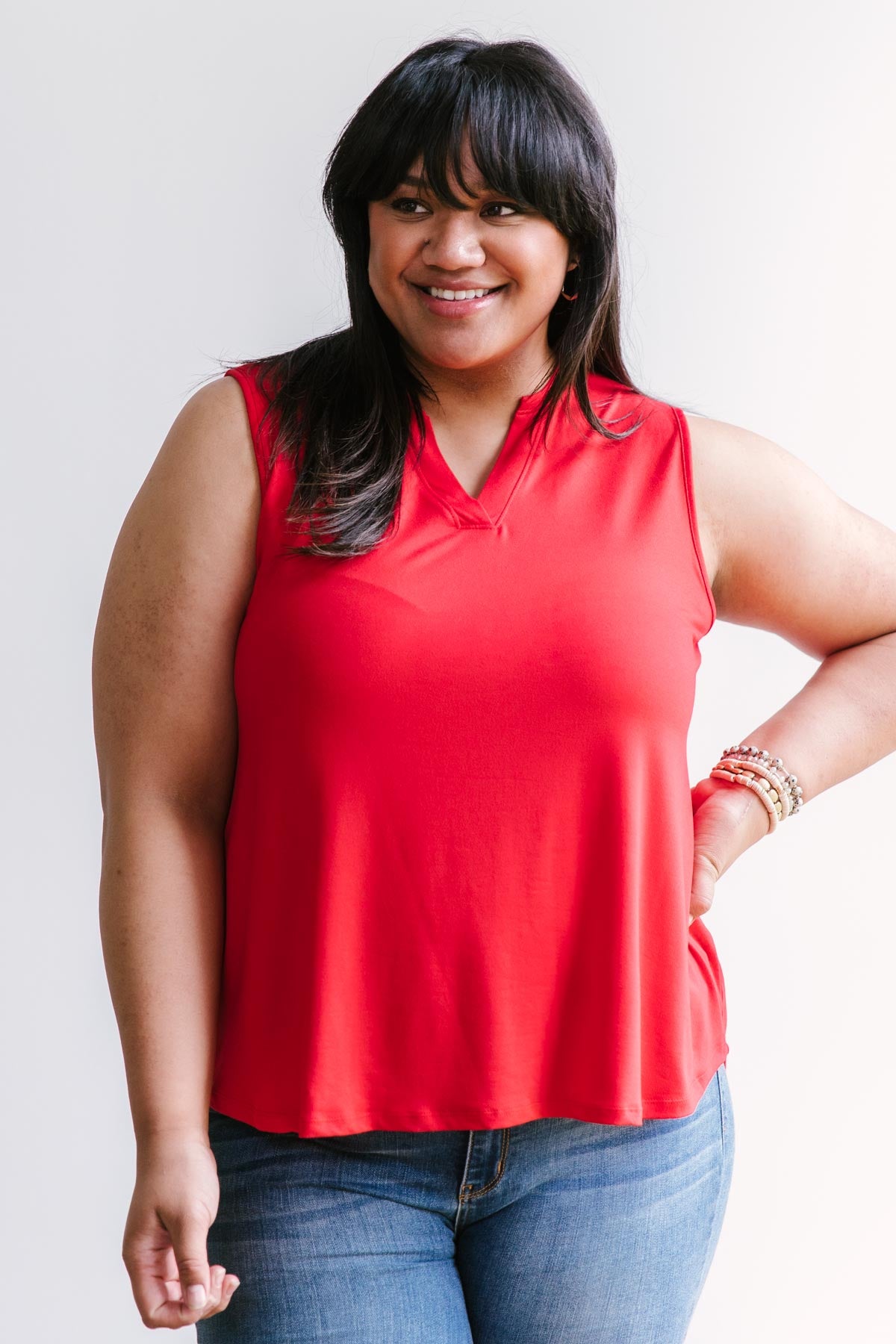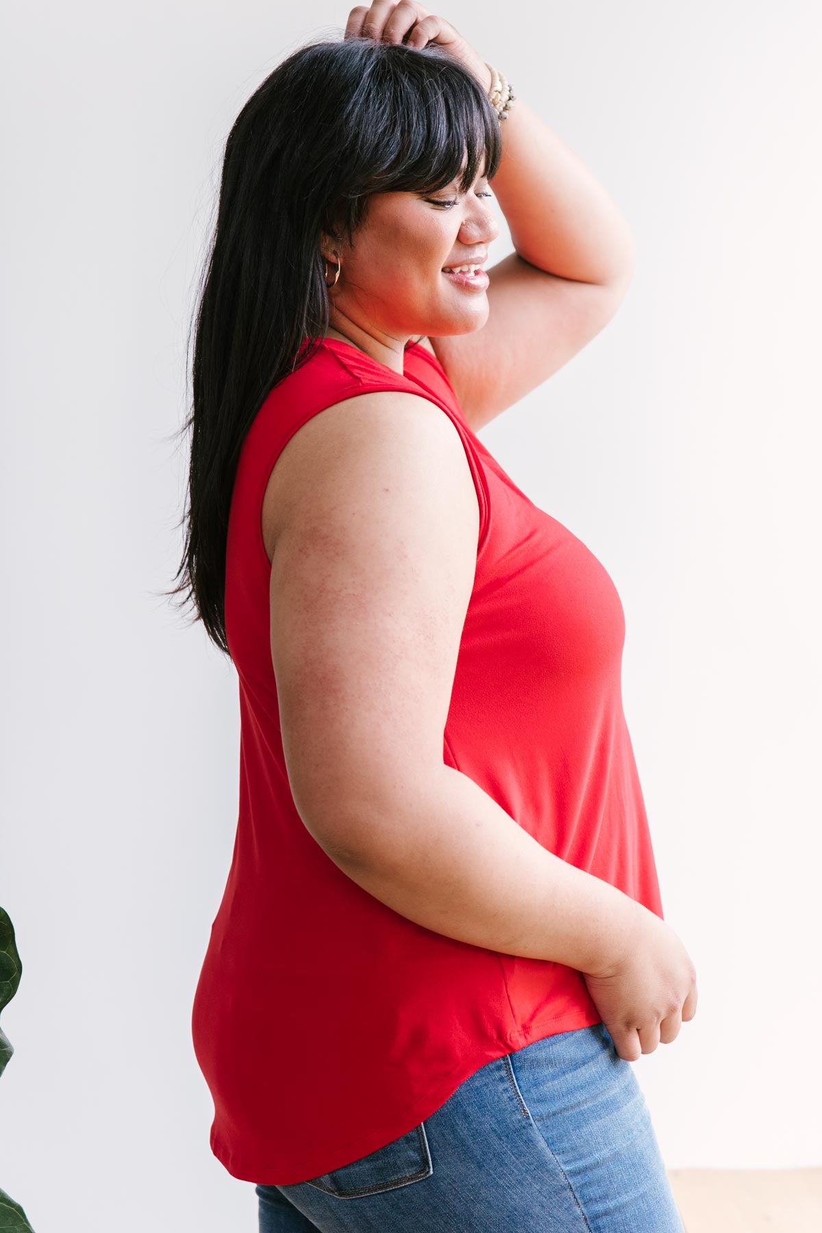 Chic and easy to wear, the Bring It On Top In Red is a vibrant tank that's perfect for any occasion. It's cut for a straight silhouette from an ultra soft fabric and features a v-neckline and wide tank straps. Style it under a blazer for a bright pop of color, or wear it with a pair of jeans for a casual feel.