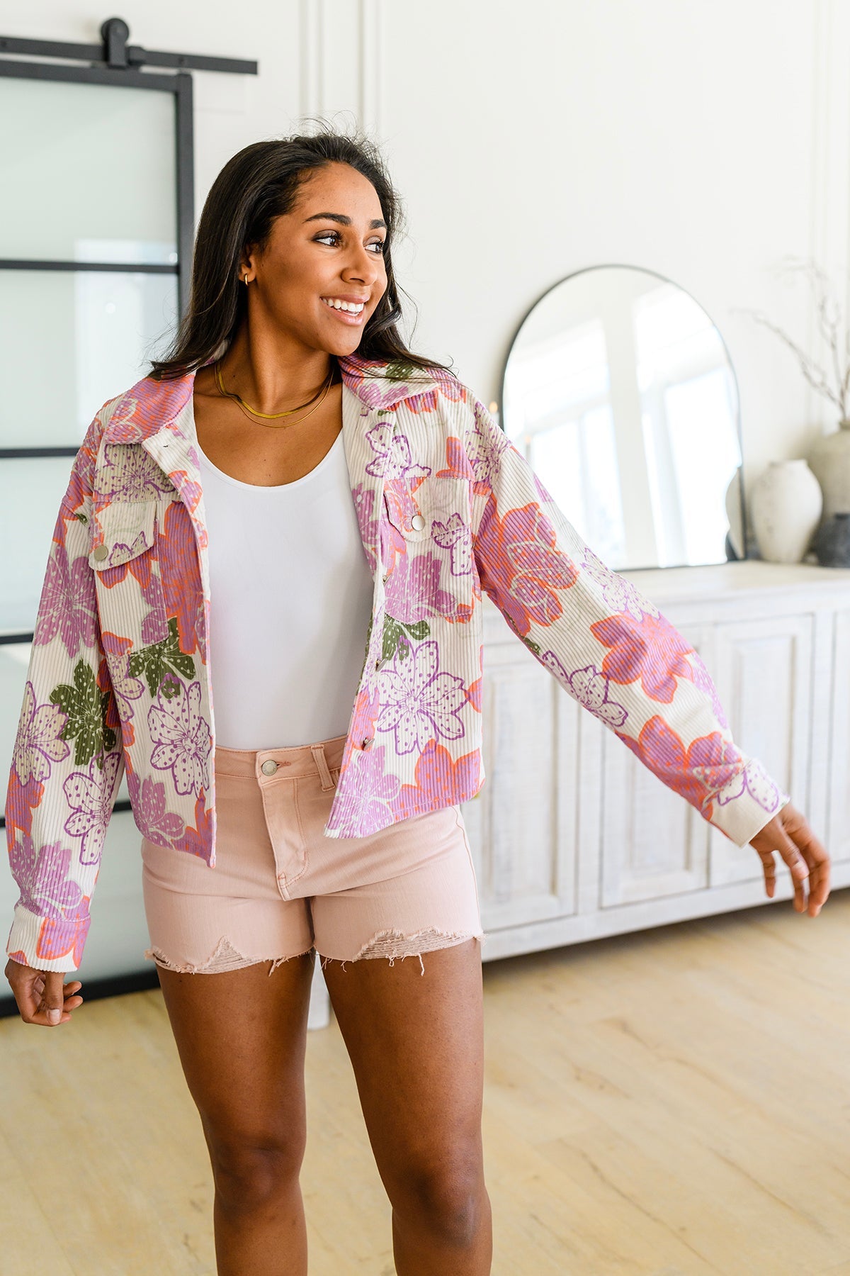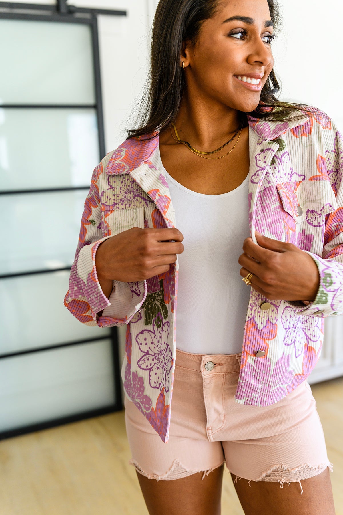 Let your love of flowers bloom in our Bring the Bouquet Floral Corduroy Jacket! This lightweight corduroy design features a dropped shoulder, patch pockets, and a button closure for an easy fit. Plus, it's soft, stretchy, and adorned with a bright statement floral print for an eye-catching look. The perfect layer for your spring wardrobe.