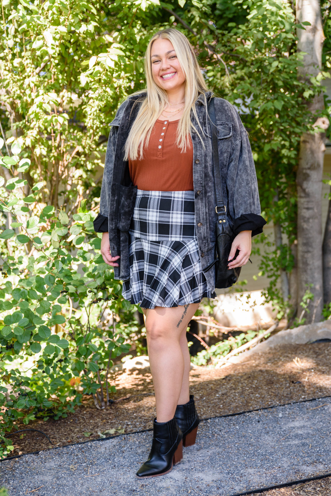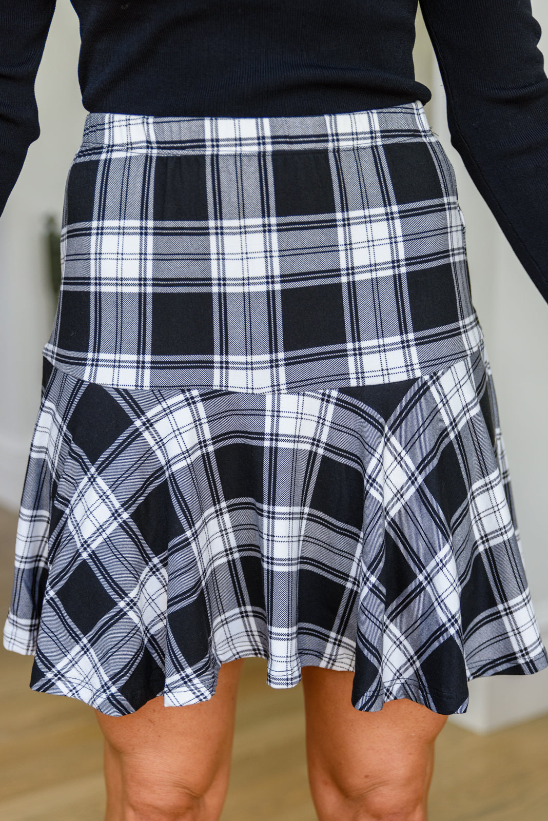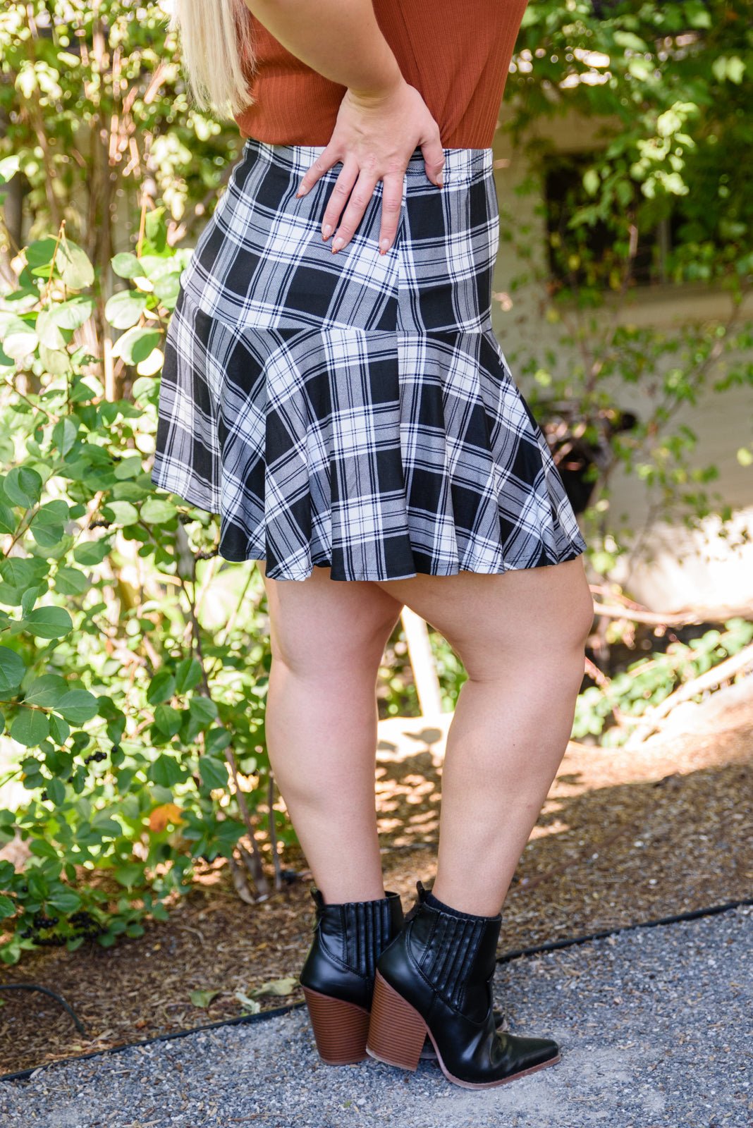 The 90's are calling...they want their skirt back! The best thing about fashion is that trends are constantly cycling and we are so glad the plaid mini has returned! The Call Me On Line Two Plaid Mini Skort has the cutest details, featuring a black and white plaid print that decorates the entire skirt, topping an elasticated high waist, hidden shorts, and a ruffle hem. Go total 90's with knee high socks and a white button up or keep it modern with a black sweater and heeled boots.