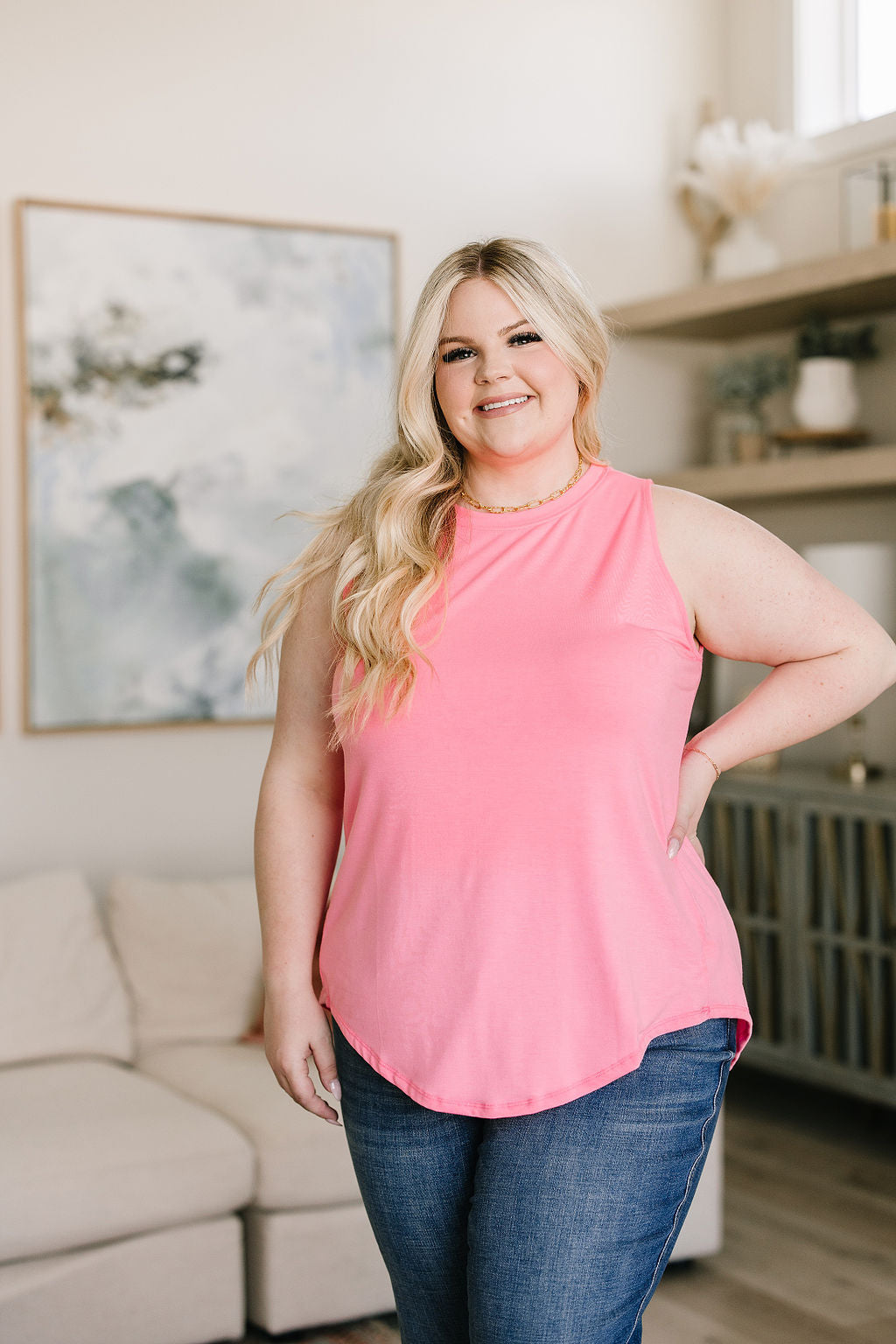 As the weather gets warmer, the sleeve length gets shorter! The Can't Wait For Spring Hi-Low Sleeveless Top is the perfect transitional piece. In a stunning pink, this lightweight stretchy tank features a sleeveless cut with a round neckline, topping a relaxed fit bodice ending at a subtle hi-low hem.
