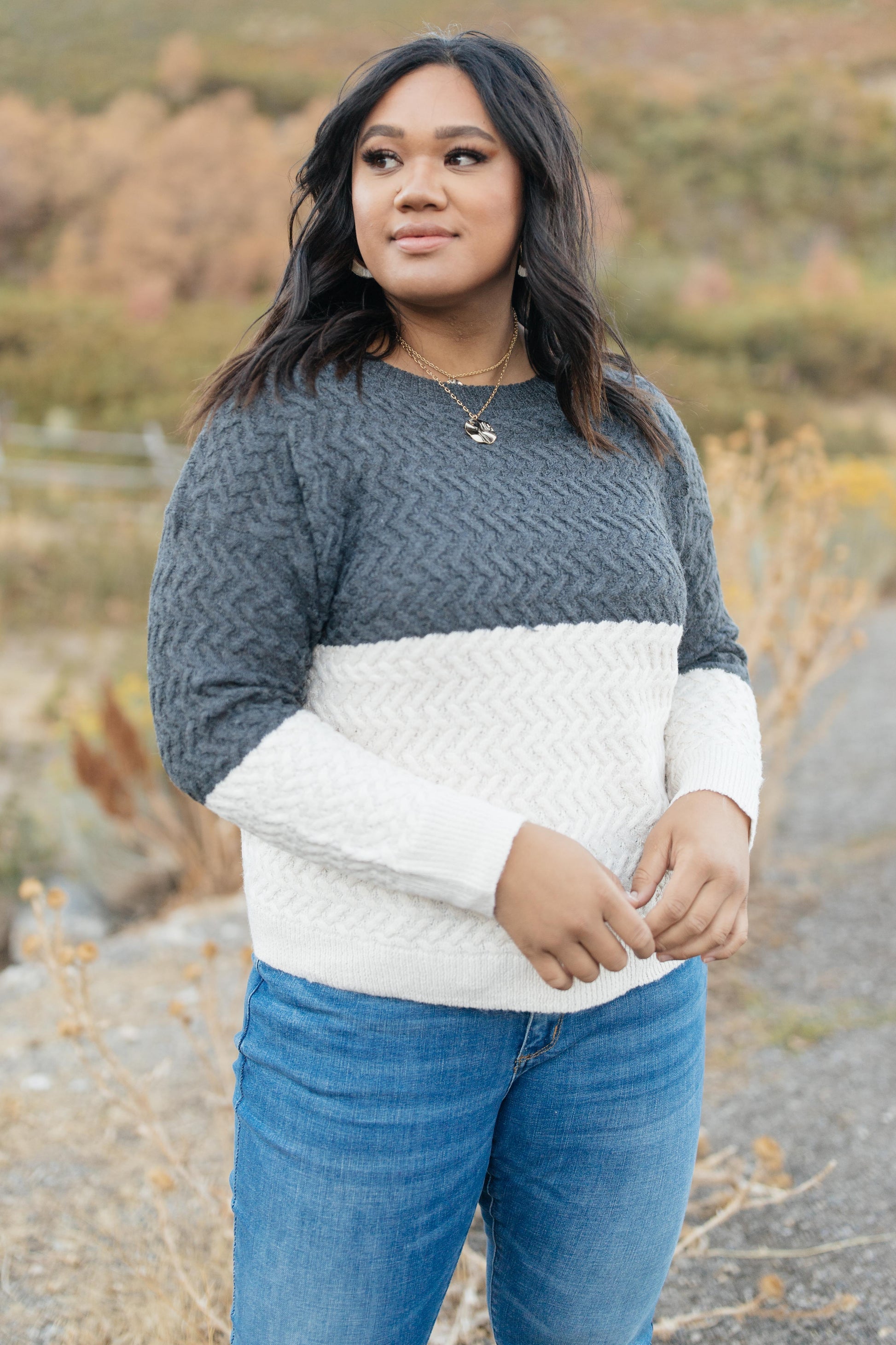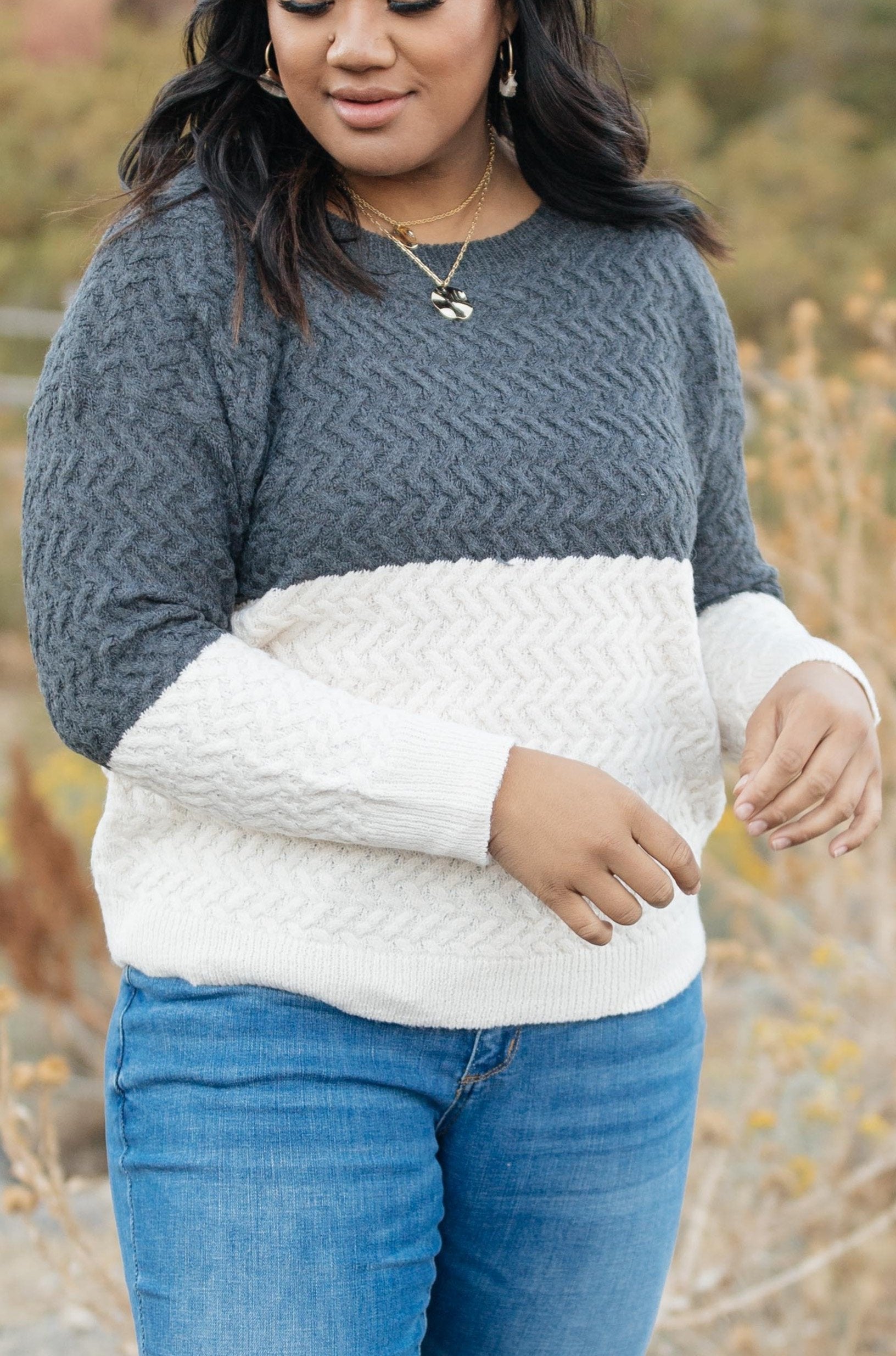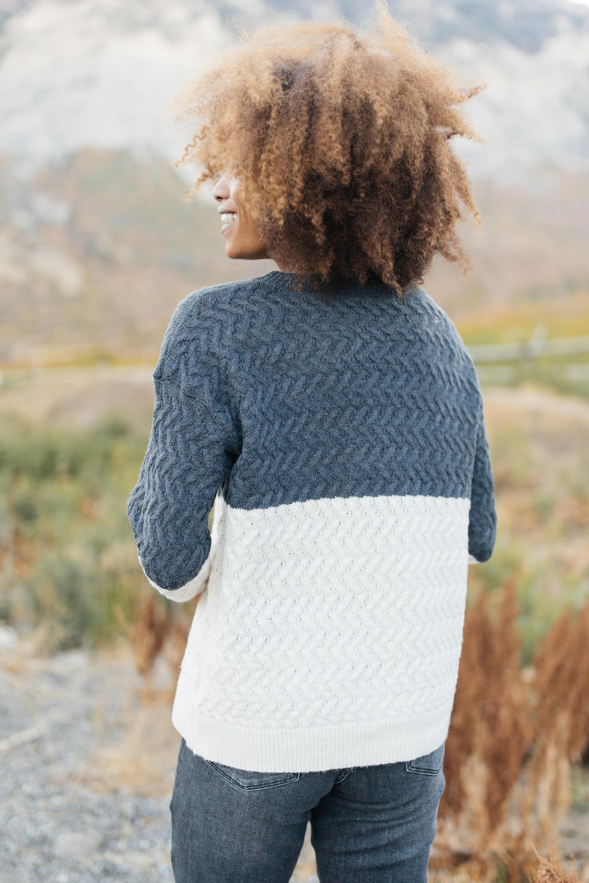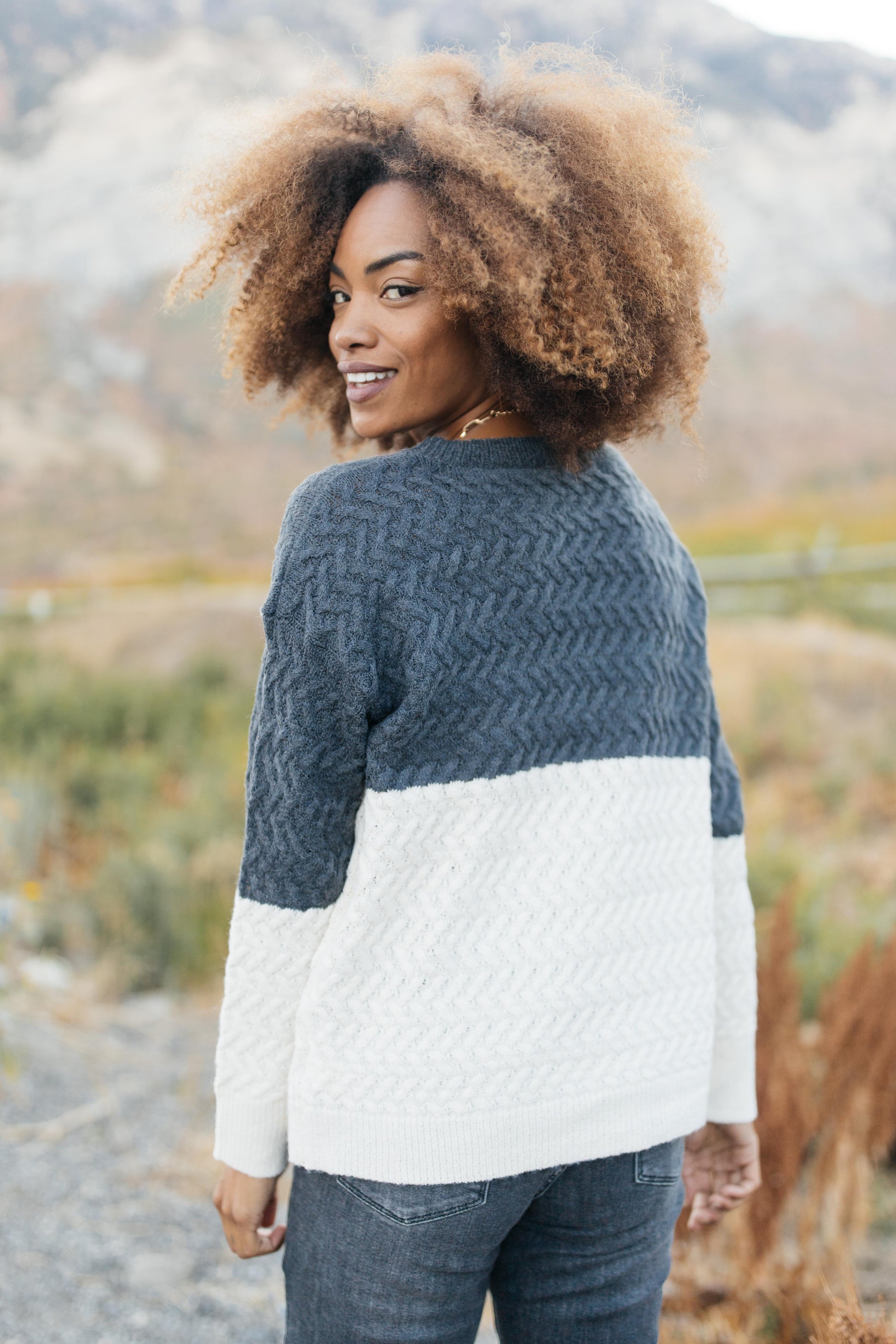 Little did you know such a casual and cozy sweater could bring you so much joy! This top is a great color block option that's a textured knit as well. It features a high crew neckline and long sleeves! It's also a heavy knit material and has a decent amount of stretch to it so you can be so comfortable.