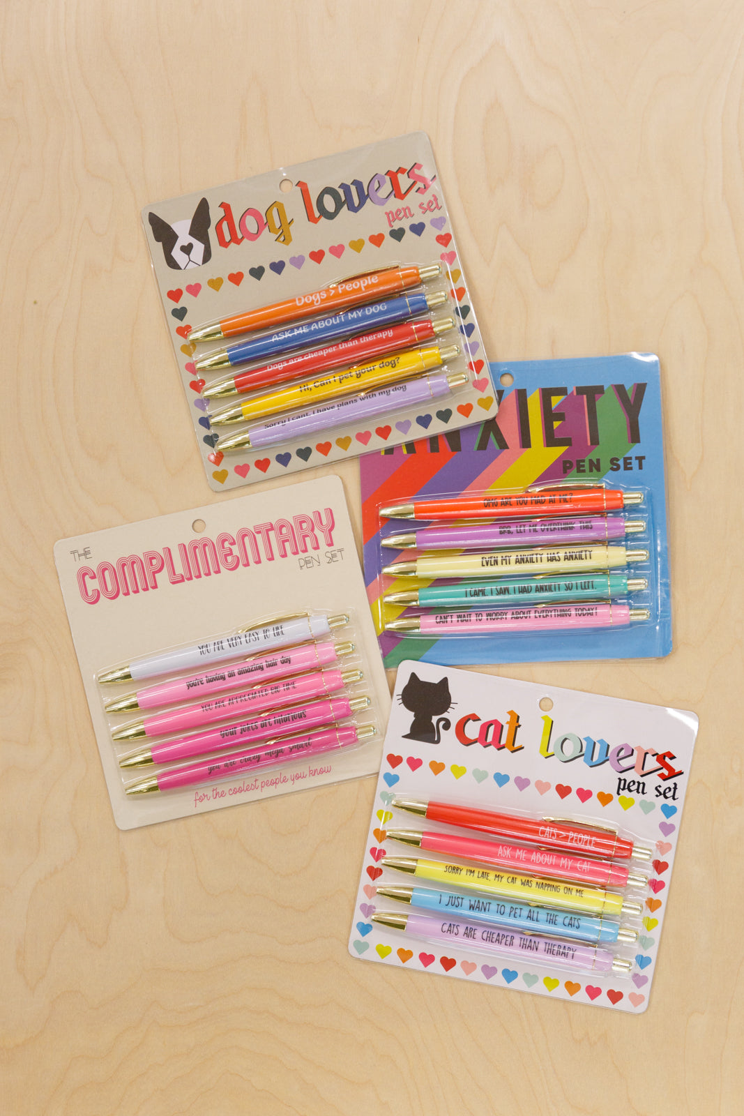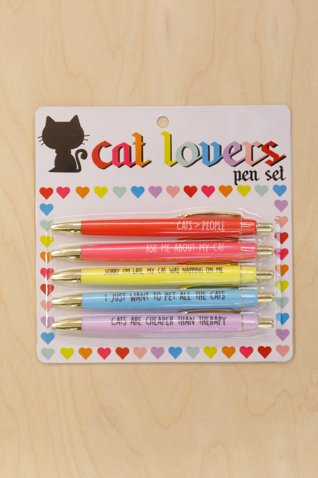 This adorable pen set features five different colored pens, each with a different quote centered around your love for cats. This will make the perfect gift for any cat lovers in your life! Each pen reads:
