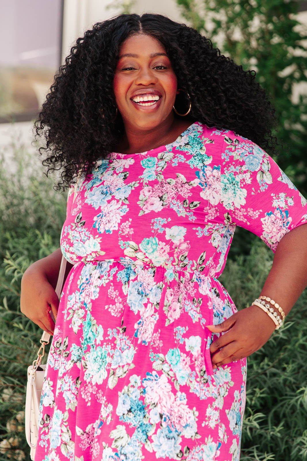 The bright colors in the Celeste Maxi Dress are the pop of color your wardrobe needs! Featuring bold flowers and a flowing skirt, this statement dress also offers a comfortable fabric and high neck silhouette. Pair this with sandals and a denim jacket.