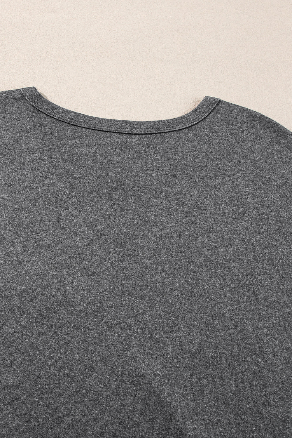 Dark Grey Checkerboard Striped Patchwork Lantern Sleeve Pocketed Blouse