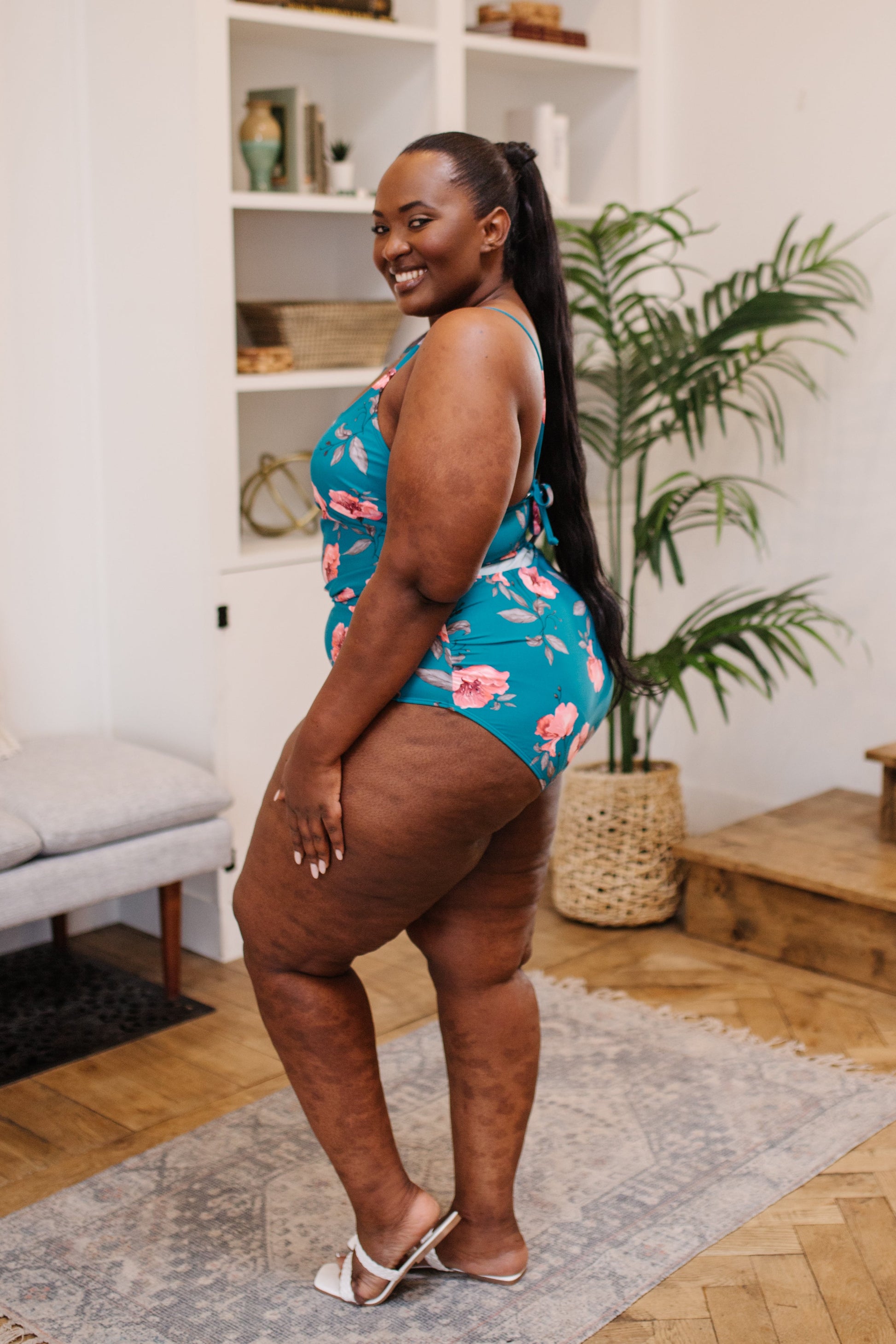 Fall in love over and over again with the Deep Dive Swim Bottoms. Featuring a high waist, accented with ruching on the side seams, decorated in a dainty pink floral print, these will be on repeat all summer!
