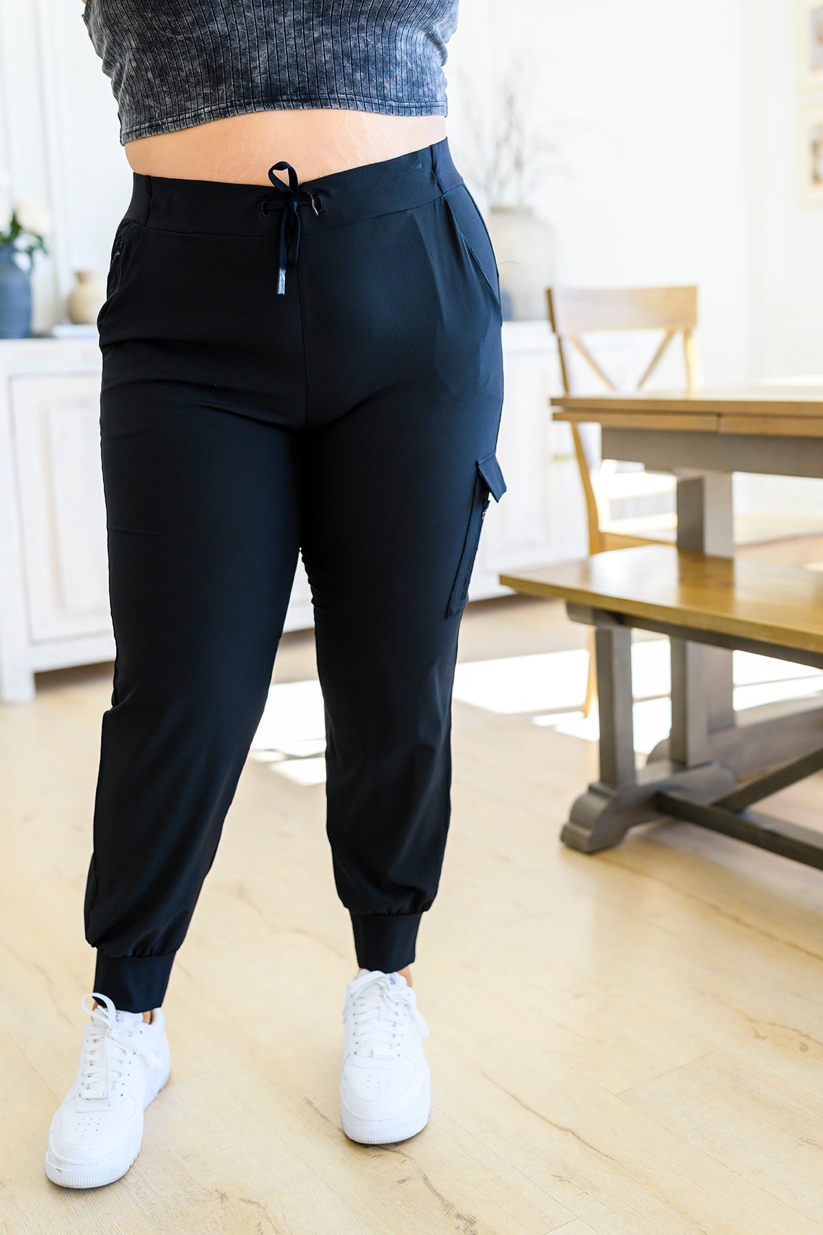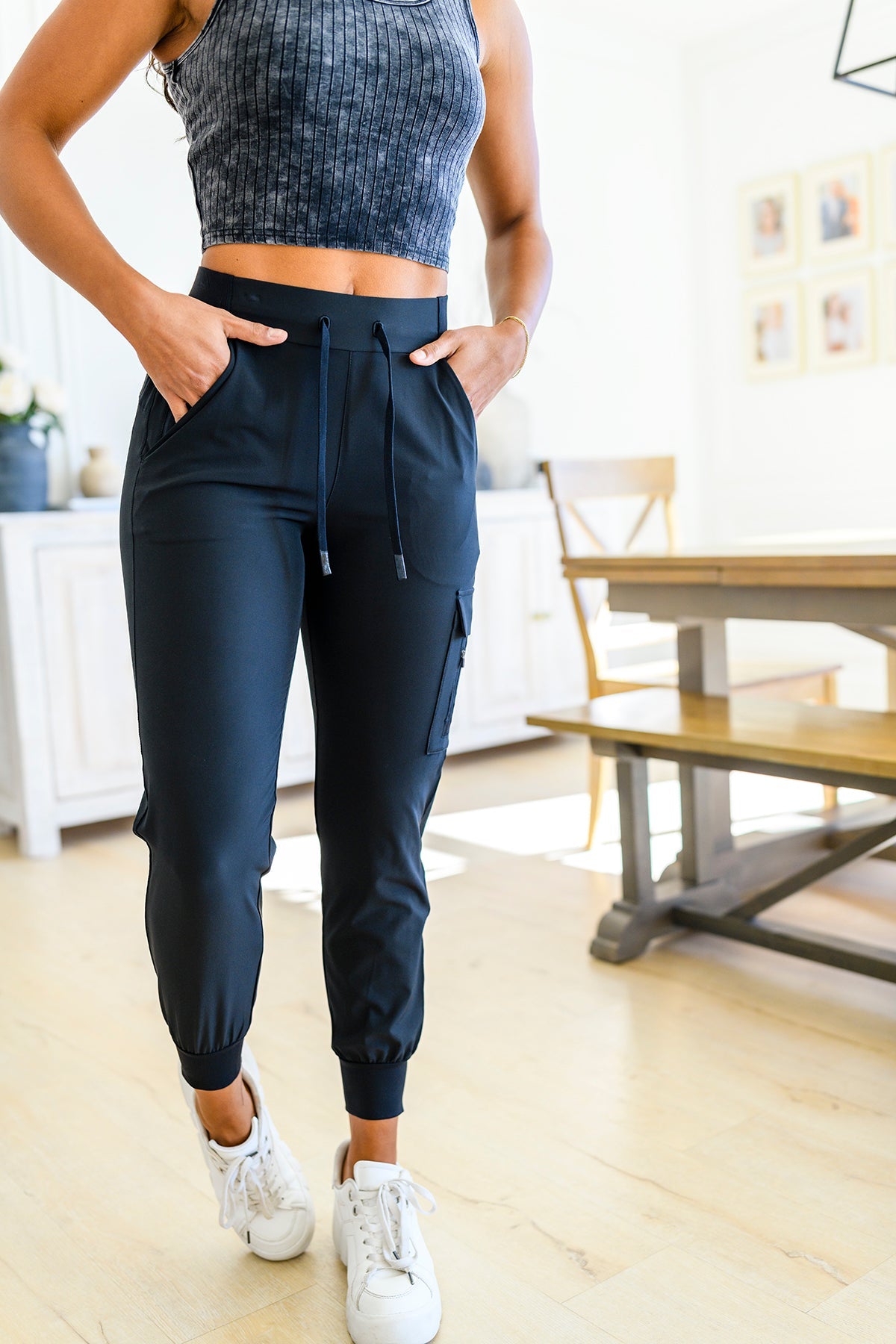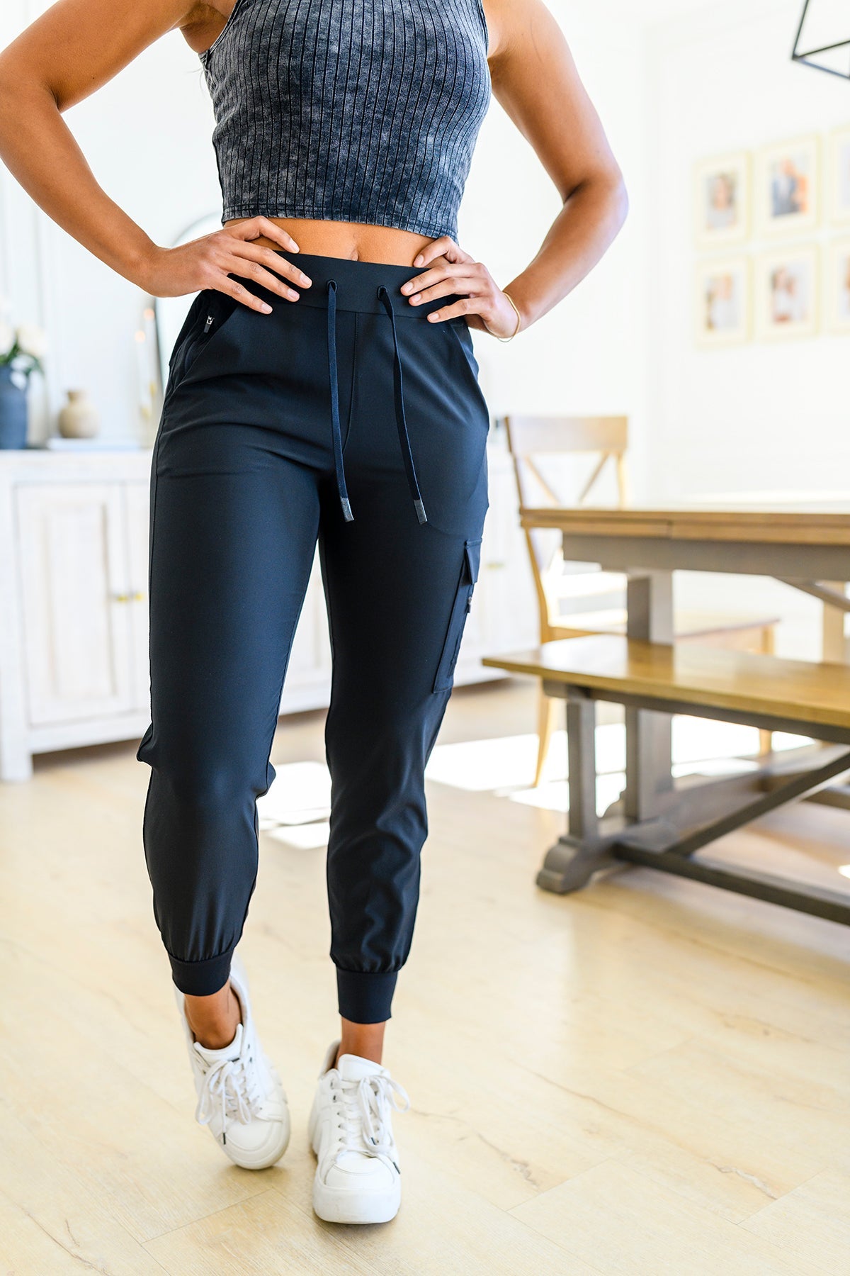 Be the envy of your friends in these ultra-cool Give Me the Rundown Cargo Joggers! With moisture-wicking fabric, a functional drawstring, and a side cargo pocket, you'll be comfortable and stylish as you conquer your day. Move freely with the four-way stretch and experience added style with a swoop back seam and high waisted jogger silhouette. Look and feel your absolute best!