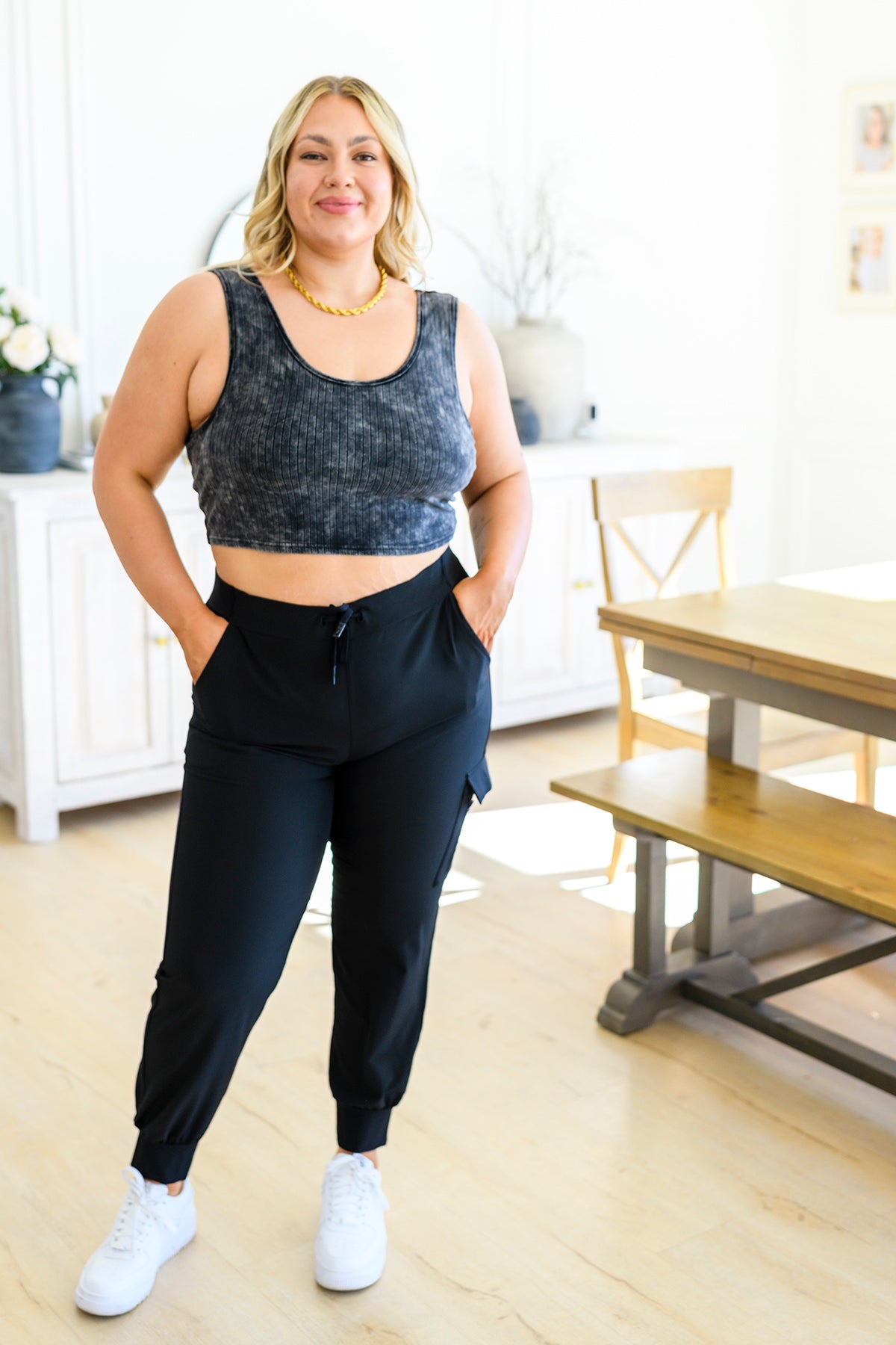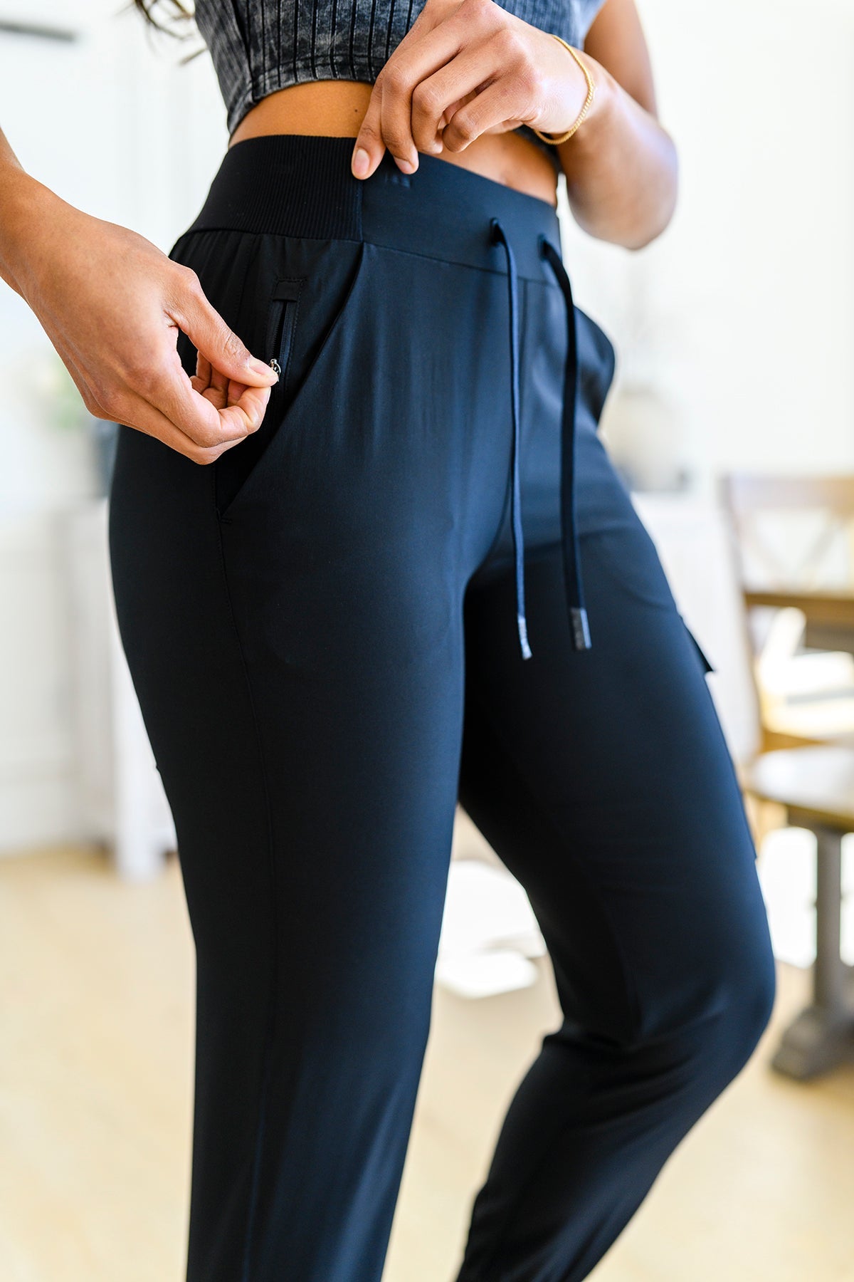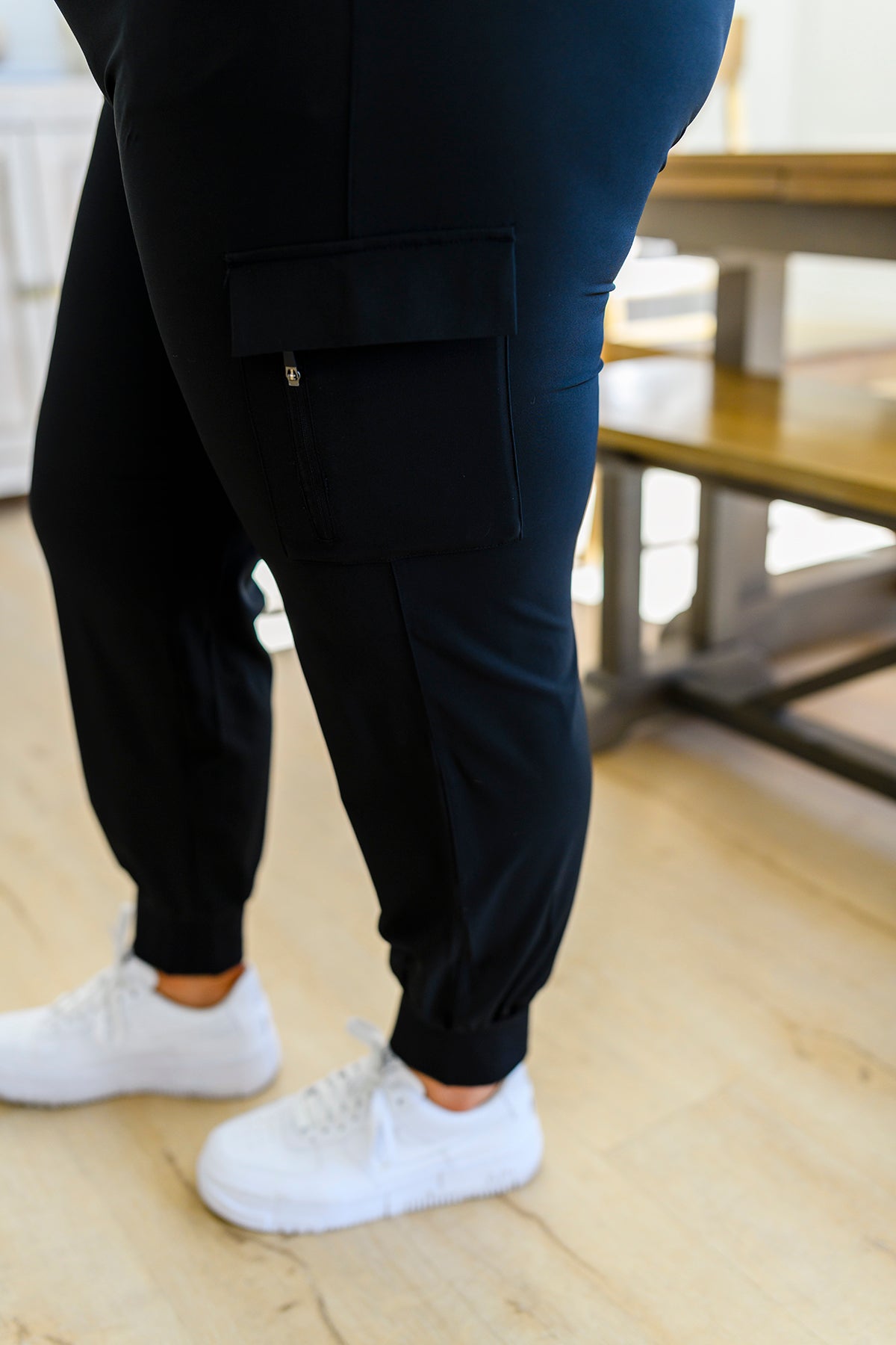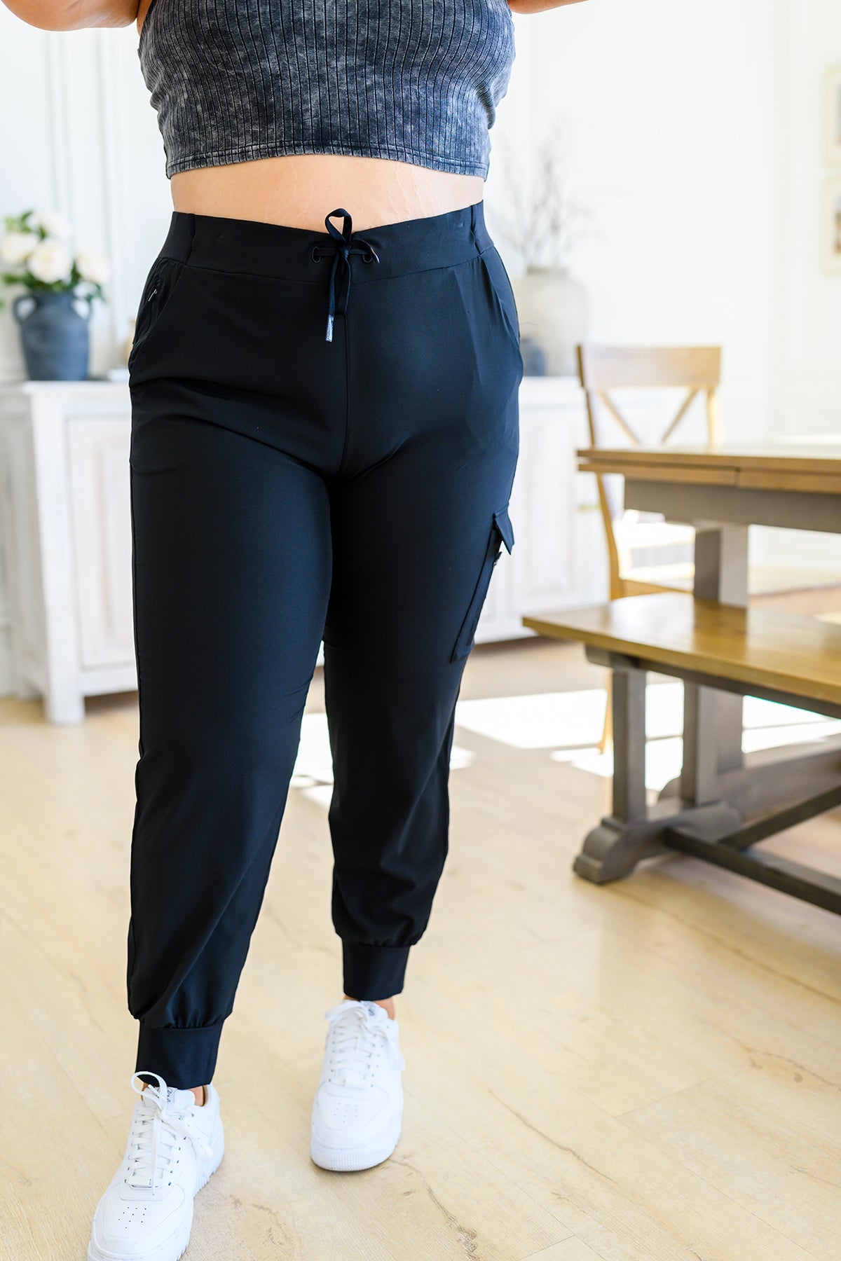 Be the envy of your friends in these ultra-cool Give Me the Rundown Cargo Joggers! With moisture-wicking fabric, a functional drawstring, and a side cargo pocket, you'll be comfortable and stylish as you conquer your day. Move freely with the four-way stretch and experience added style with a swoop back seam and high waisted jogger silhouette. Look and feel your absolute best!