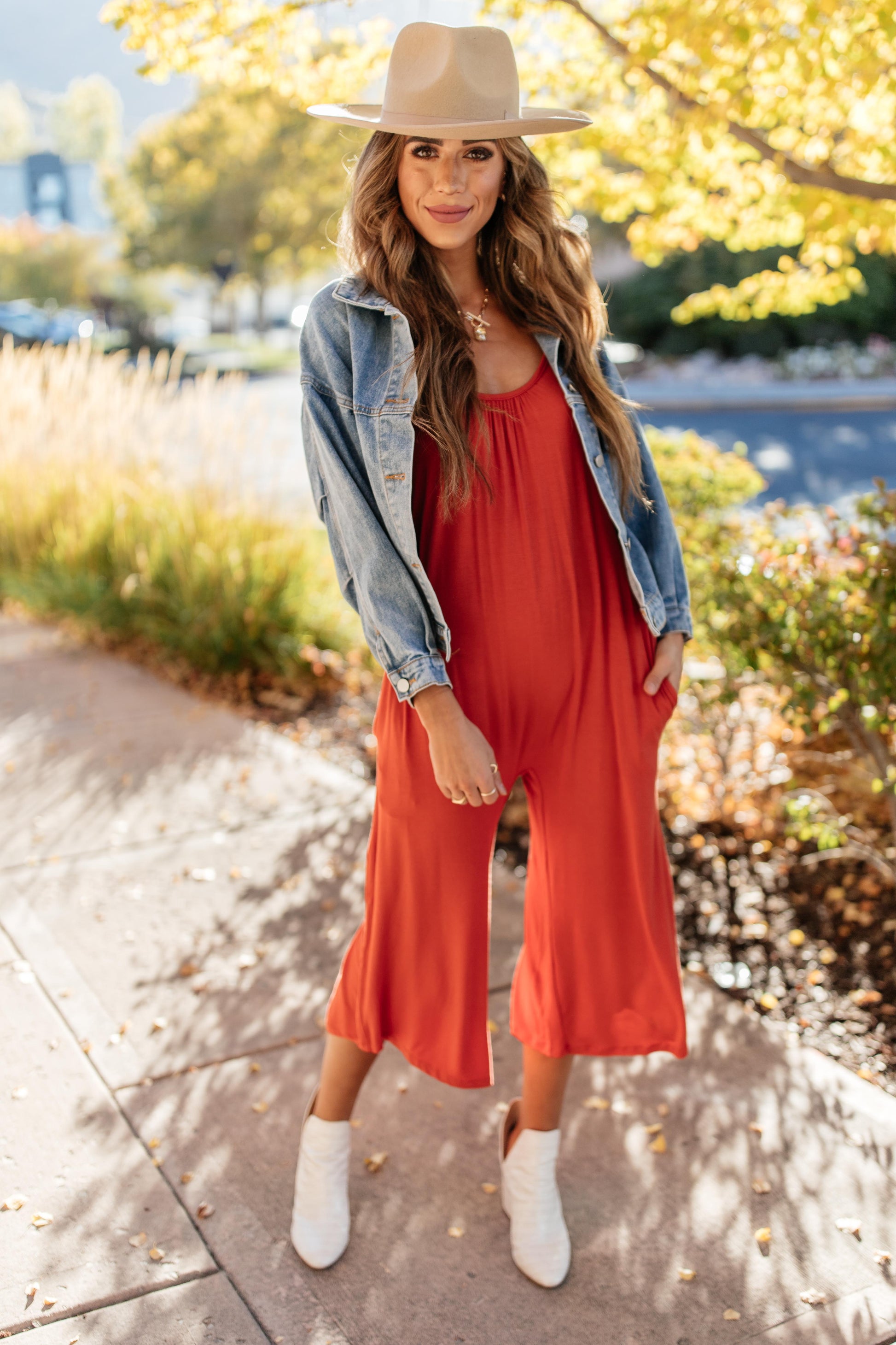 In situations of good, better, and best, it can be so hard to be certain of which decision truly is best! You don't have to work too hard to figure out that this jumpsuit is the best option! It's a lovely rust color and features a long rounded neckline, a wide cropped pant length, functional pockets, and thin shoulder straps.