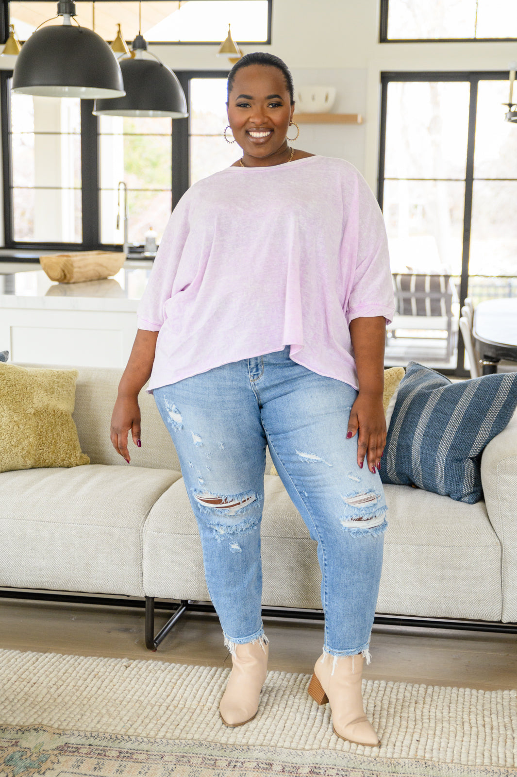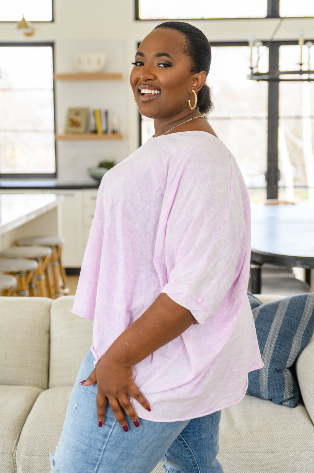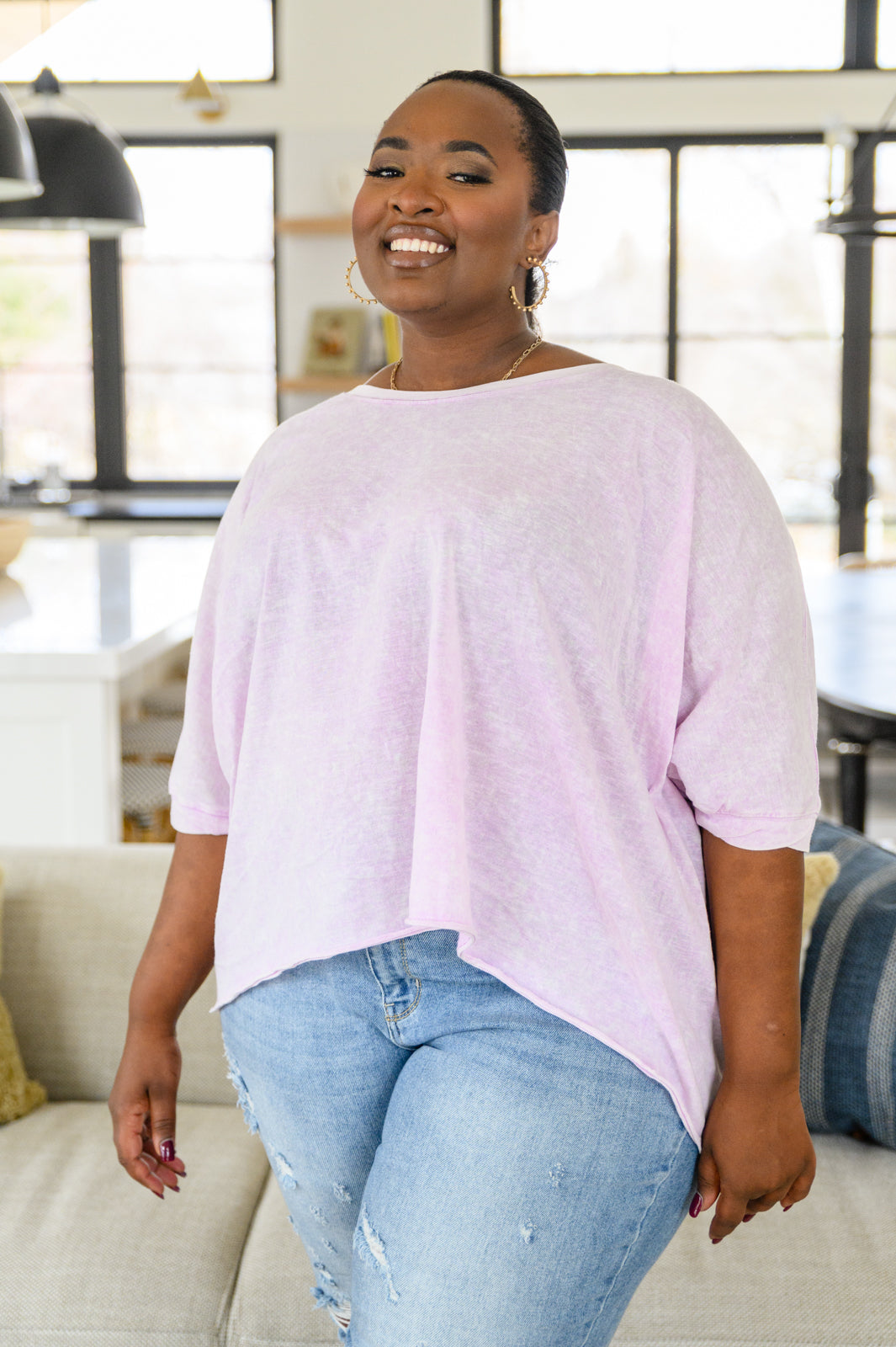 You'll want to hang onto the Hold Me Close Short Sleeve Top In Lavender! This comfy tee features a lightweight knit that shapes a round neckline topping an oversized bodice ending at a hi-low, slightly cropped hem. Dolman three quarter sleeves have a balloon silhouette with decorative seaming and a cuffed hem.