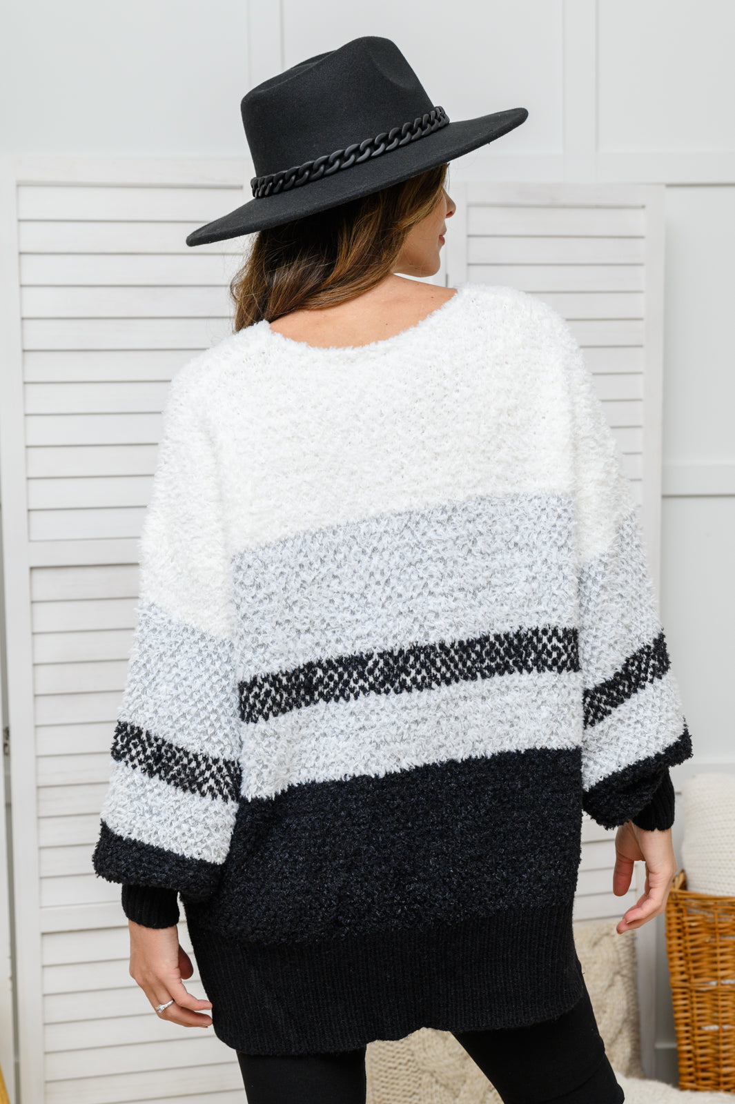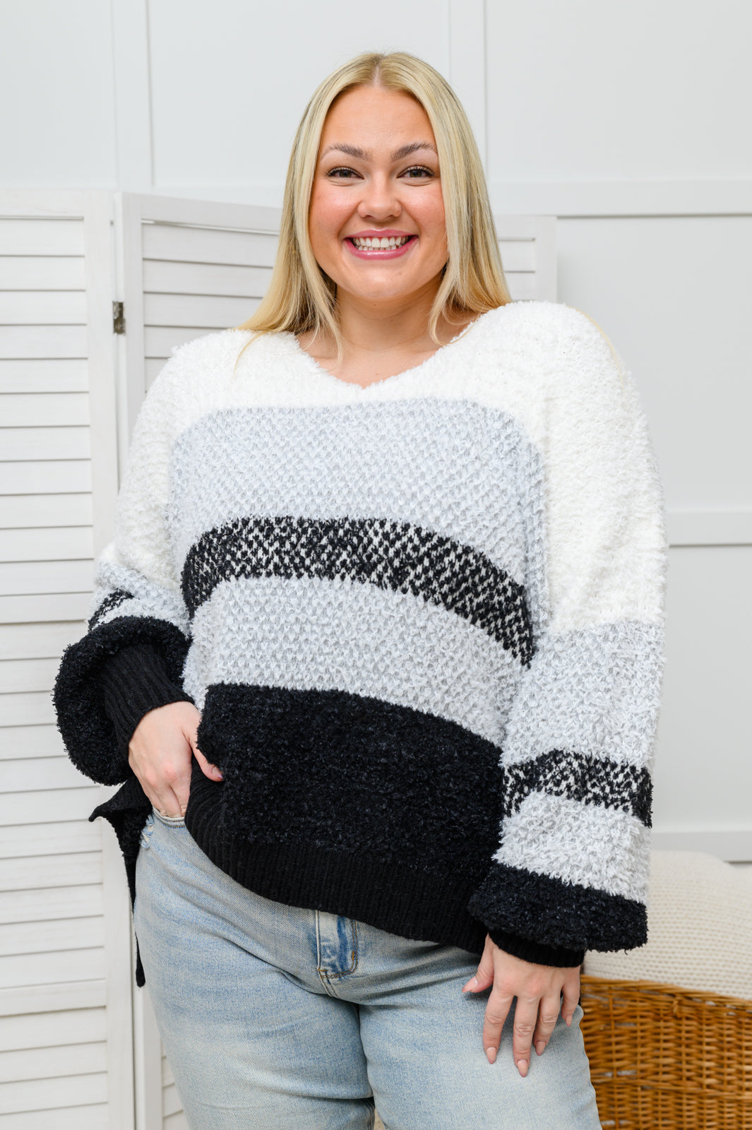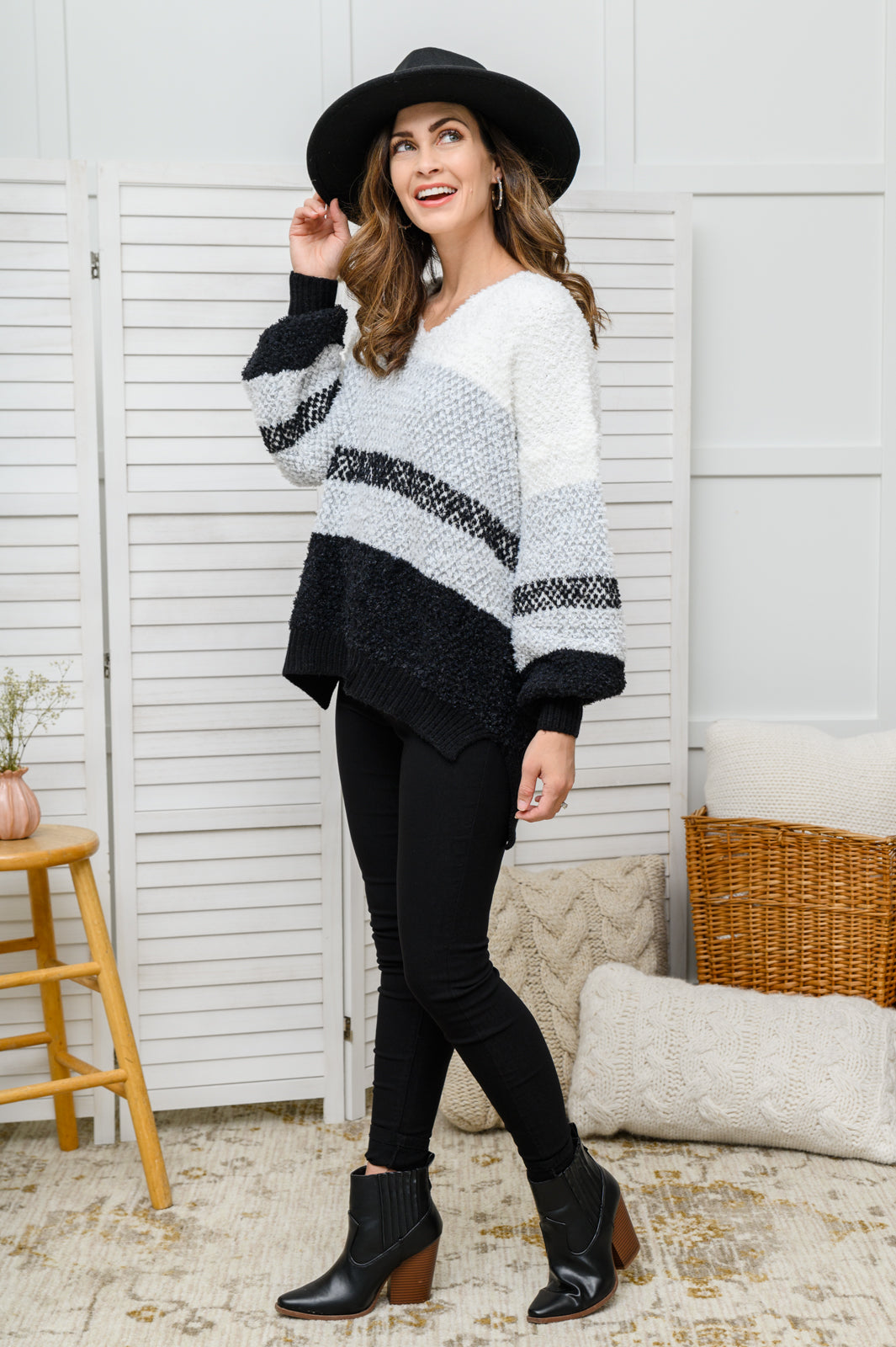 You'll definitely want to add the Hold Onto Love Color Block Sweater into your rotation! A fuzzy, medium weight knit shapes this ultra cozy piece. Featuring a v-neckline that falls into slouchy long sleeves with a drop shoulder detail. A relaxed fit bodice ends at a ribbed hem with a side slit, hi-low detail.