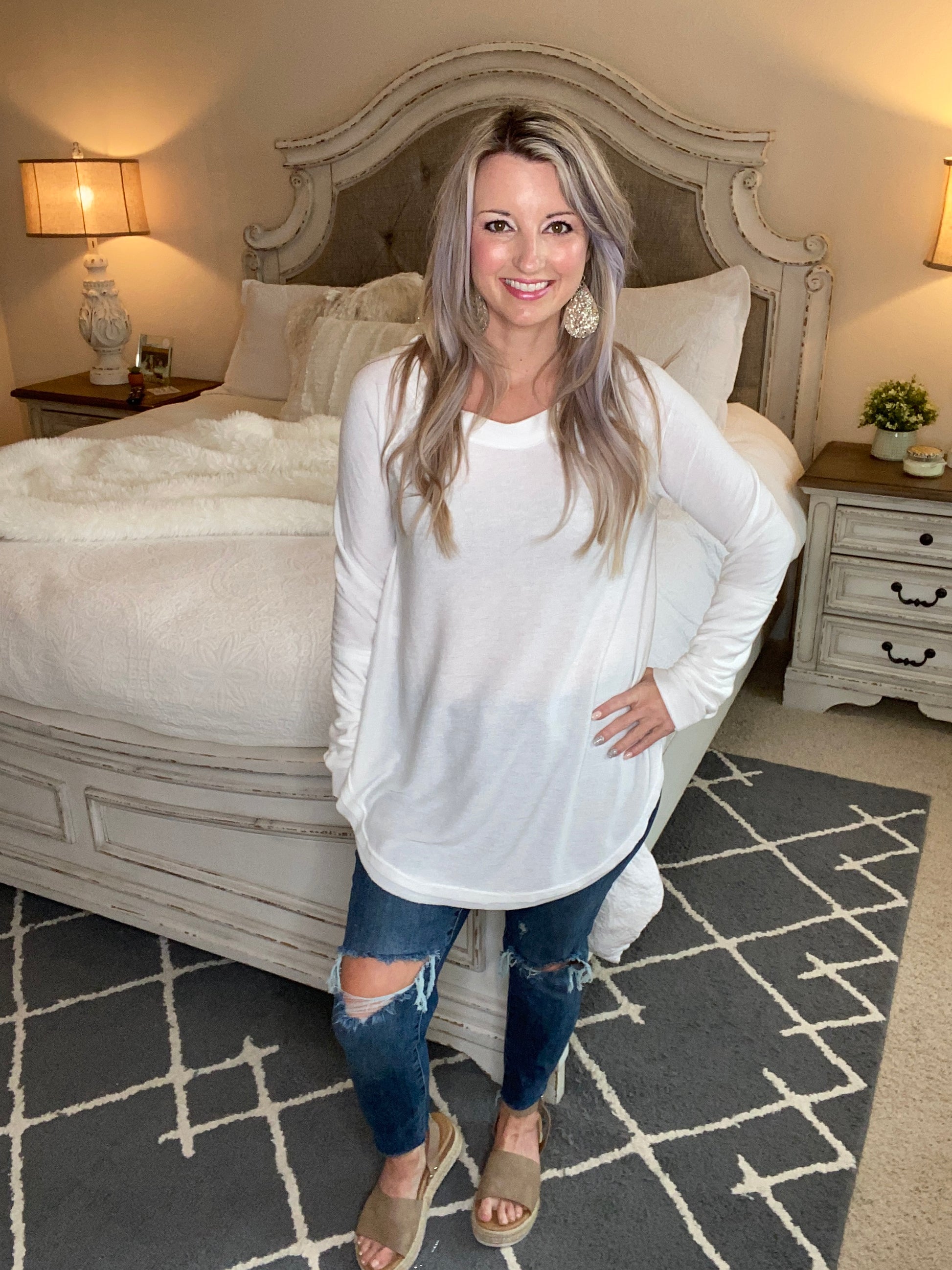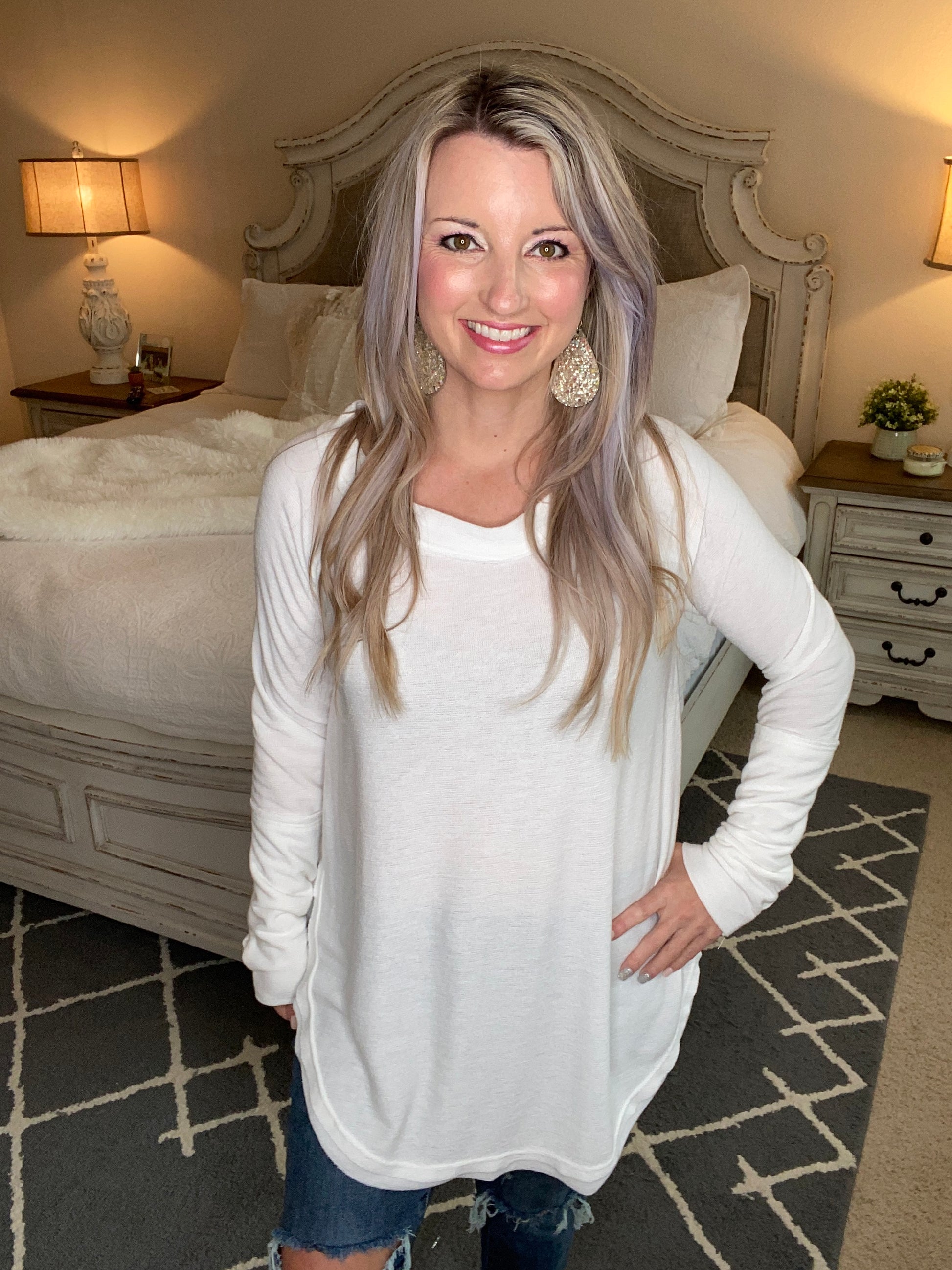 When you decide to throw this top on in the morning, "just like that" you look cute, modern, and so comfortable! It's lightweight, waffle knit, stretchy, and has a wide neckline. It's also a loose and relaxed fitting top that can be styled in countless ways.