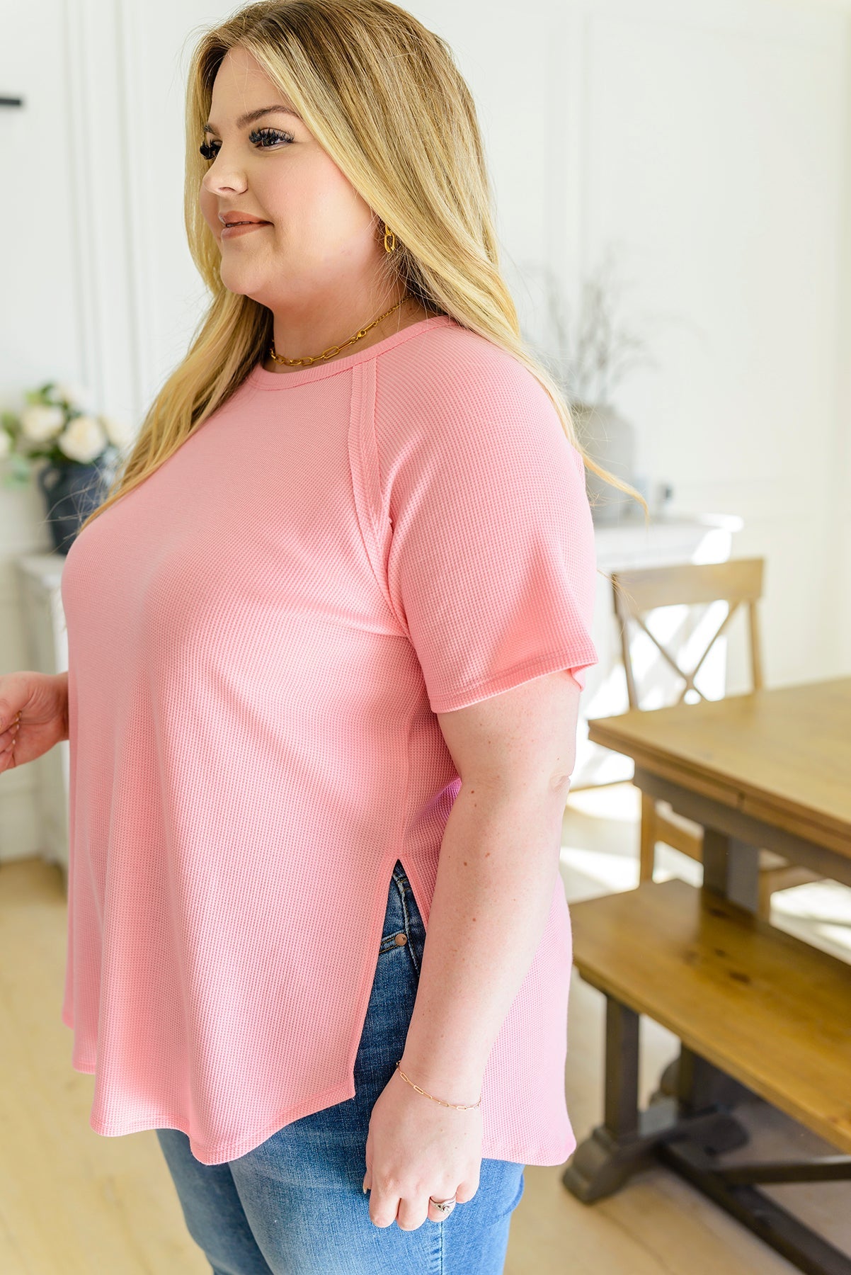 Slip into something comfortable and timeless with the Kathleen Waffle Knit Top! Featuring a round neckline, raglan sleeves, exposed seam work, lightweight waffle knit, and a curved hemline with side slits, this cozy top is perfect for any occasion.