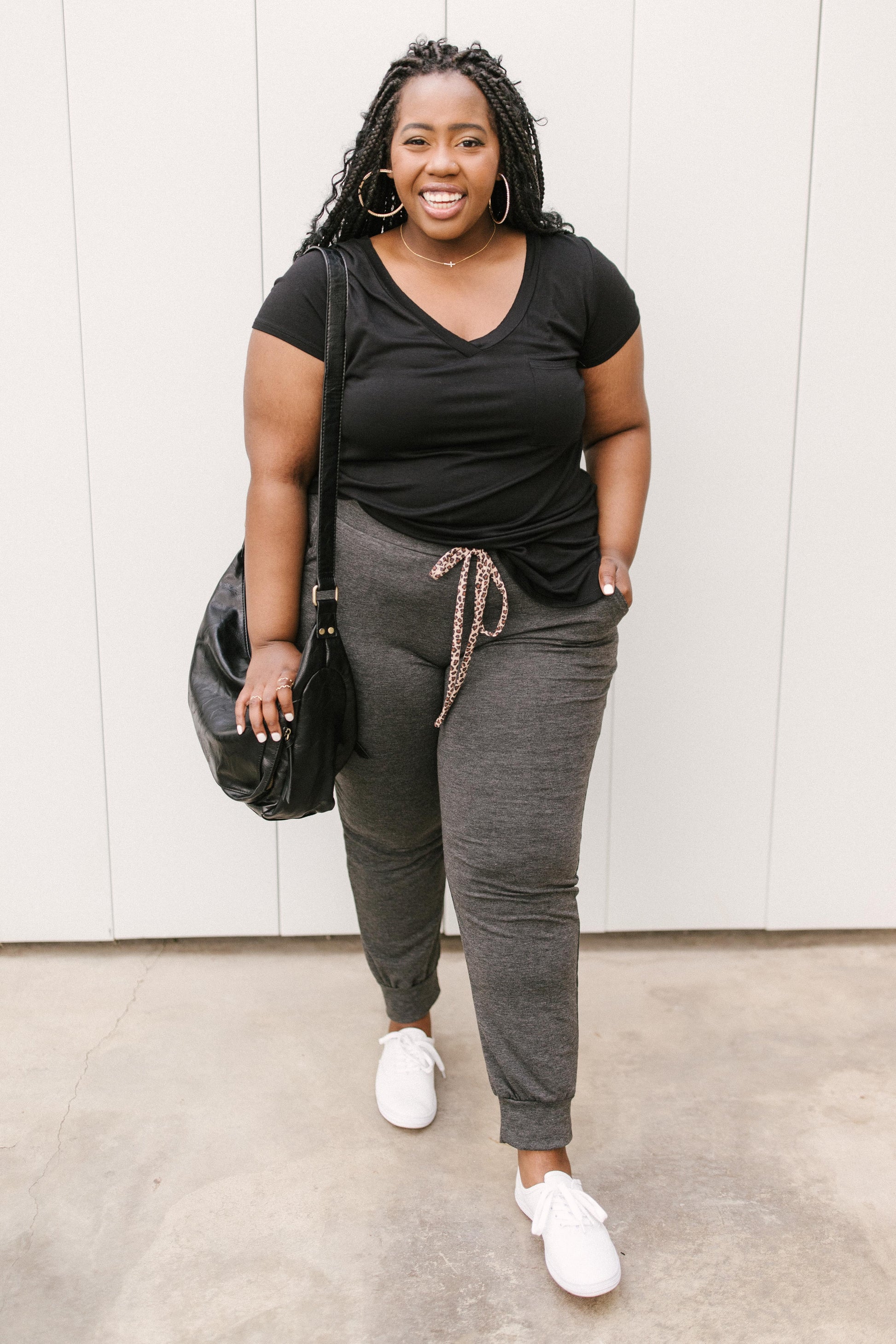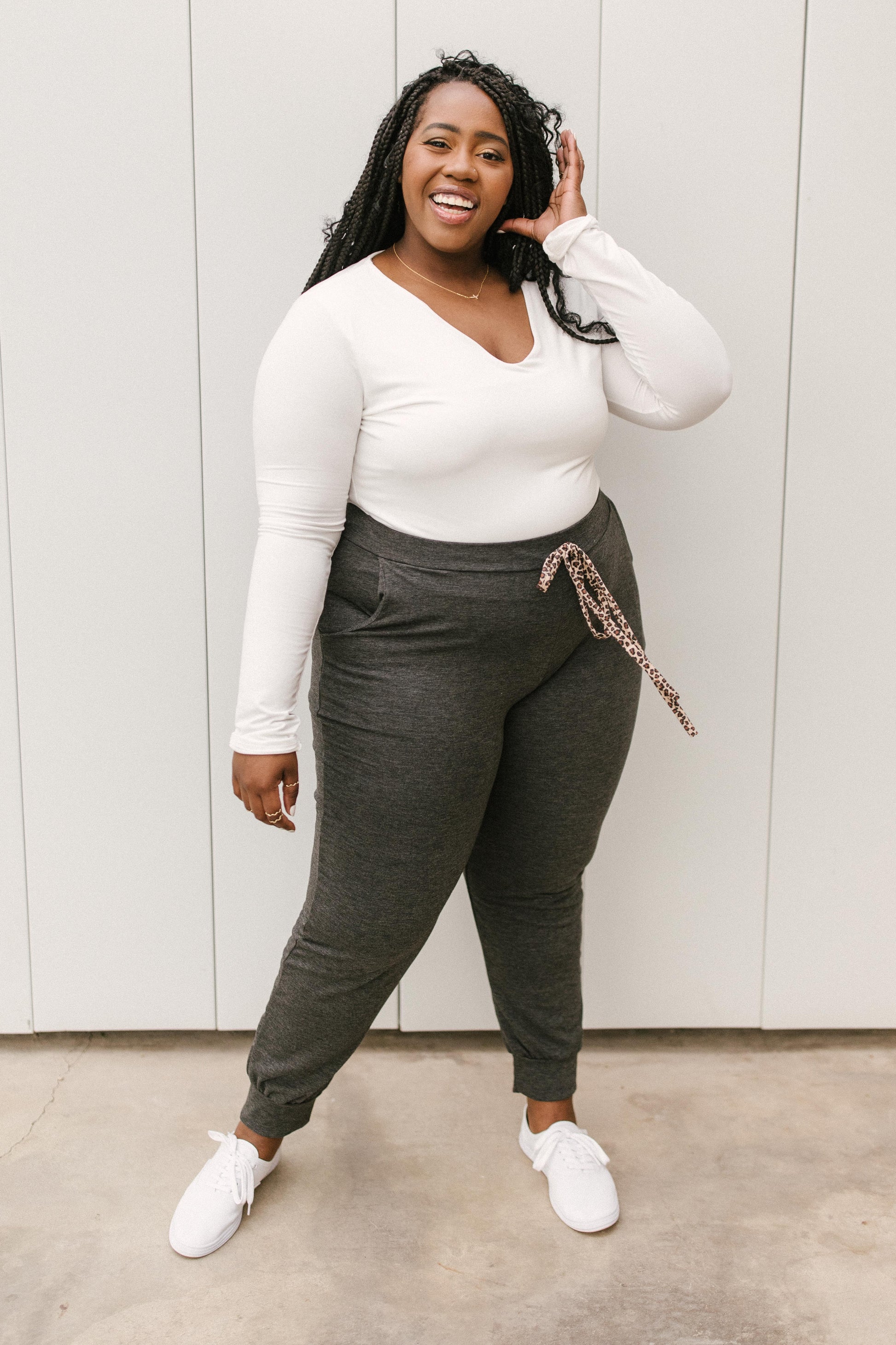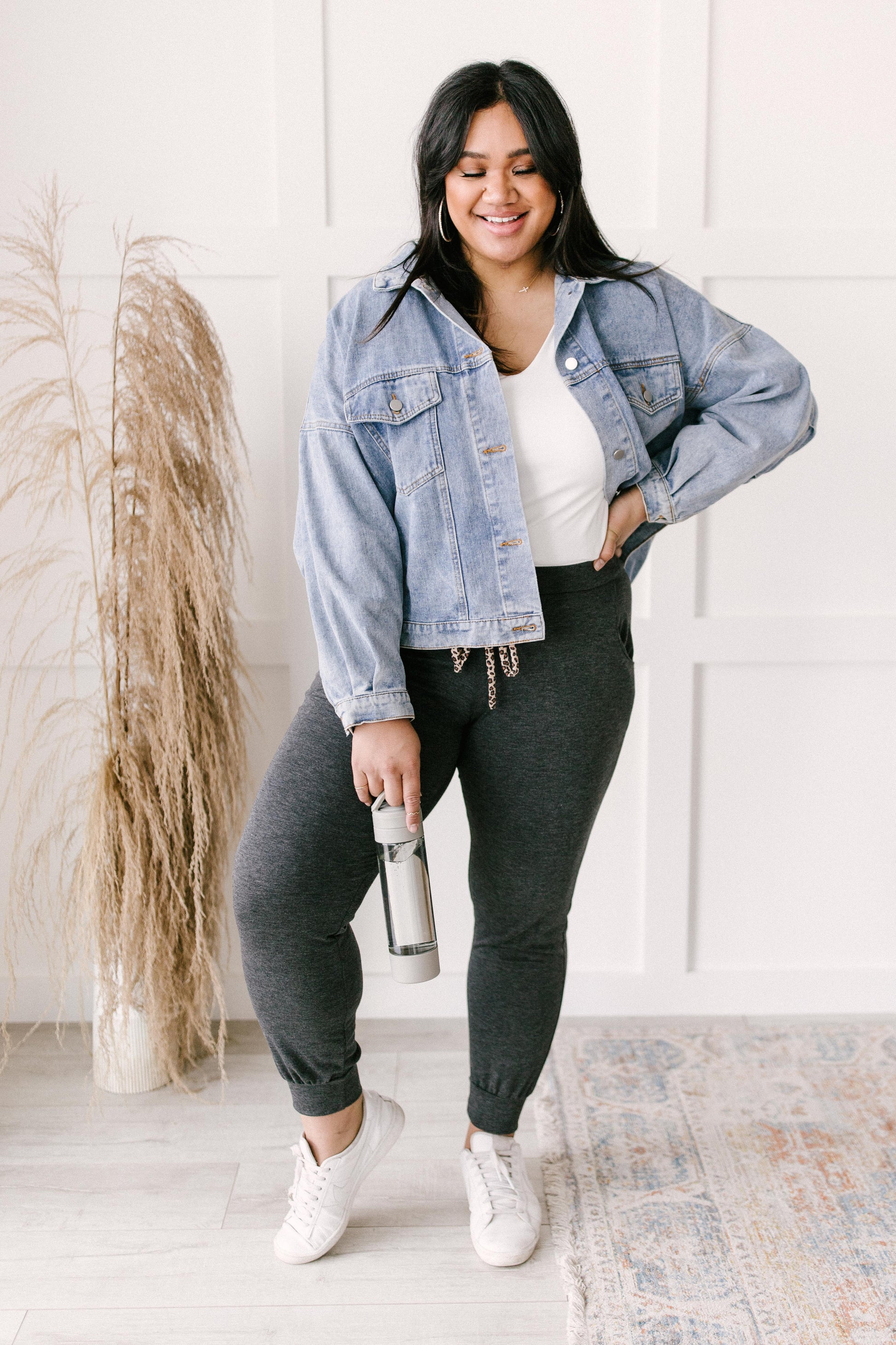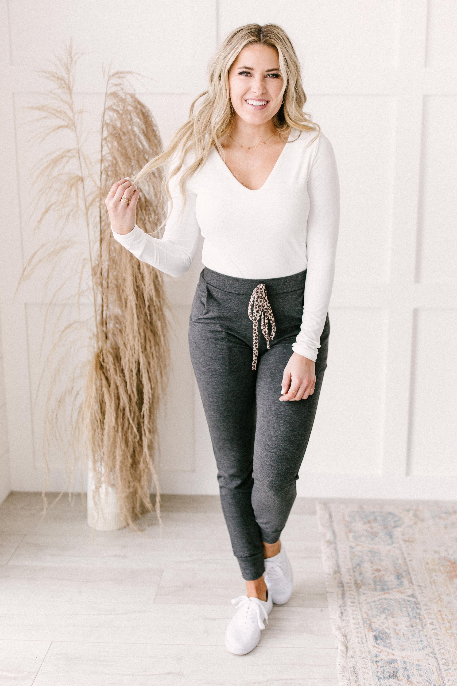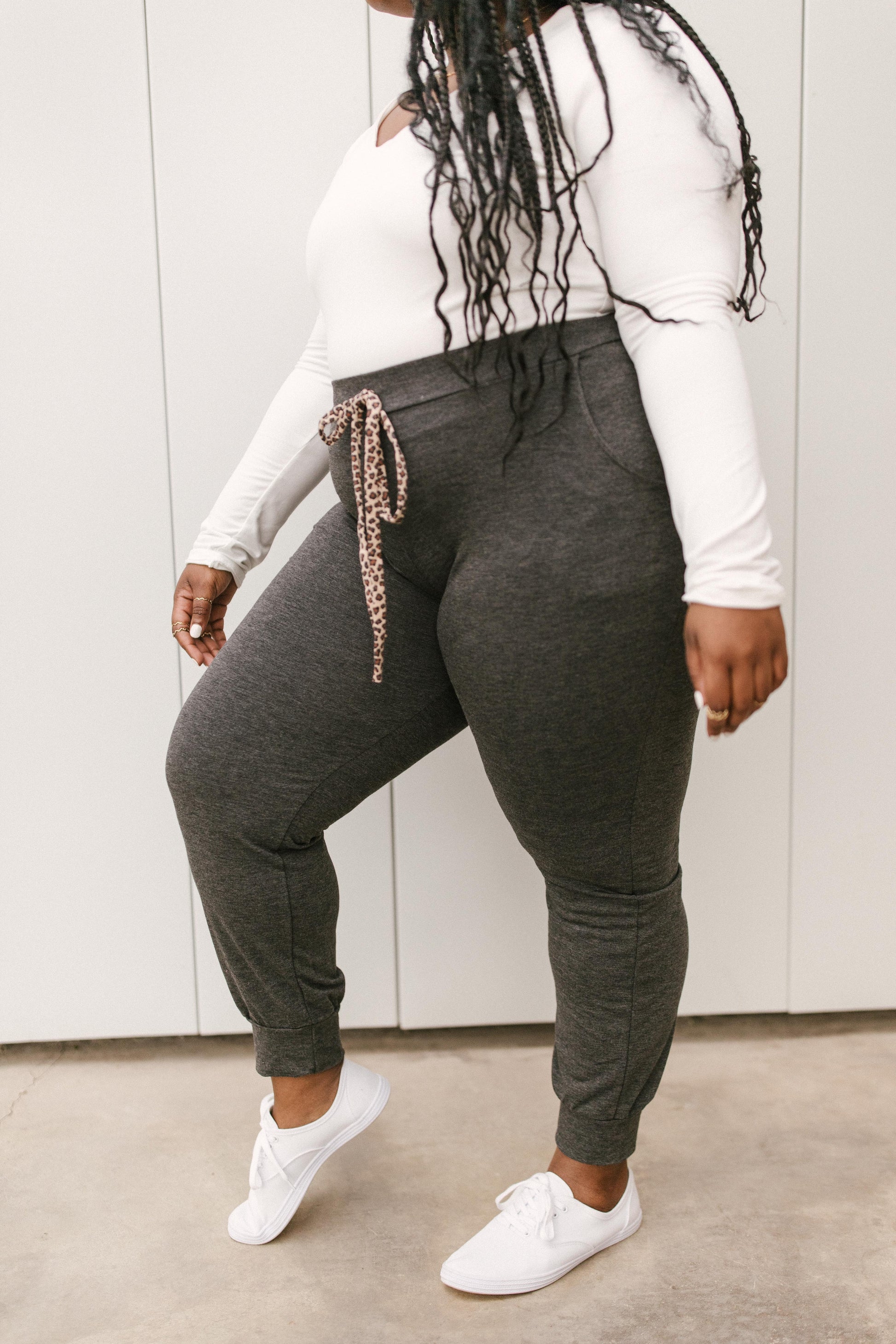 You will want to live in these joggers. They are lightweight and look good with literally anything. Throw these on with your favorite top and jacket, or after a long day at work. They feature functional pockets and a subtle pop of leopard on the non-adjustable waist tie.