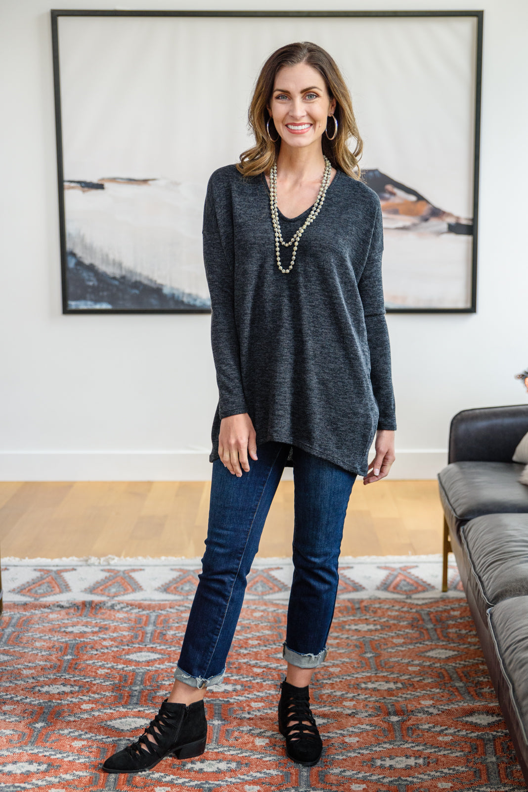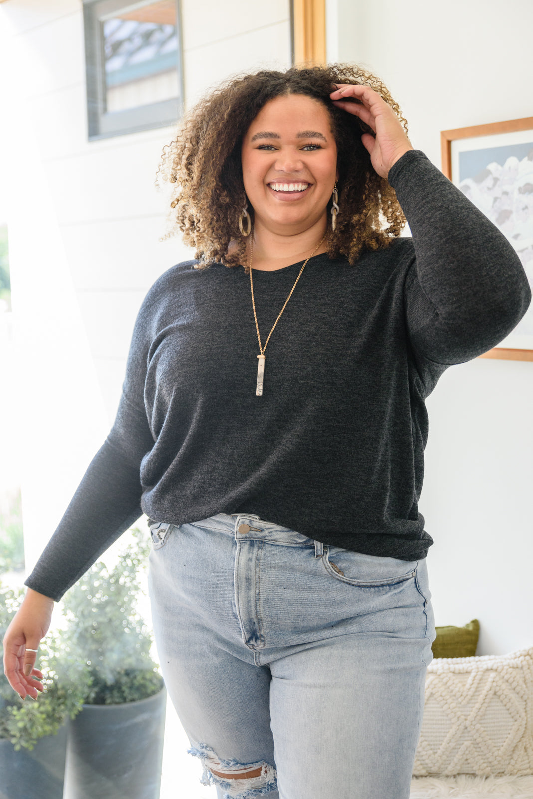 The Let It Be Top is prepared for just about anything! This marled, lightweight knit top has a v-neckline, drop shoulder sleeve, and a relaxed, wide-cut bodice with a rounded hem. Pair with cropped denim and your favorite sneakers for a chic and minimalist look!