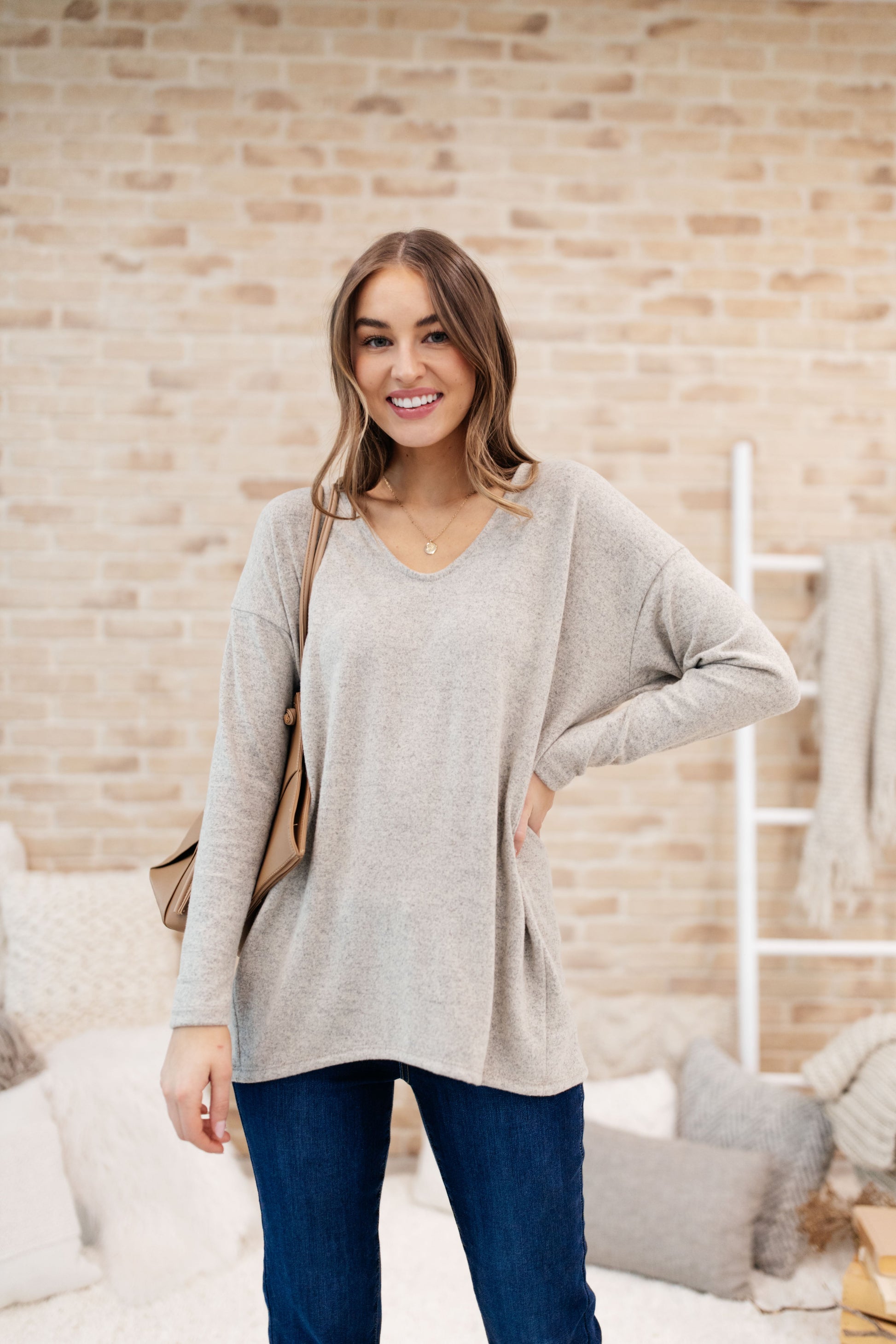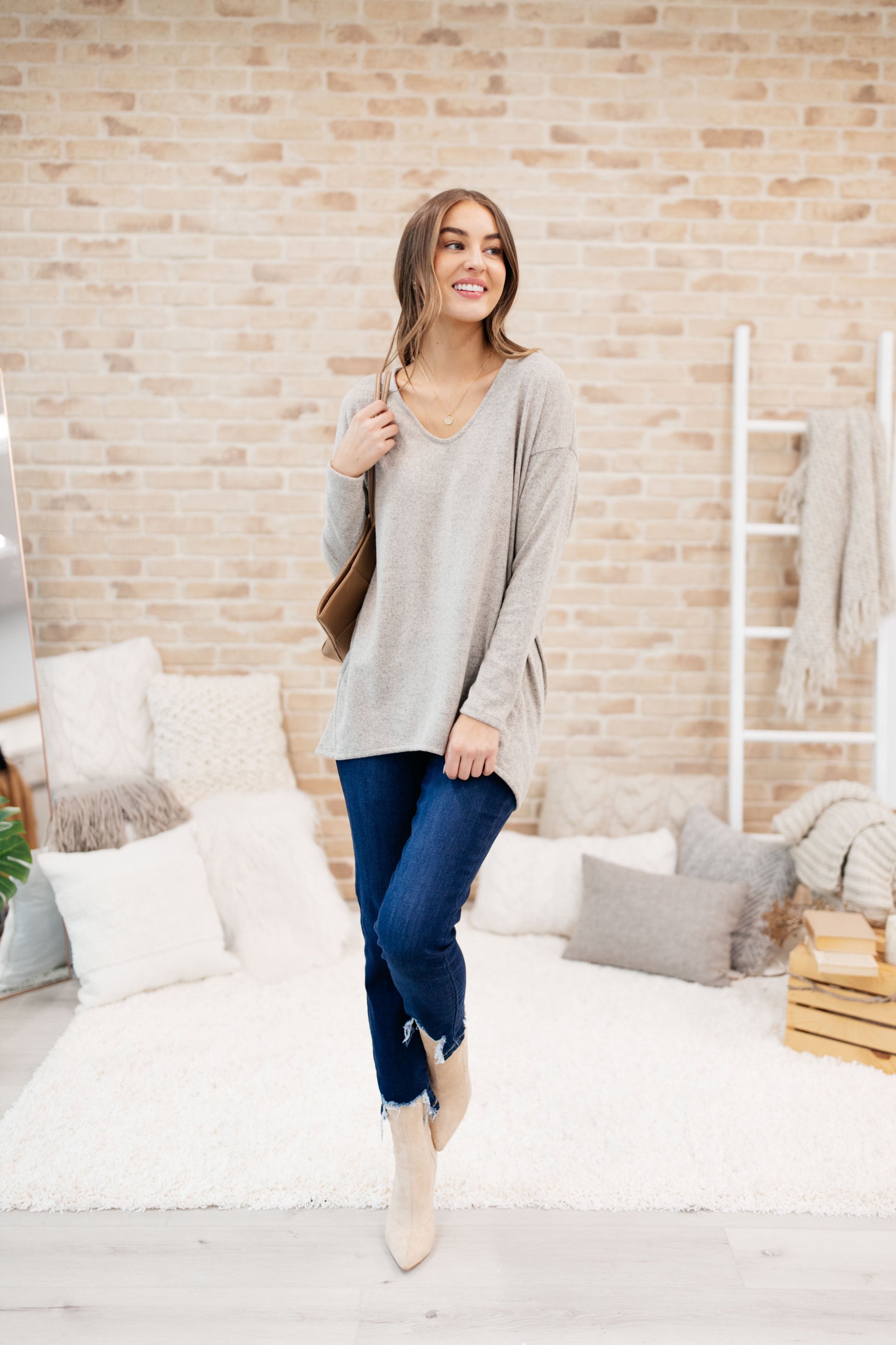 The Let It Be Top is prepared for just about anything! This marled, lightweight knit top has a v-neckline, drop shoulder sleeve, and a relaxed, wide-cut bodice with a rounded hem. Pair with cropped denim and your favorite sneakers for a chic and minimalist look!