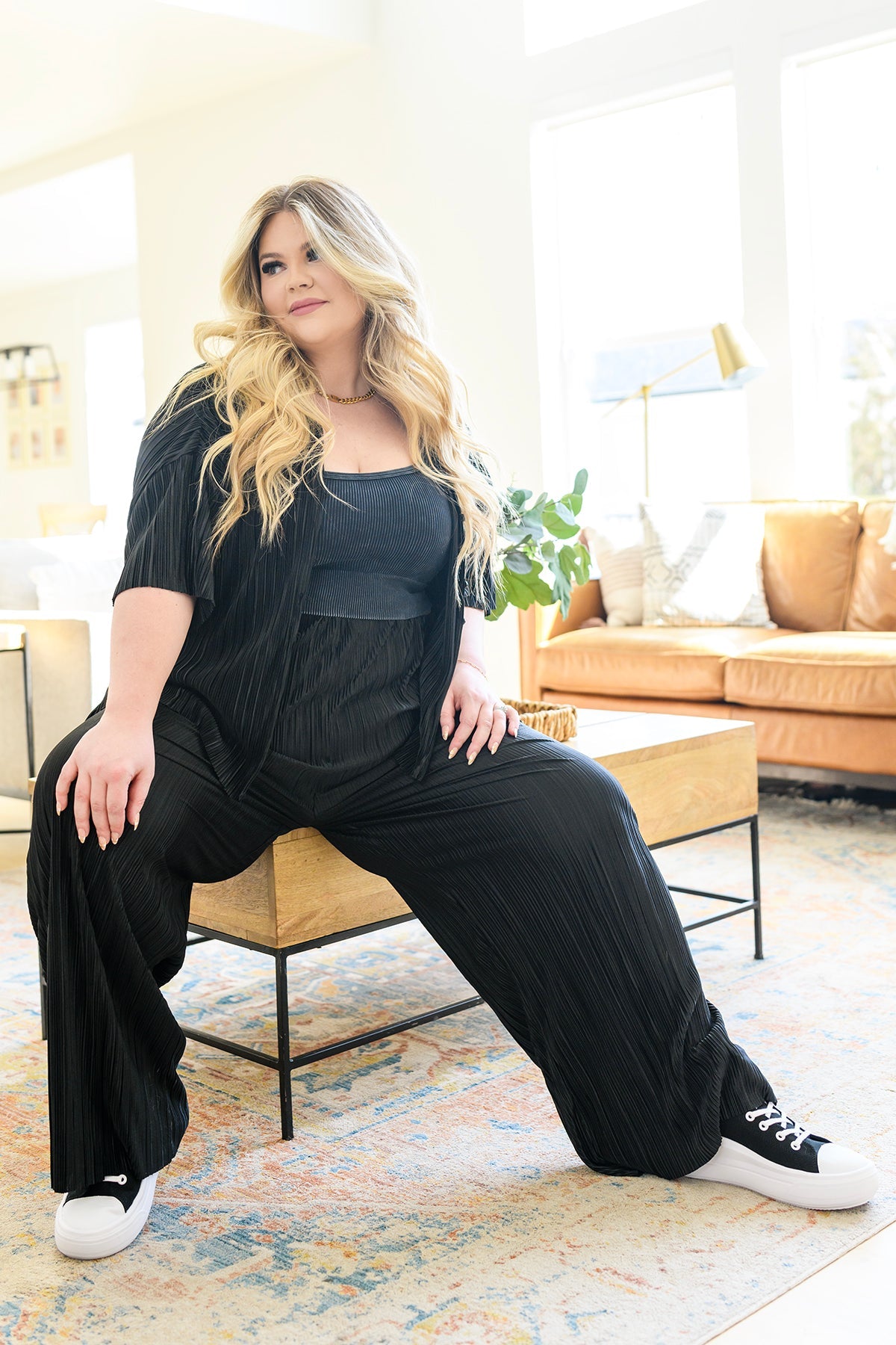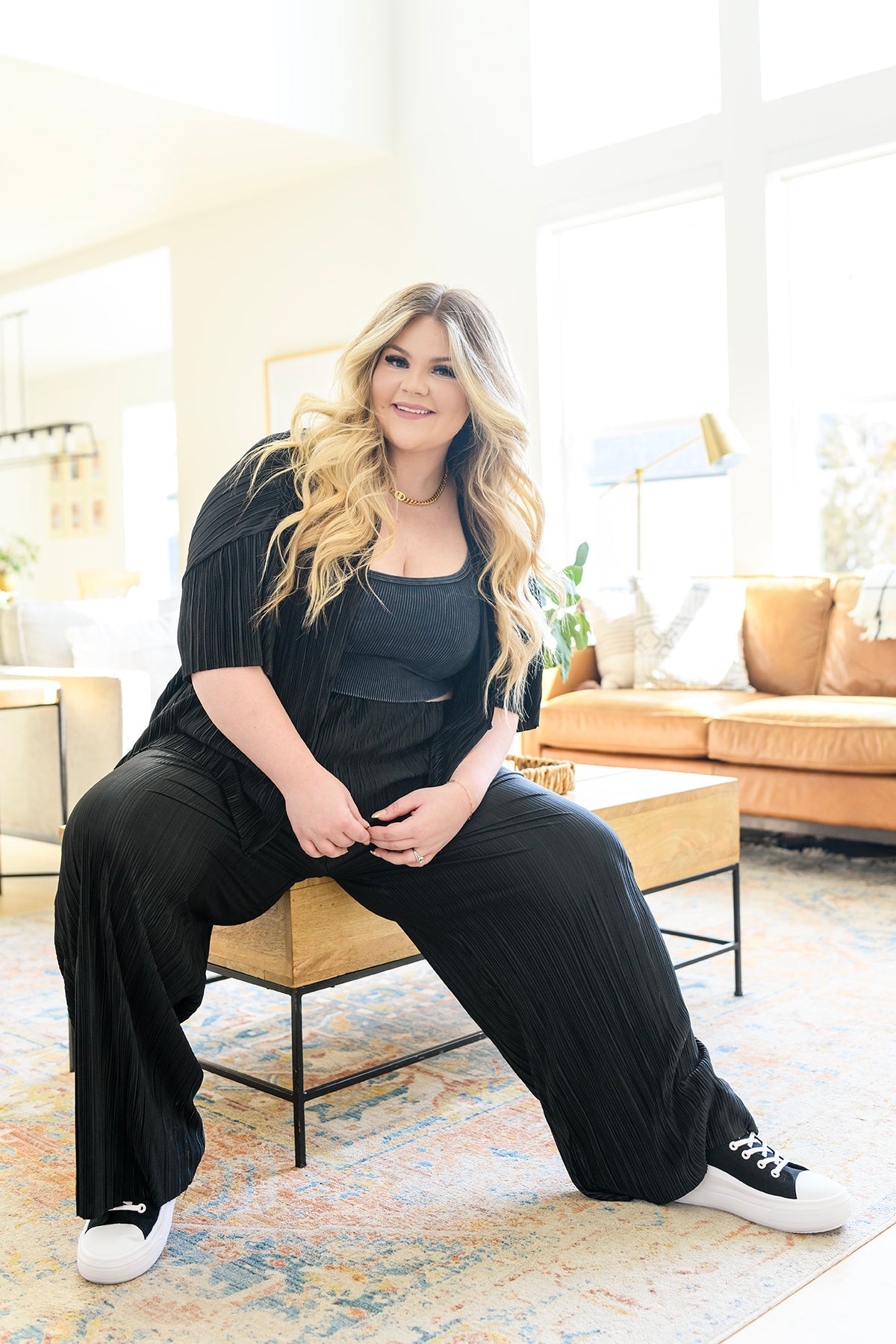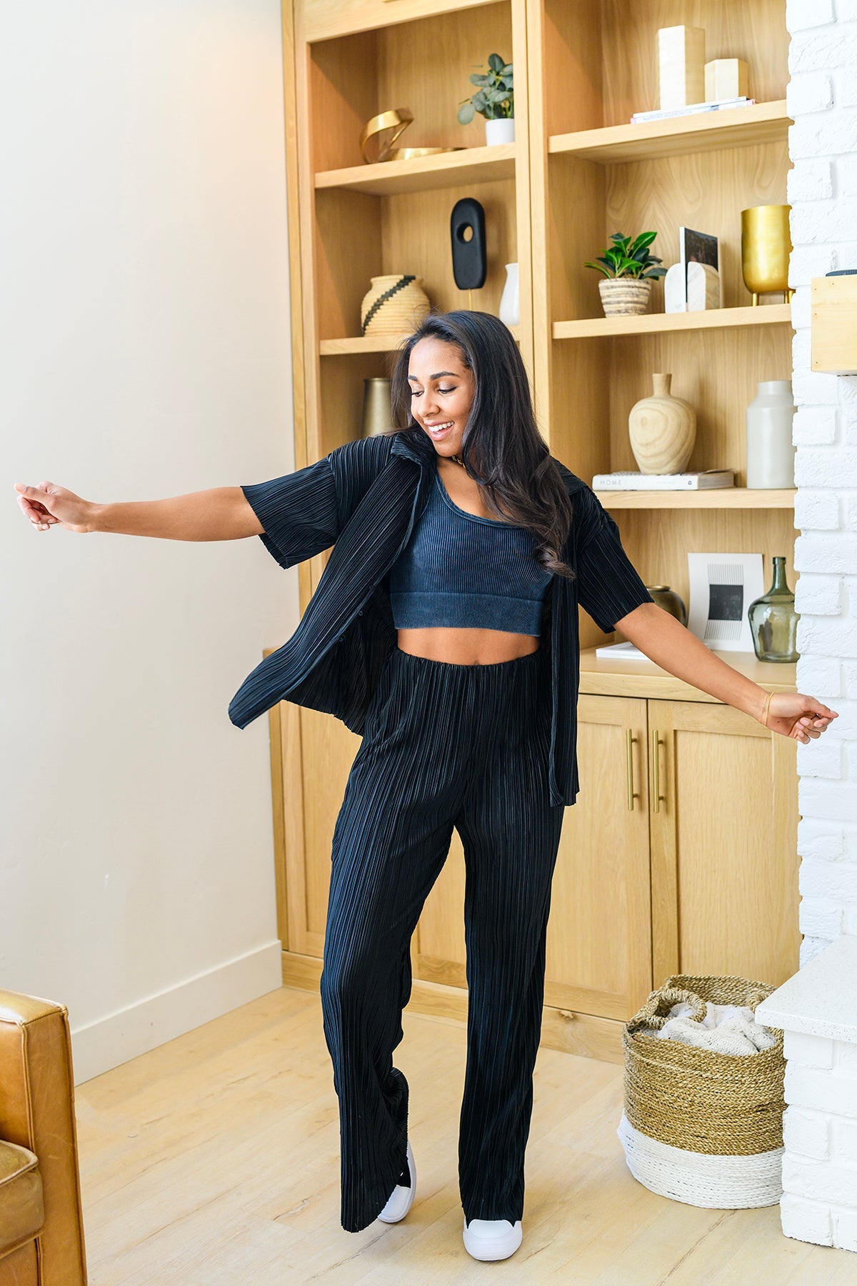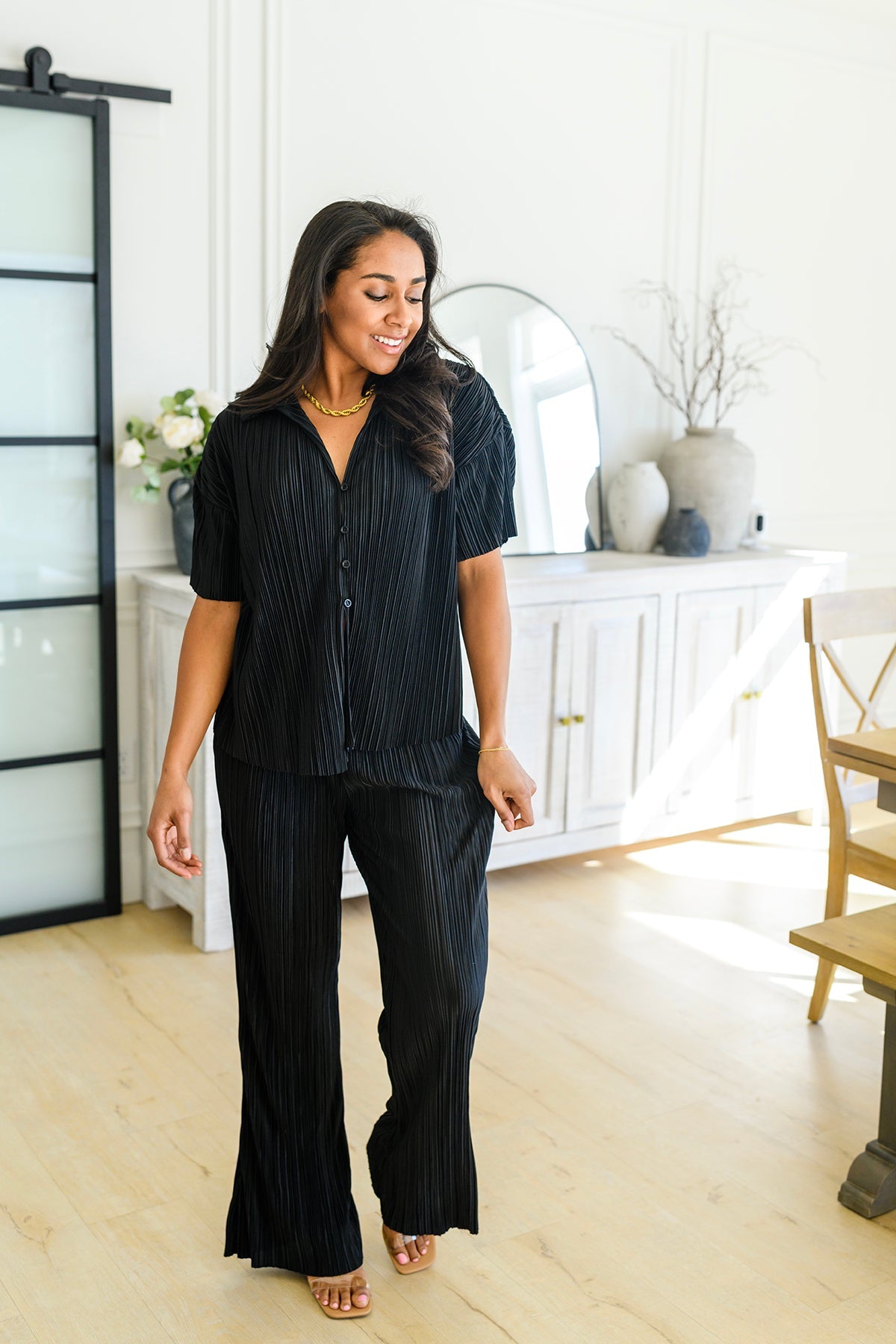 Be effortlessly stylish and comfortable with the Low Key Perfect Plisse Set. This comfortable set features a button down collared top paired with wide leg pants with an elastic waistband all in a silky plisse fabric. Ready for a night out, or for curling up for a cozy night in? Experience comfort and class with this must-have set!