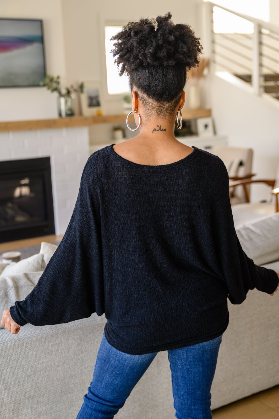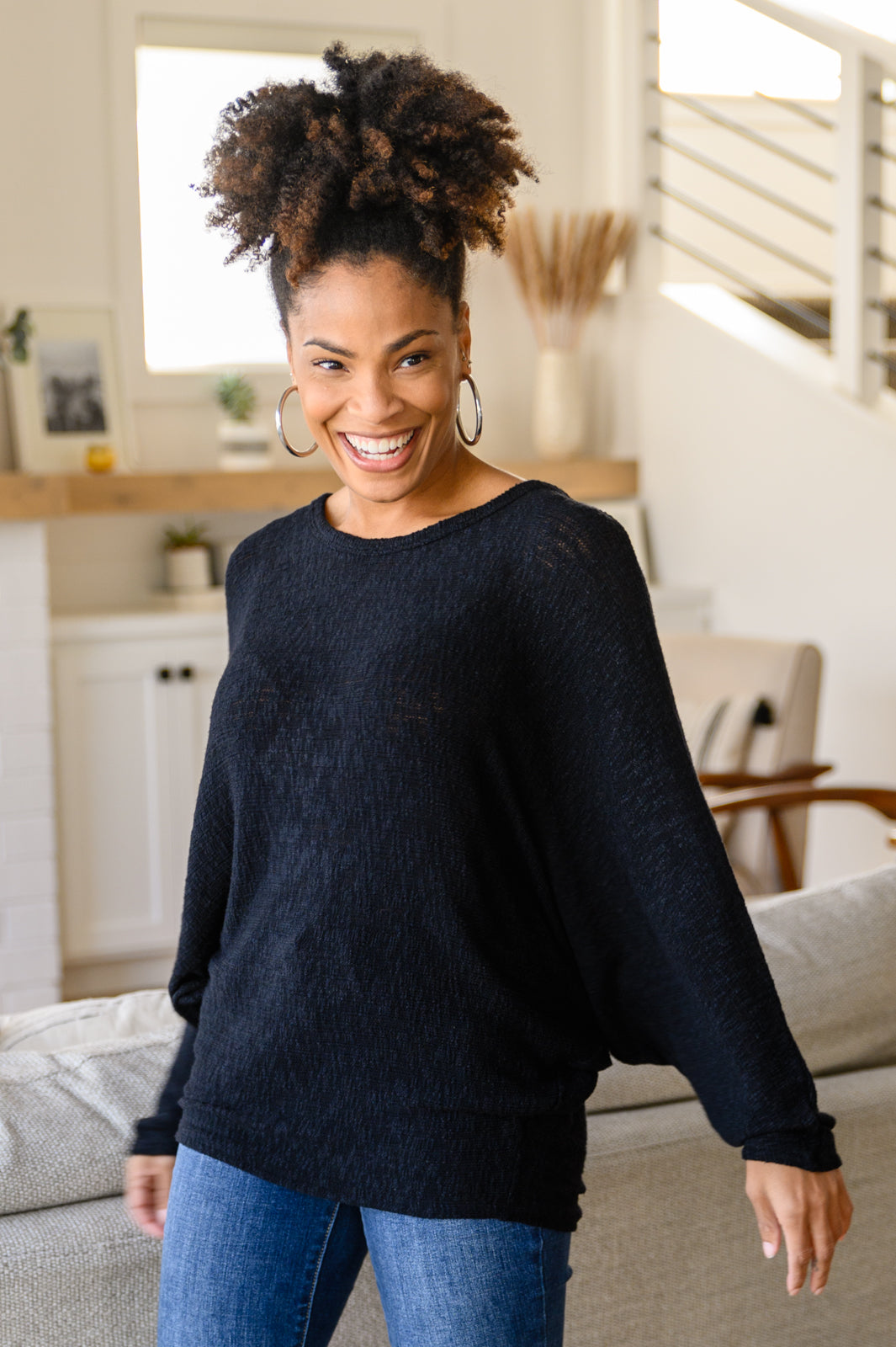 Lightweight and perfect for those chillier summer nights, the Lucky Stride Top is the perfect layer to throw on when those goosebumps creep up! Featuring a rounded wide neckline, slouchy dolman long sleeves, and a relaxed fit. Pair with denim cutoffs, tan sandals, gold jewelry and a matching crossbody bag for a cute on the go look!
