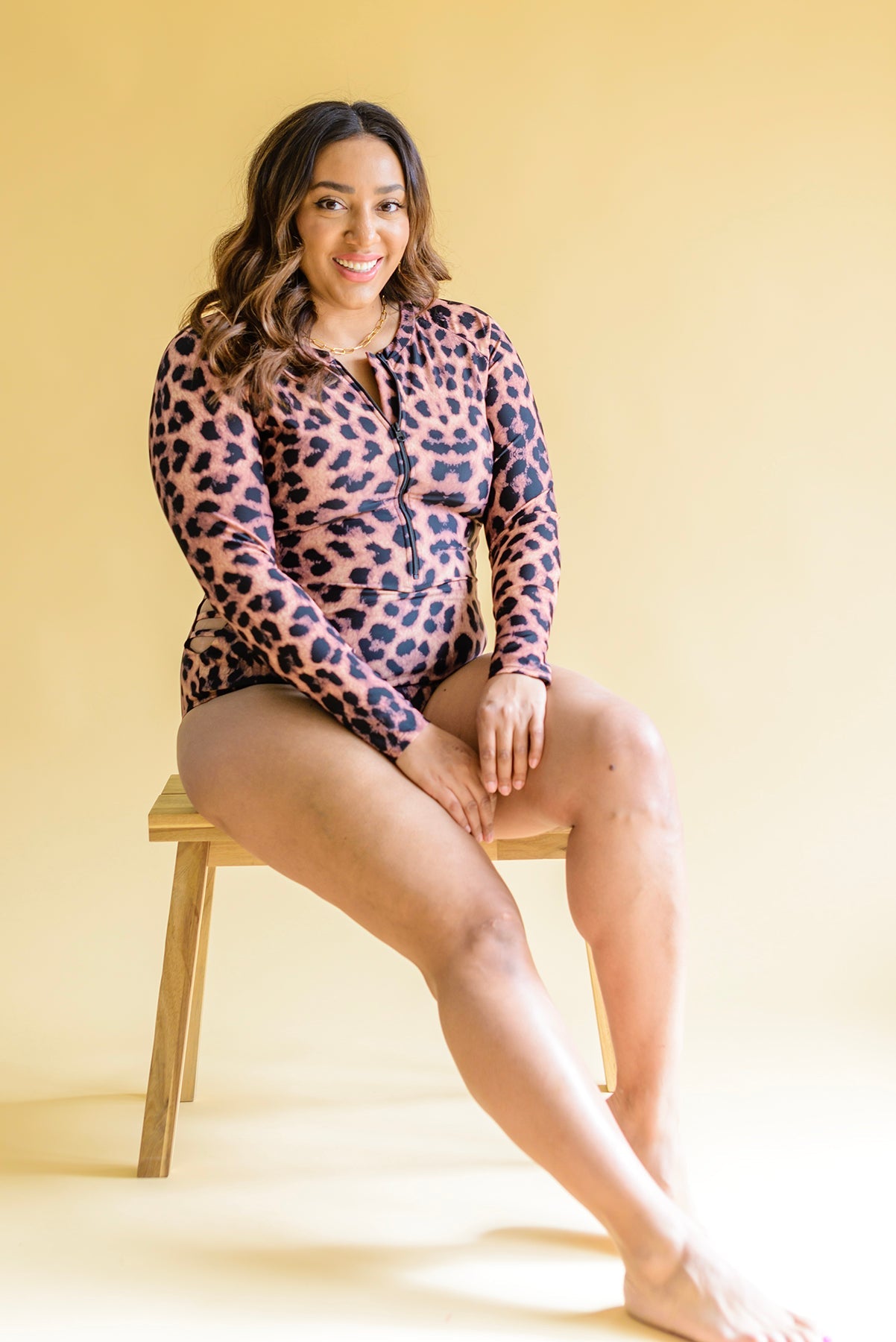 Jump out of the pool—and into style! Our Montego Animal Print Zip Up Long Sleeve Swimsuit is so fierce, you'll be ready to take on summer in a powerful animal print. With its rash guard protection, 1/2 zip closure, removable cups, and full booty coverage, you'll be ready to have fun in the sun with confidence! The sleek fit and ladder details at the sides set this piece apart! (Go wild!)