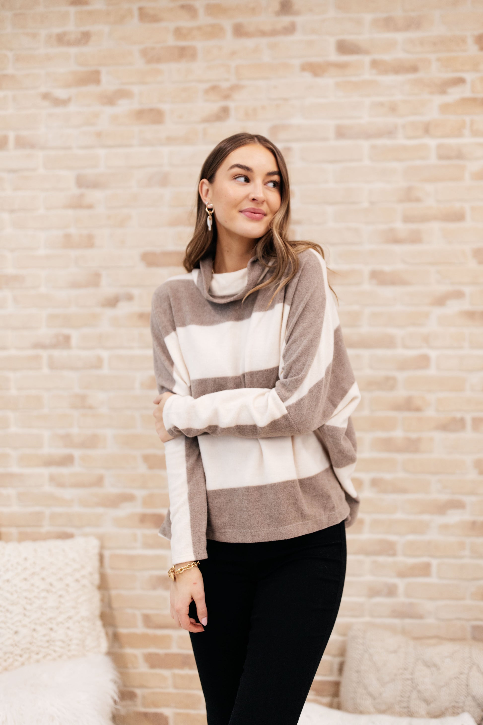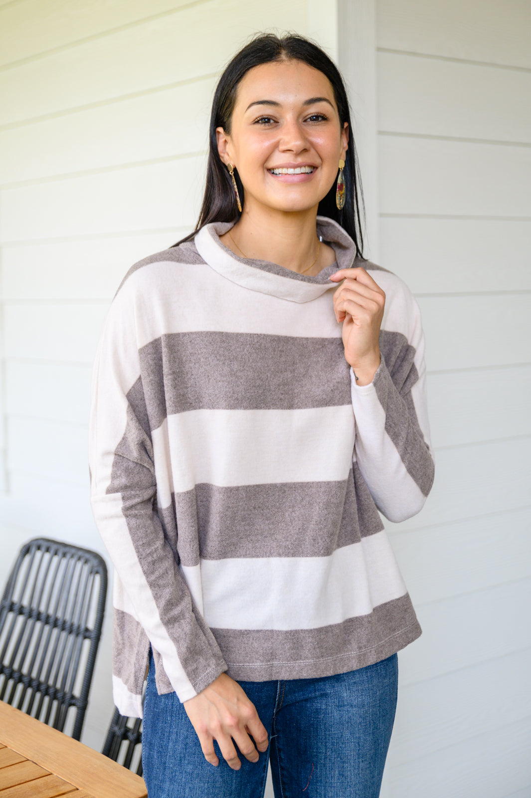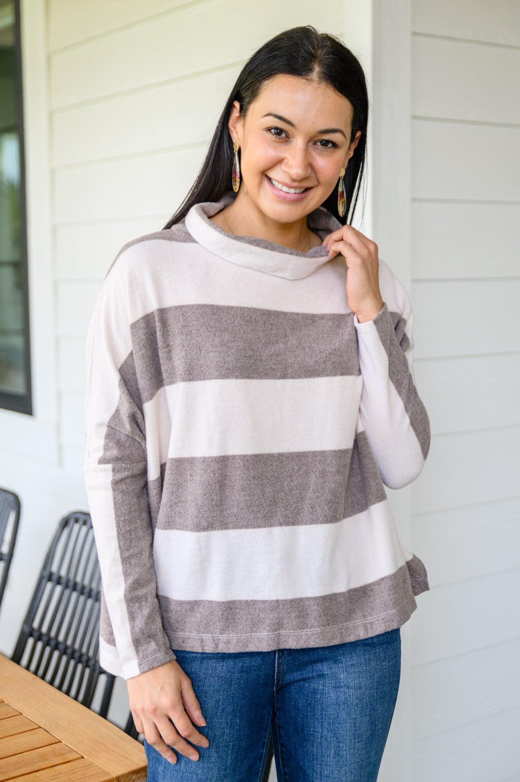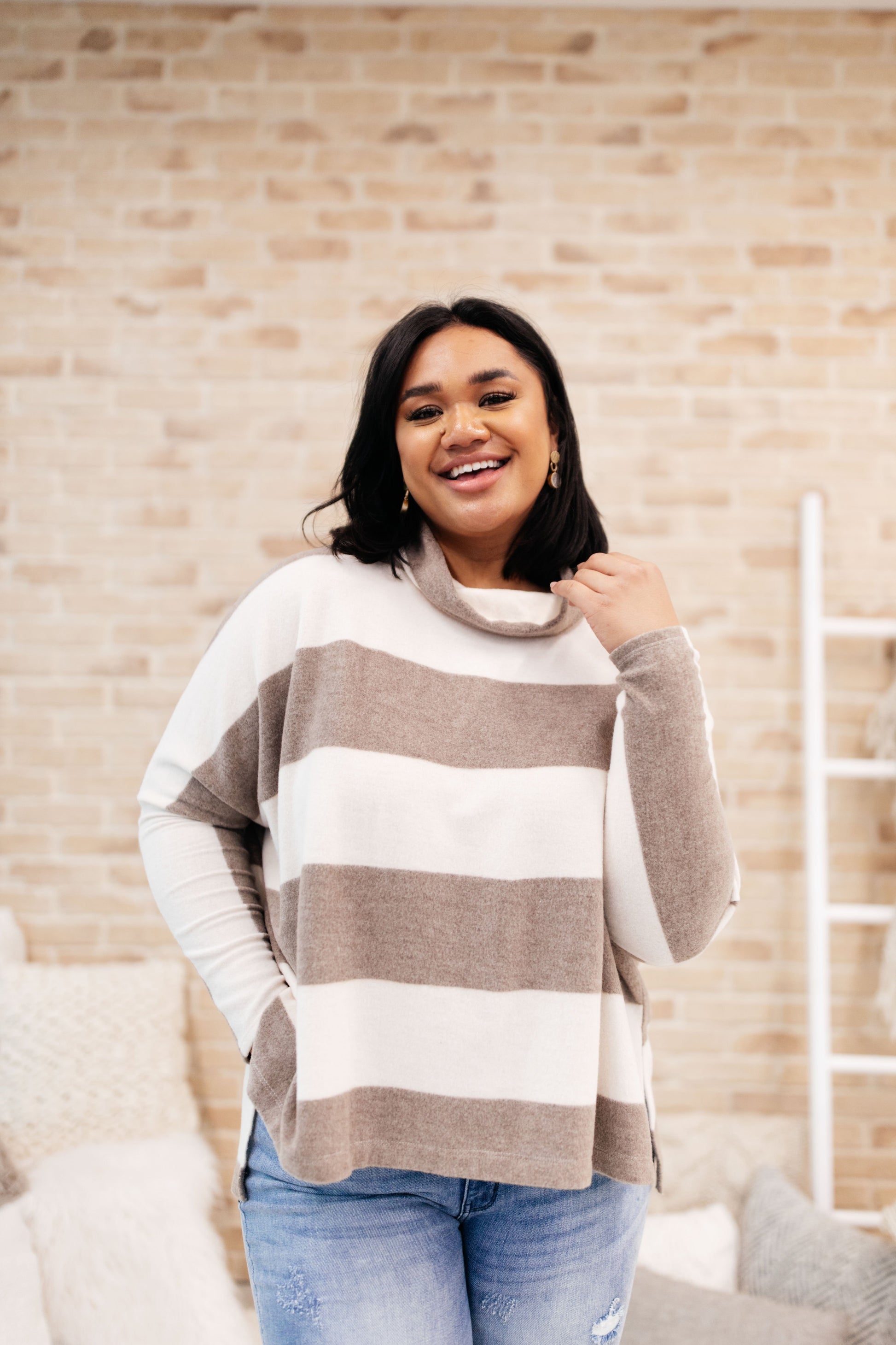 On The Stripes Cowl Neck in Mocha