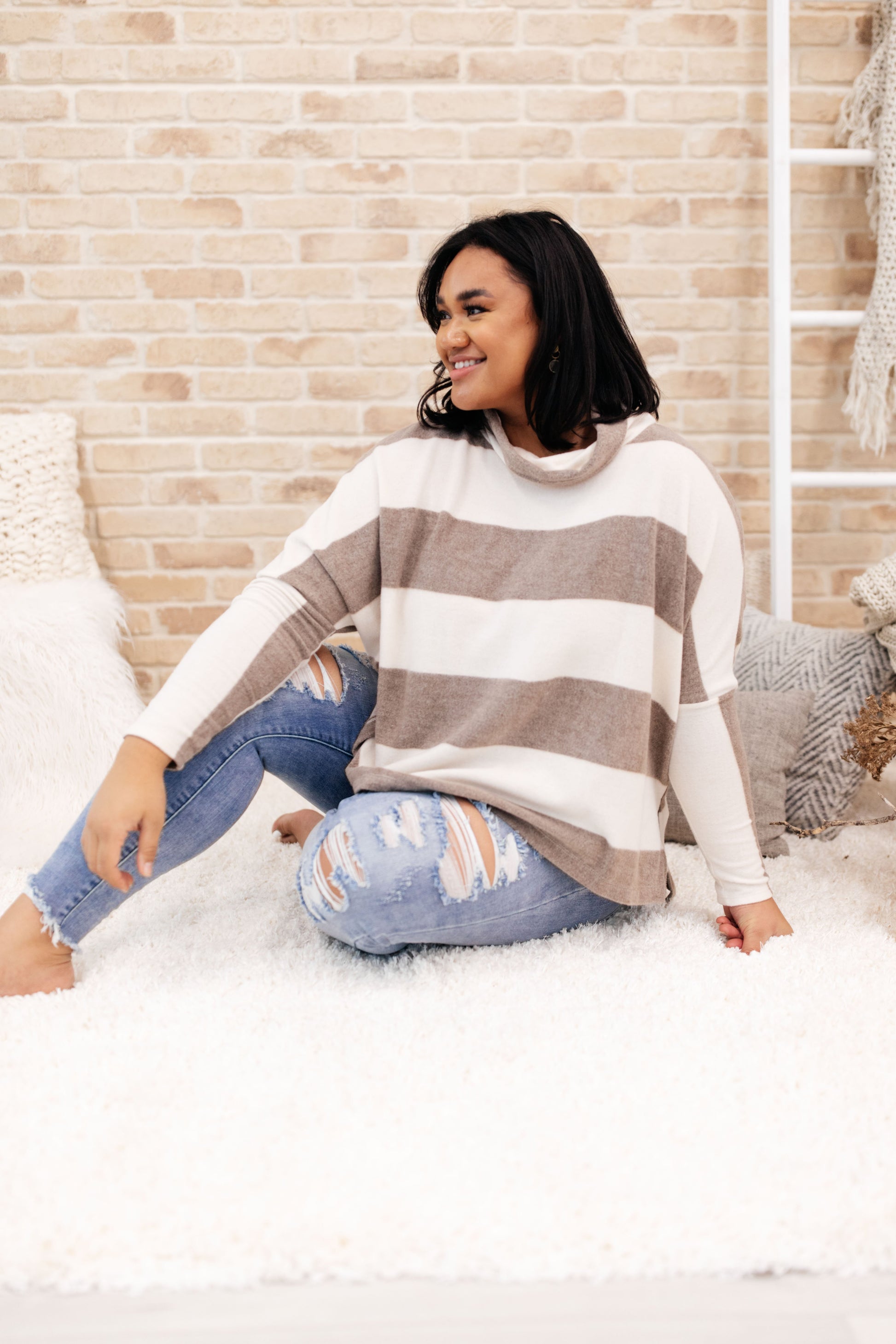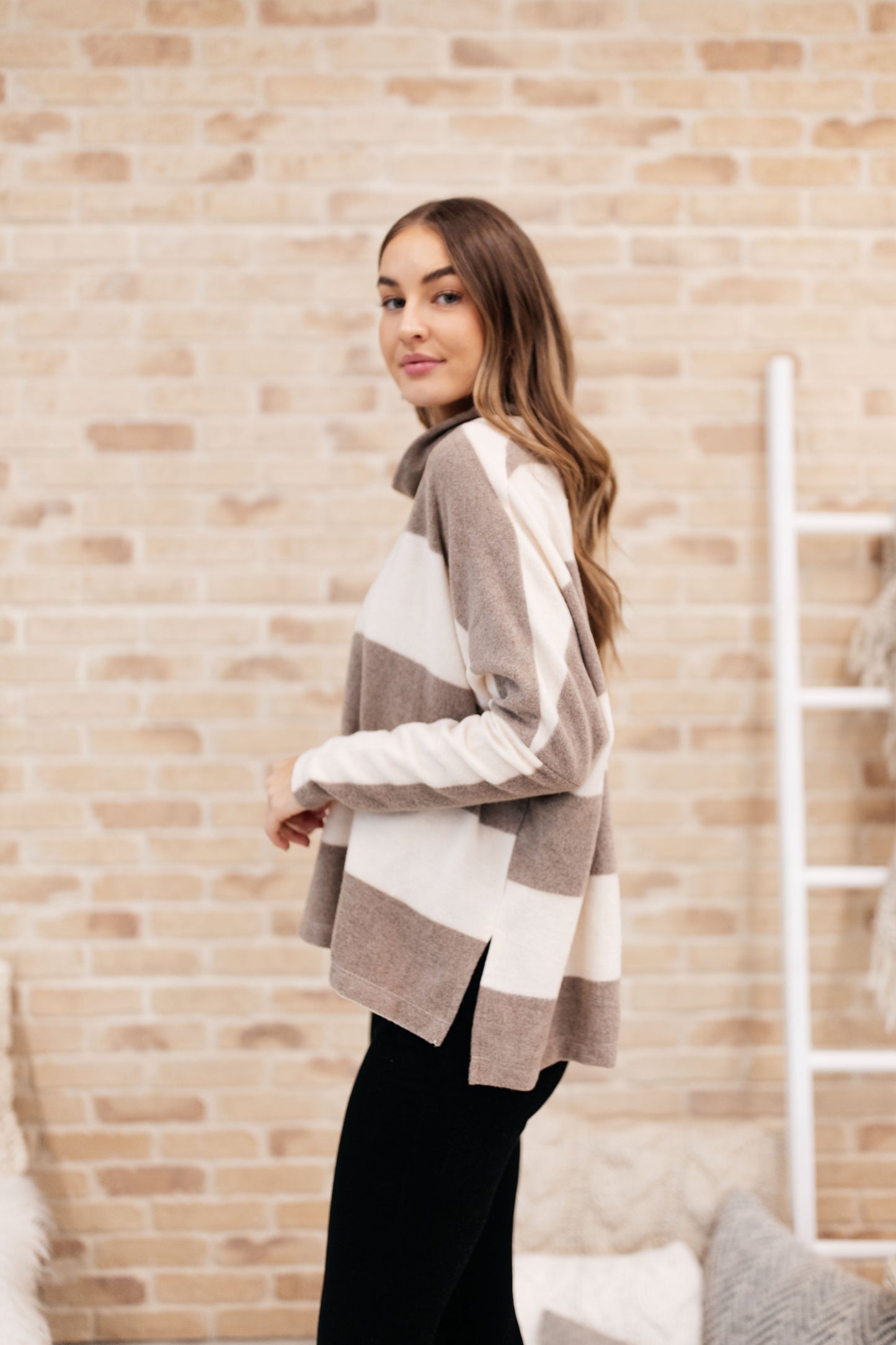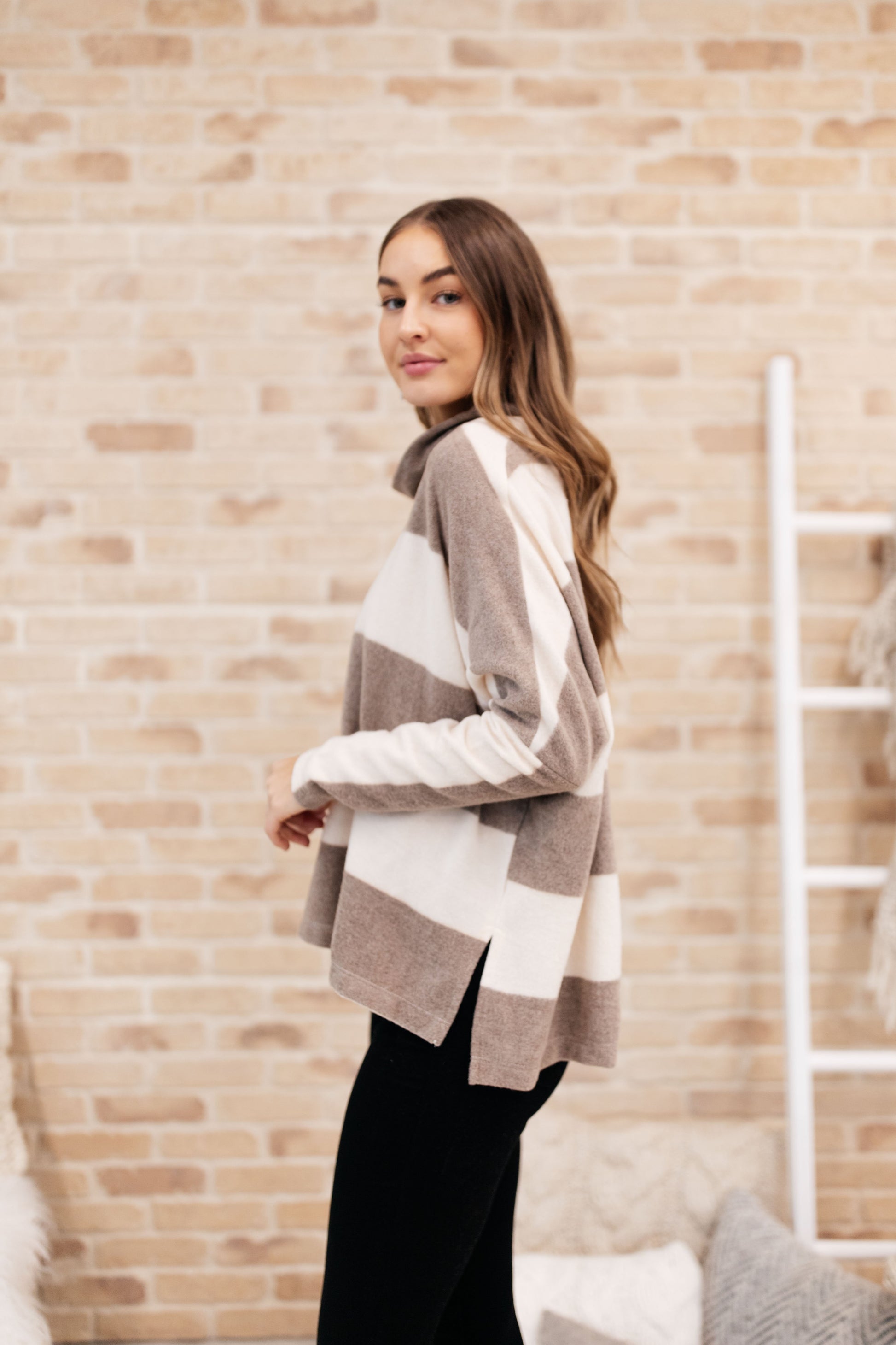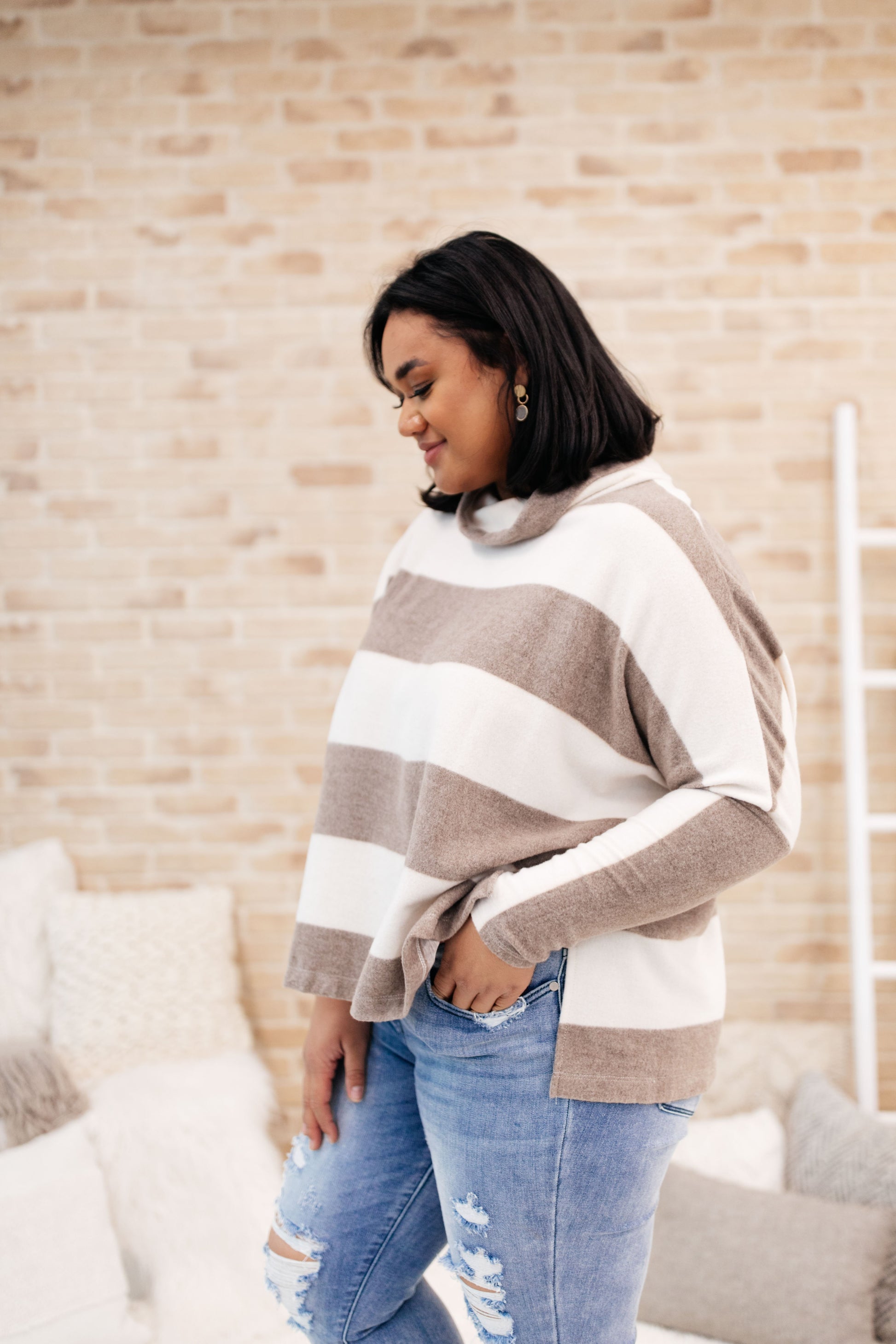 On The Stripes Cowl Neck in Mocha