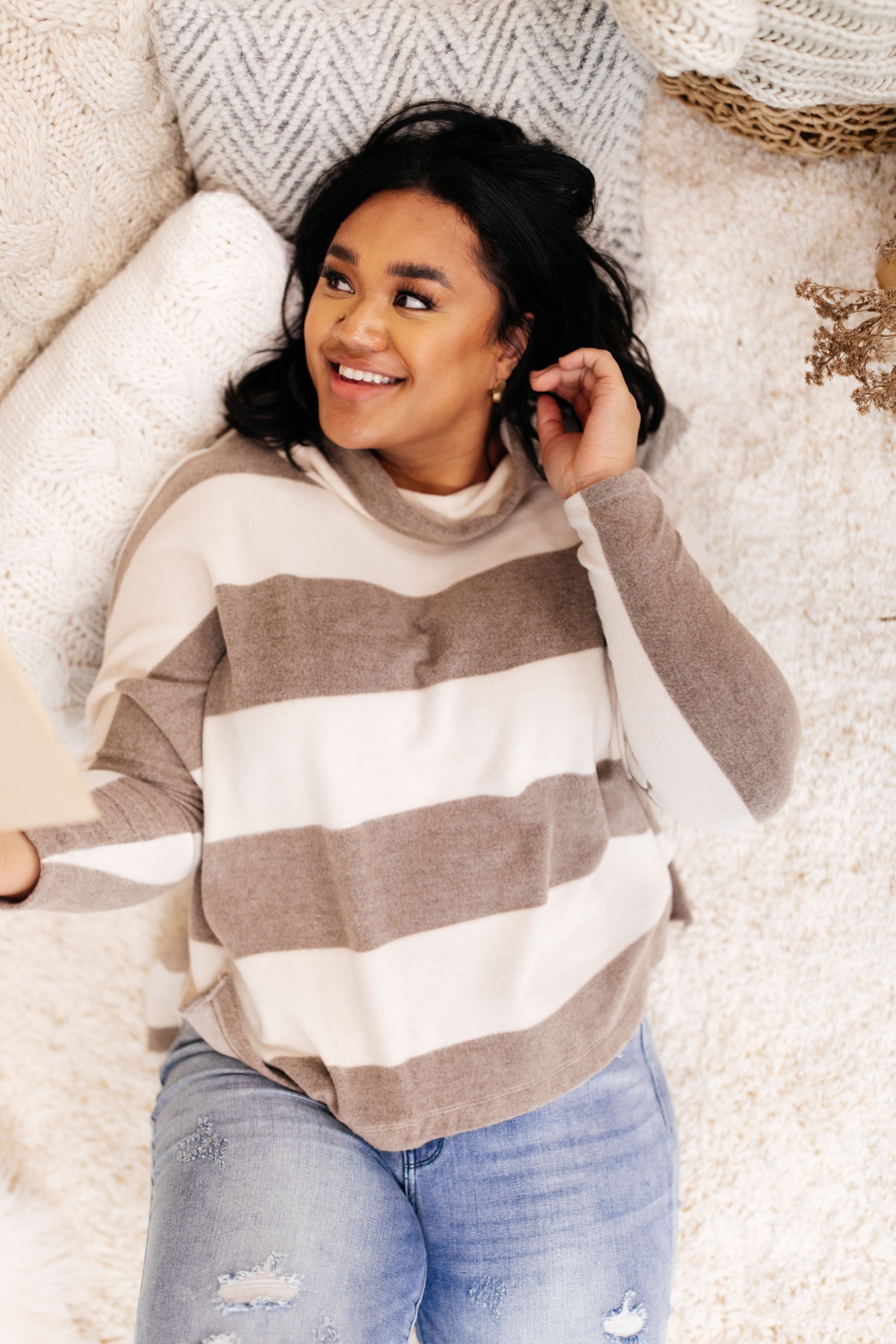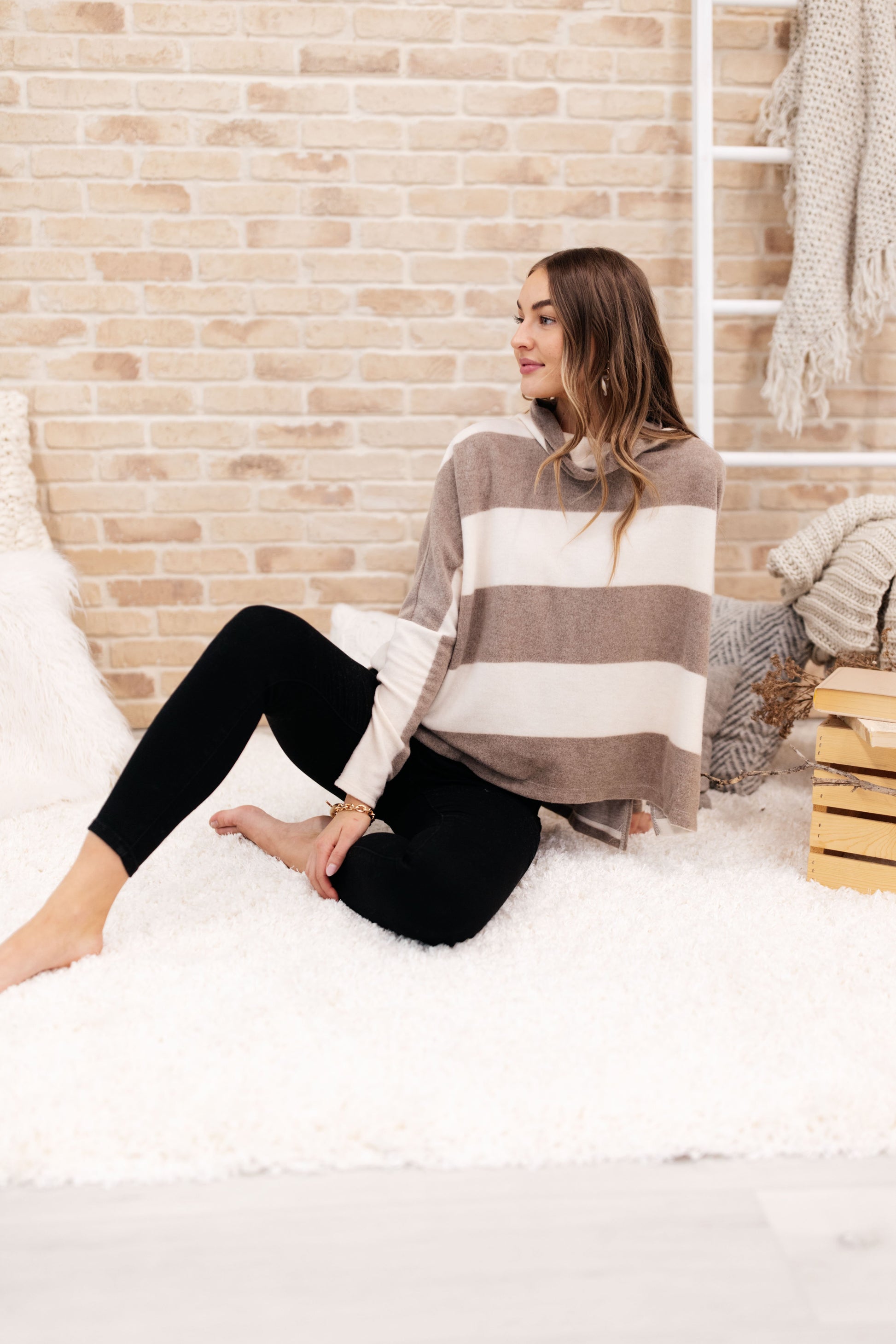 All the best memories are made cuddling up in the On The Stripes Cowl Neck Sweater! Cozy lightweight knit is perfect for those cozy days/nights as it creates a cowl neck and dolman long sleeves with drop shoulders. Relaxed bodice. Contrasting stripes creating the most flattering fit!
