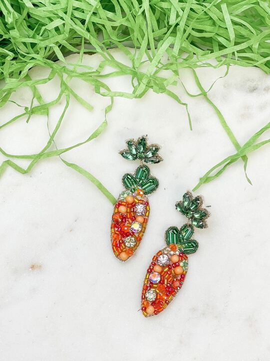 PREORDER: Easter Carrot Beaded Dangle Earrings