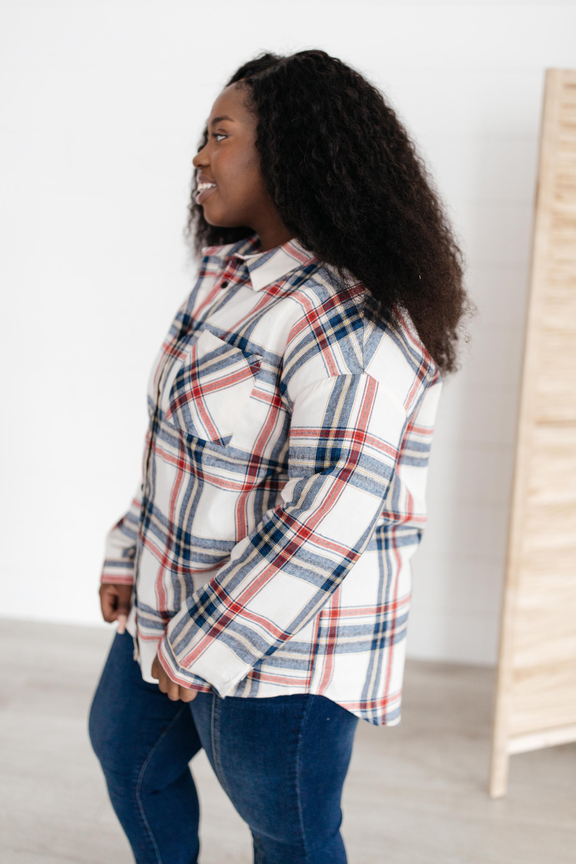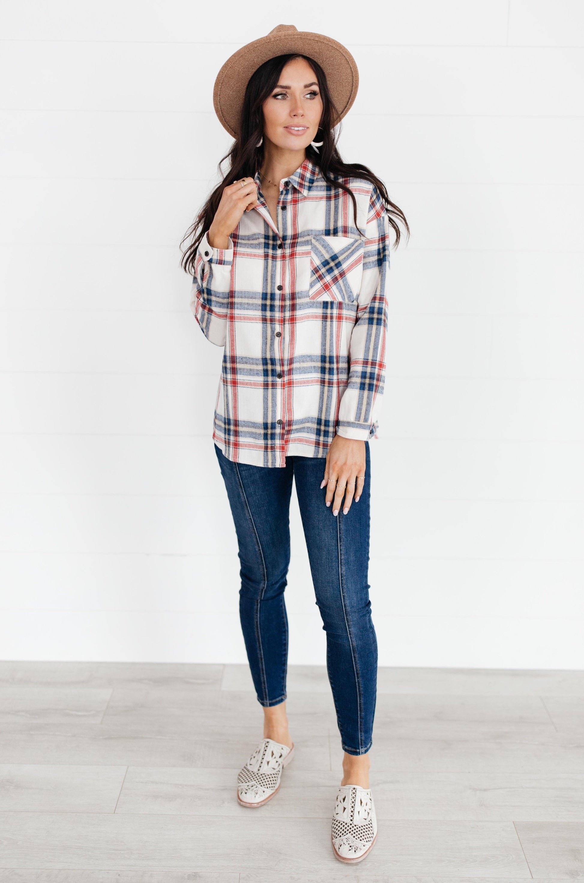 We will get you feelin' "pretty in plaid" in about 2 minutes with this button-up top! It's a medium weight material with a little bit of stretch to it to help hold its shape. It features functional buttons, long sleeves, and a collar. You can style this top unbuttoned, buttoned, or even tied around the waist!