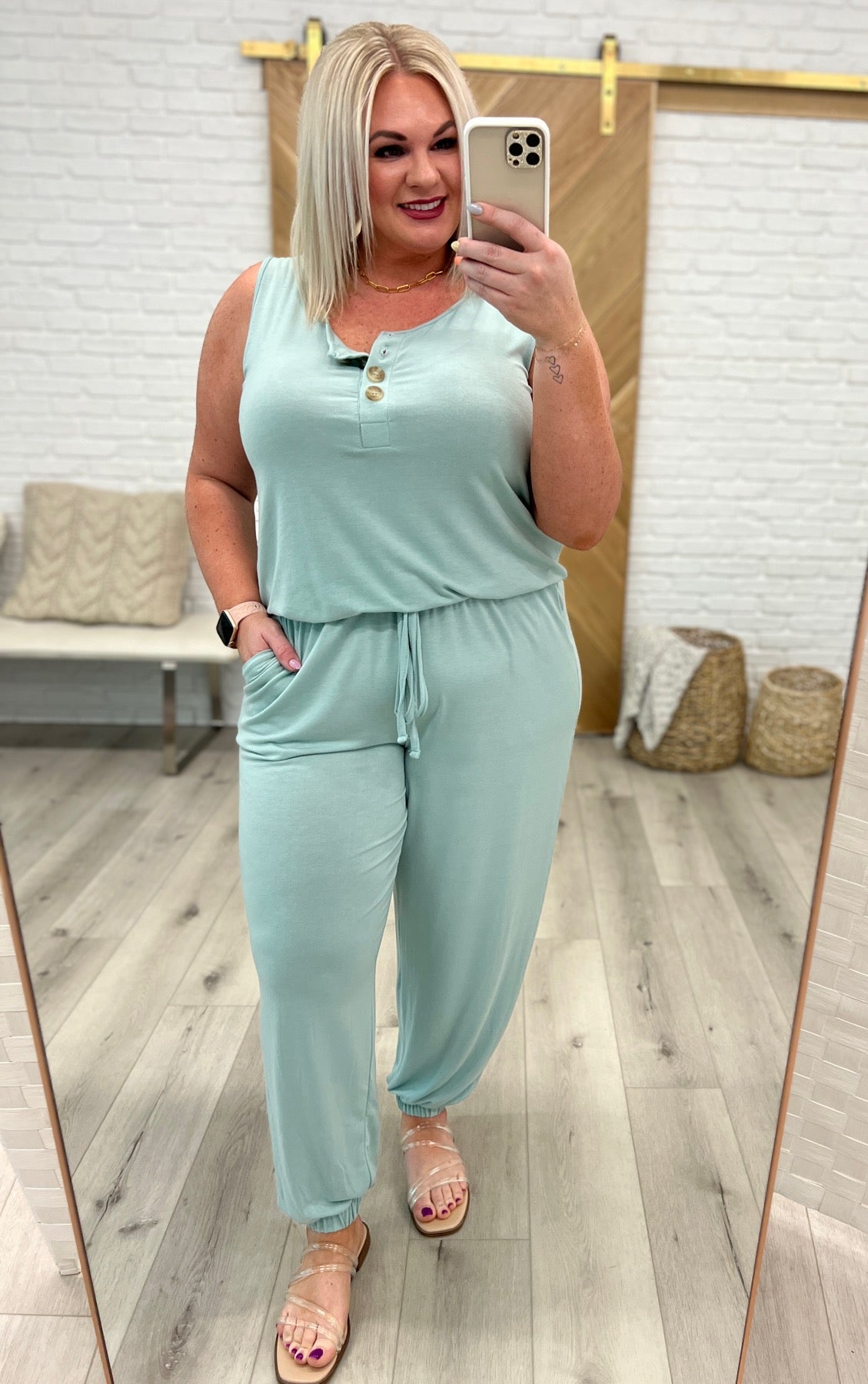 Take the hassle out of getting dressed with the Relaxing Weekend Sleeveless Jumpsuit! This versatile piece features a jogger fit, functional buttons, and convenient pockets, making it perfect for a relaxing weekend. Made from a soft jersey knit, this must-have jumpsuit is both stylish and comfortable.