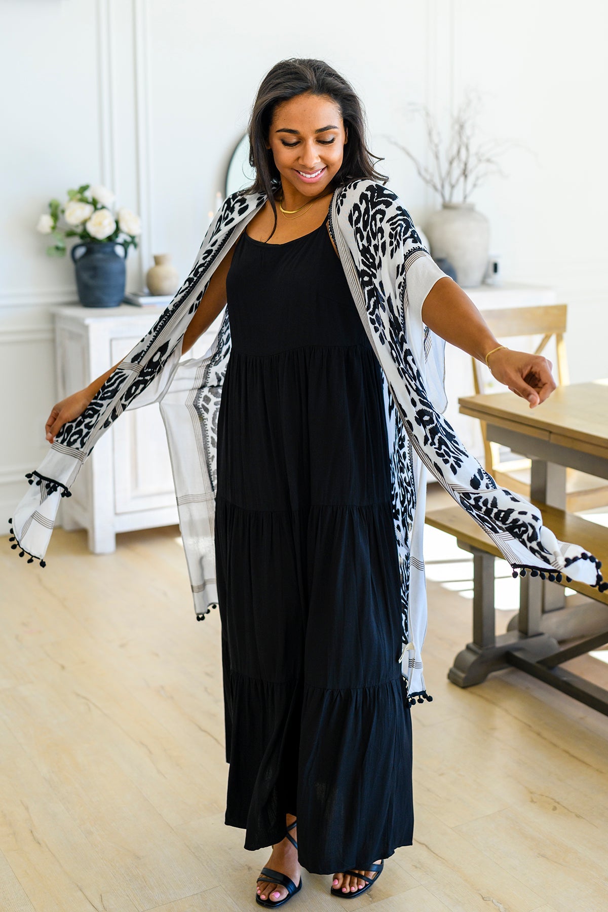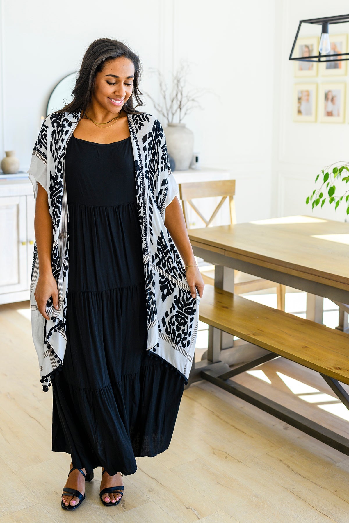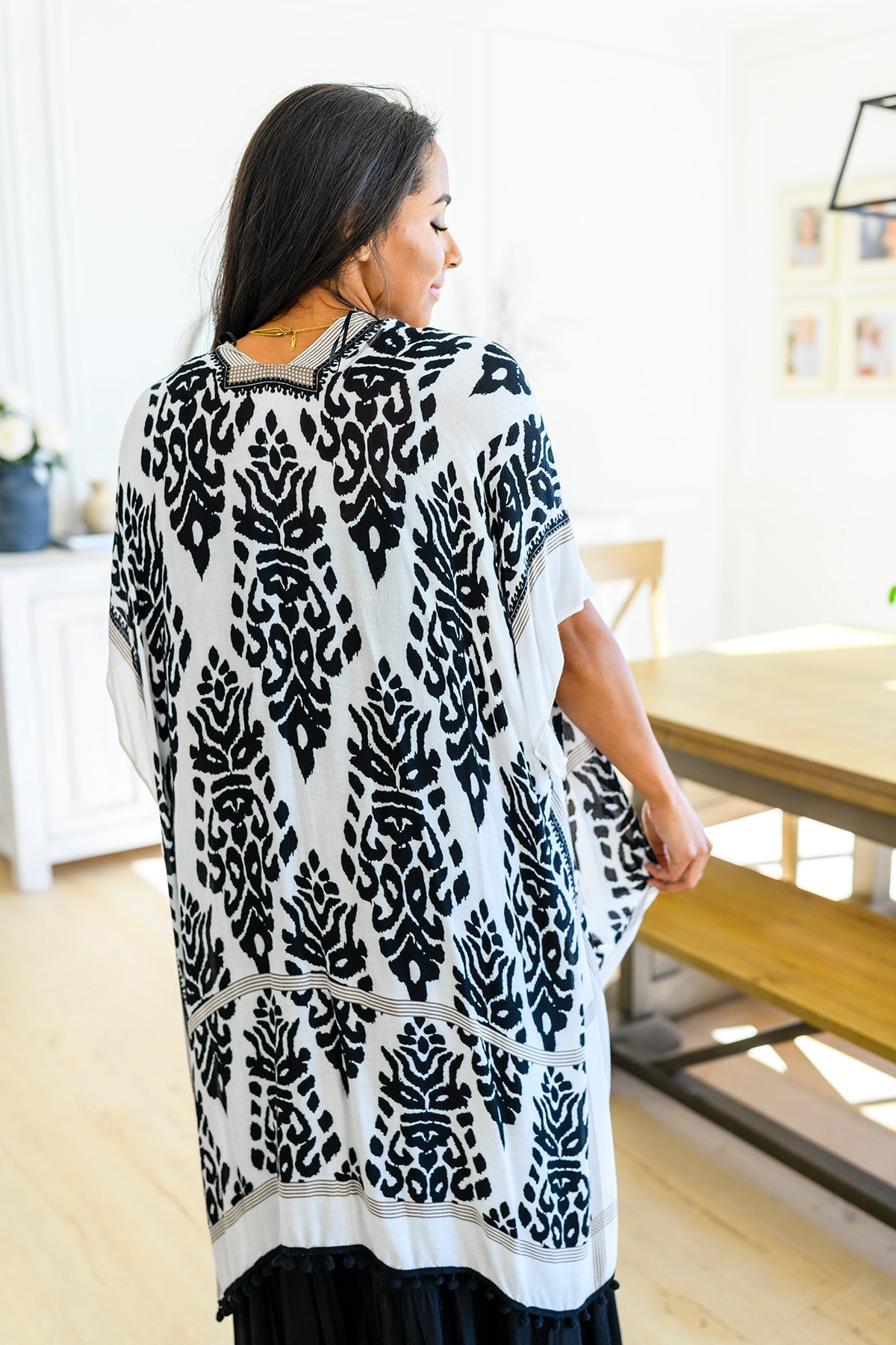 This beautiful Side Trip Draped Kimono features a stunning damask print, with a lightweight and flowy design, and an elegant open front drape. Whether you’re standing in the city, beach or around a campfire, feel the effortless elegance of this striking shilouette. What will be your next side trip?