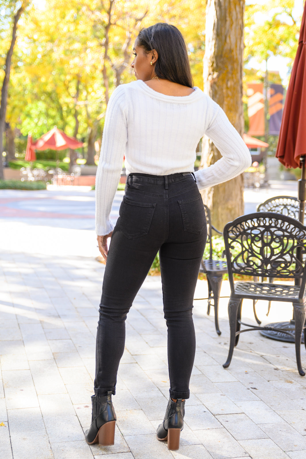 You can never ever go wrong with a classic black skinny and the Stepping Out High Rise Classic Skinny is just what you need! Featuring a hi-rise waist with a five pocket cut and zipper fly. A sleek black skinny pant leg makes these jeans ultra flattering and easy to pair with anything!