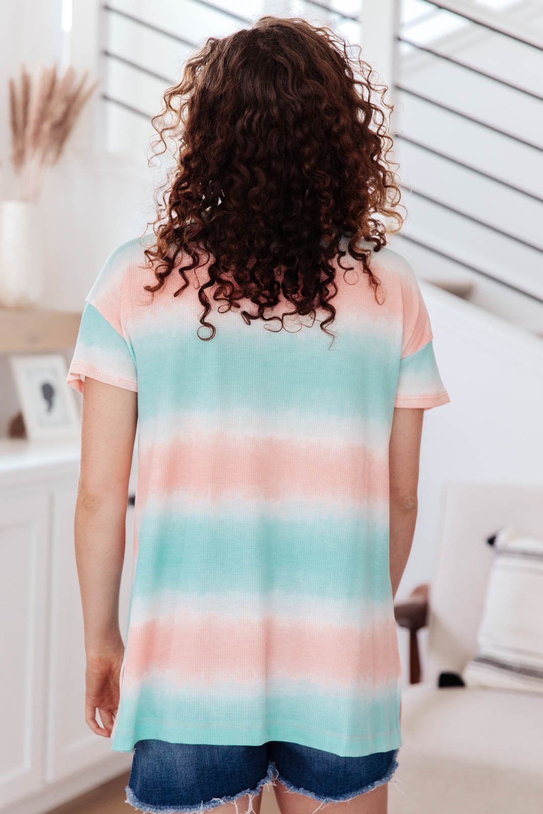 The Sweet Pastels Top in Mint is the perfect loose fitting tee! This v neck tee features thick stripes of soft pastel colors. Pair this with some leggings for a cute and casual outfit.