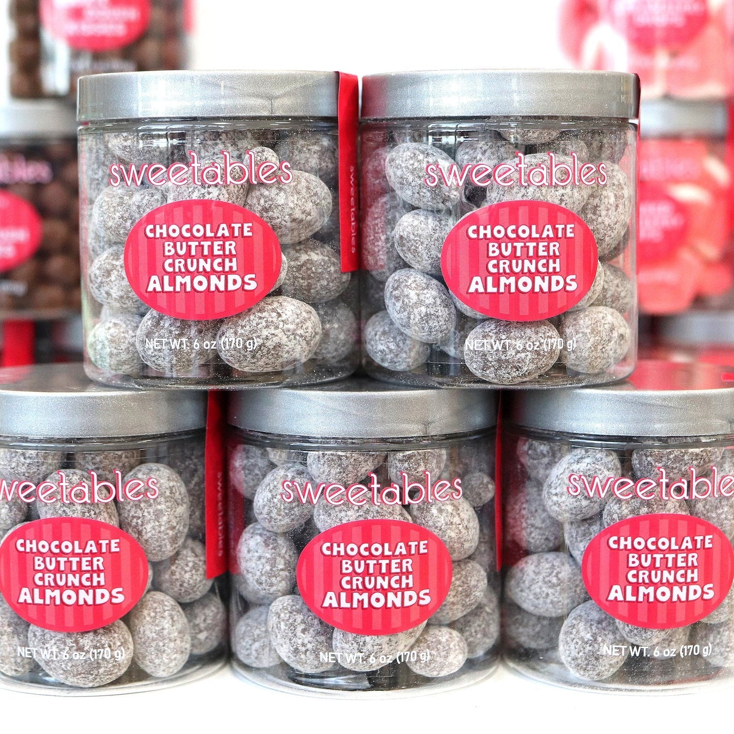My my! These chocolate butter toffee nuts are so...mmmm. Just as you'd image: fresh almonds, covered in a crunchy buttery toffee shell, then drenched in rich (melt in your mouth) milk chocolate, and finally, ever so lightly dusted with a powdered sugar coating. Oh yes!