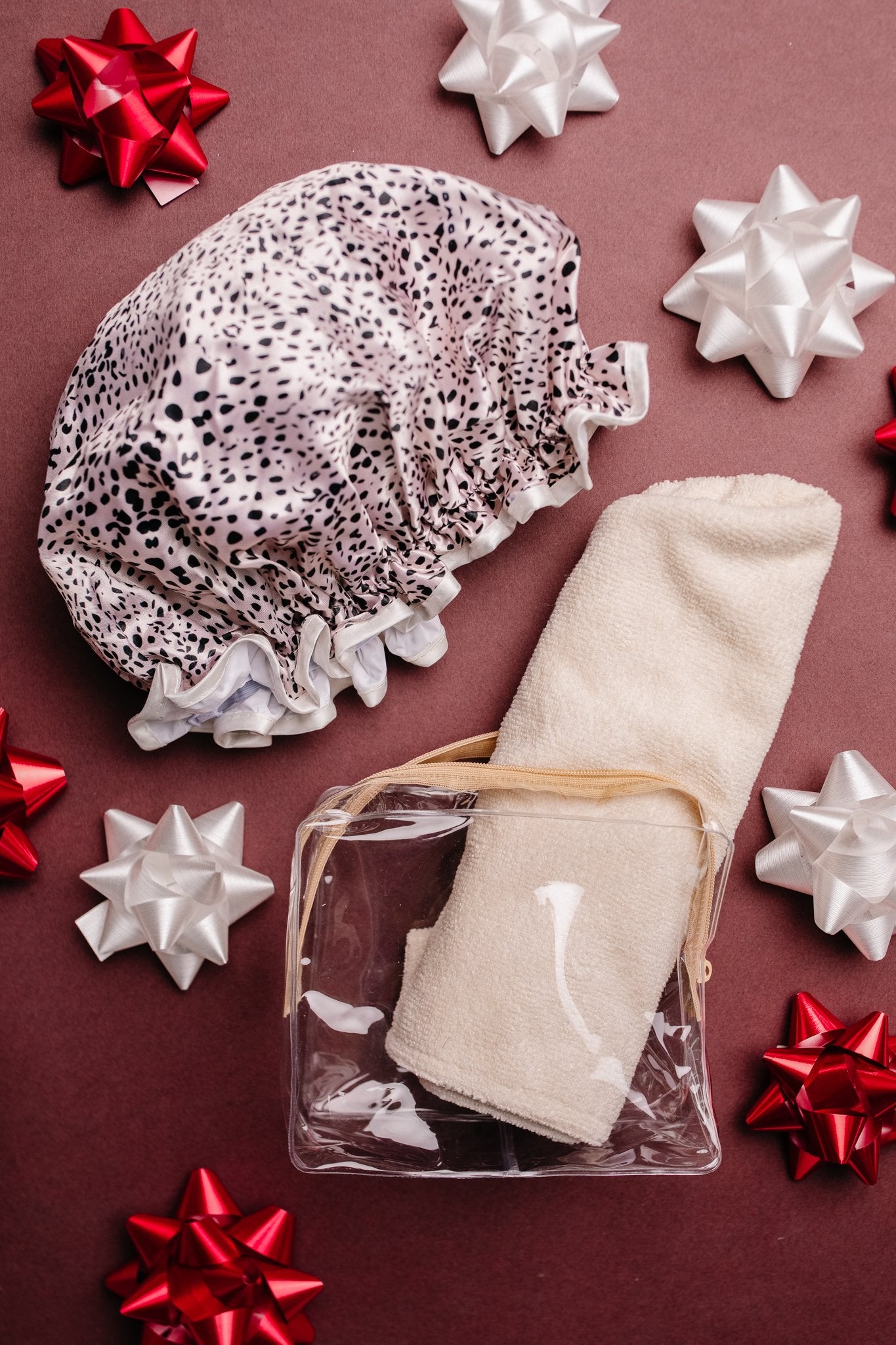Maybe some people think a shower cap is crazy, but they're actually ingenious! Washing your hair every day can be incredibly drying and damaging. A great way to make sure your hair stays dry and styled longer while still washing your body daily is a shower cap! This cap keeps all the moisture out. This pack also includes a hair turban, which is a non-damaging microfiber towel perfect for helping your hair dry quickly. This gift really is the whole package!