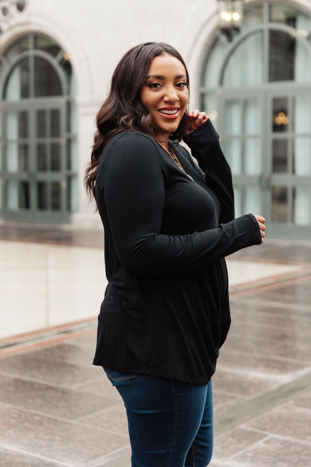 Keywords: Black Top, Knot Detail, Long Sleeve, Black Basic