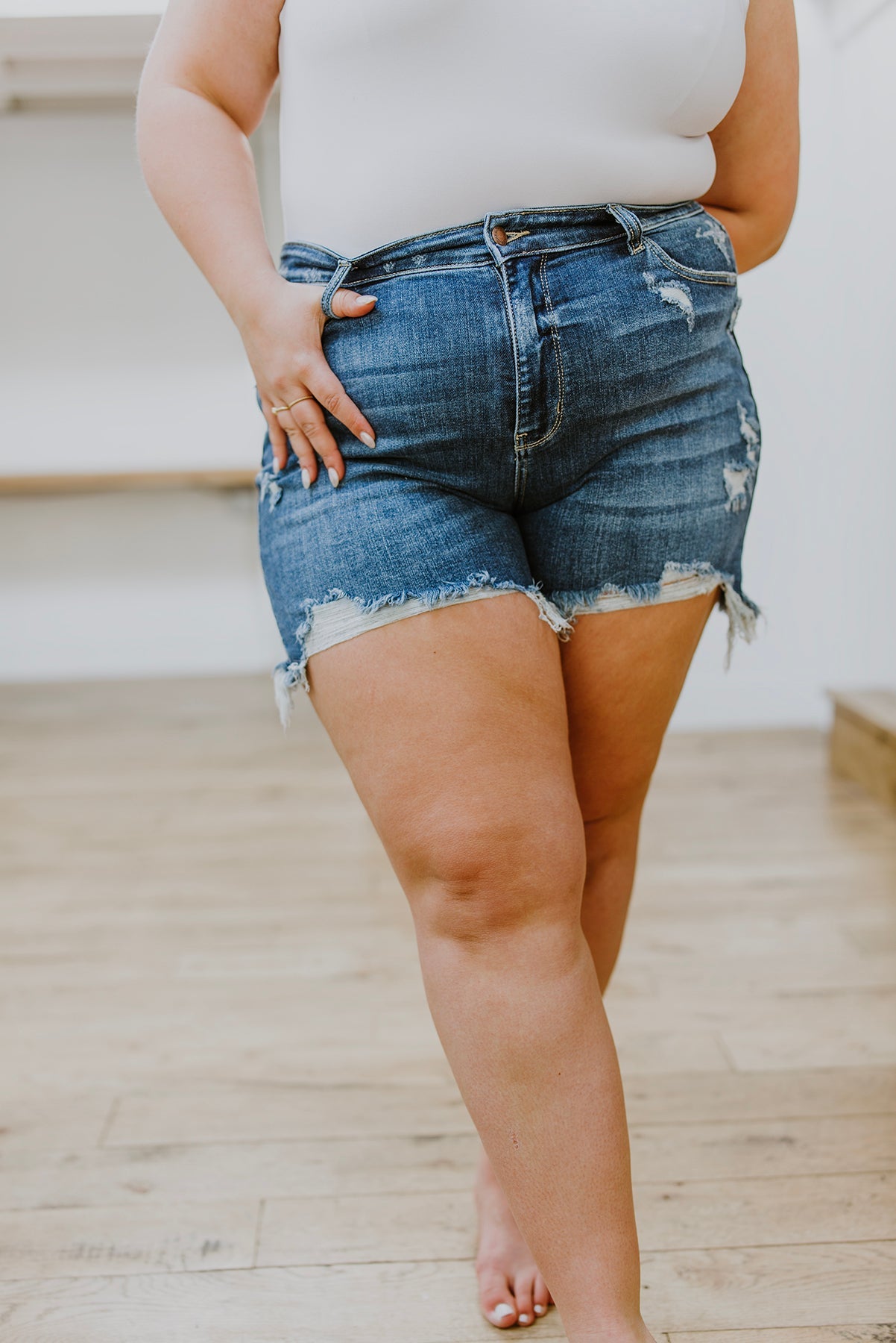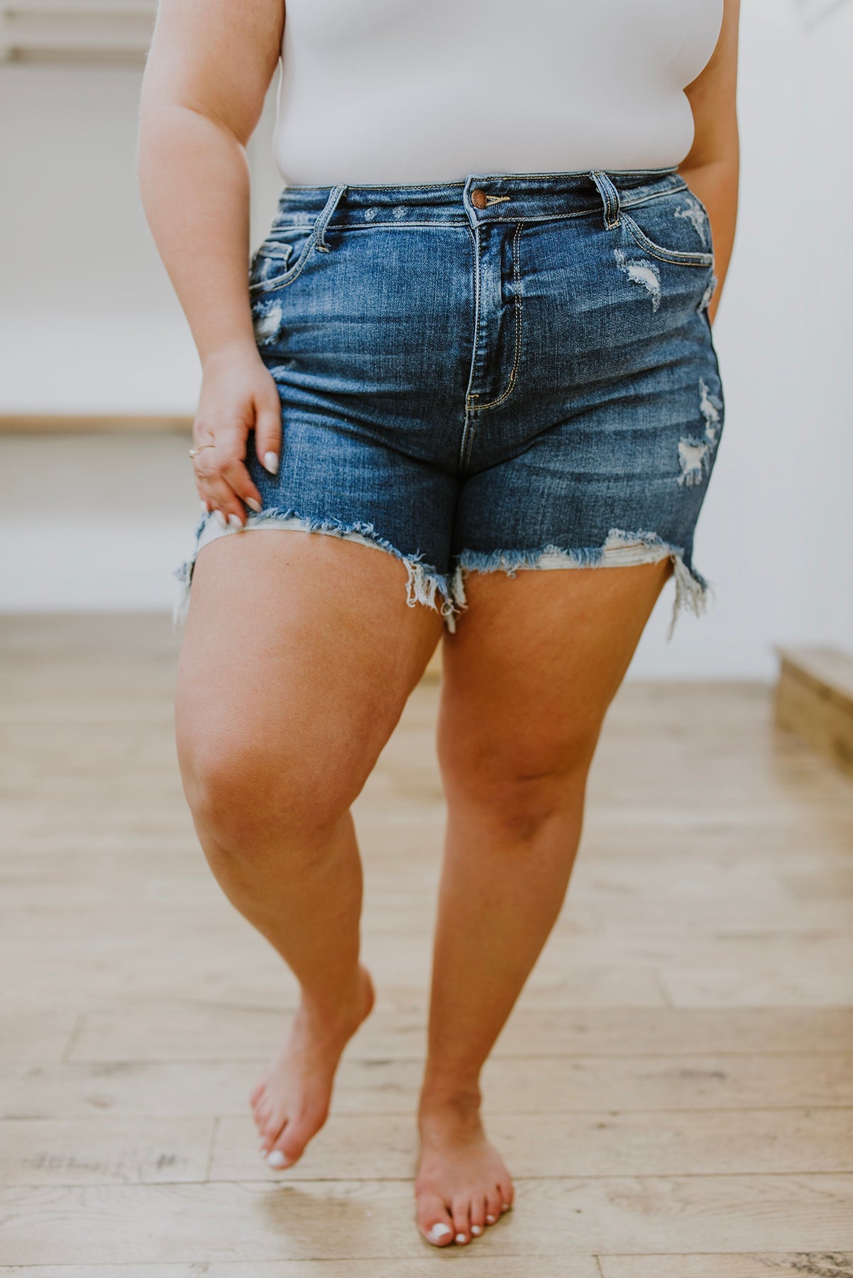 Get ready to rock your sunny looks with these Willow Destroyed Cut Off Shorts by Judy Blue! These high waisted, classic cut off shorts feature heavy distressing for a playful touch. The dark wash gives them a touch of edge, perfect for making a statement at any summer occasion. Get your pair now and be the life of the party!