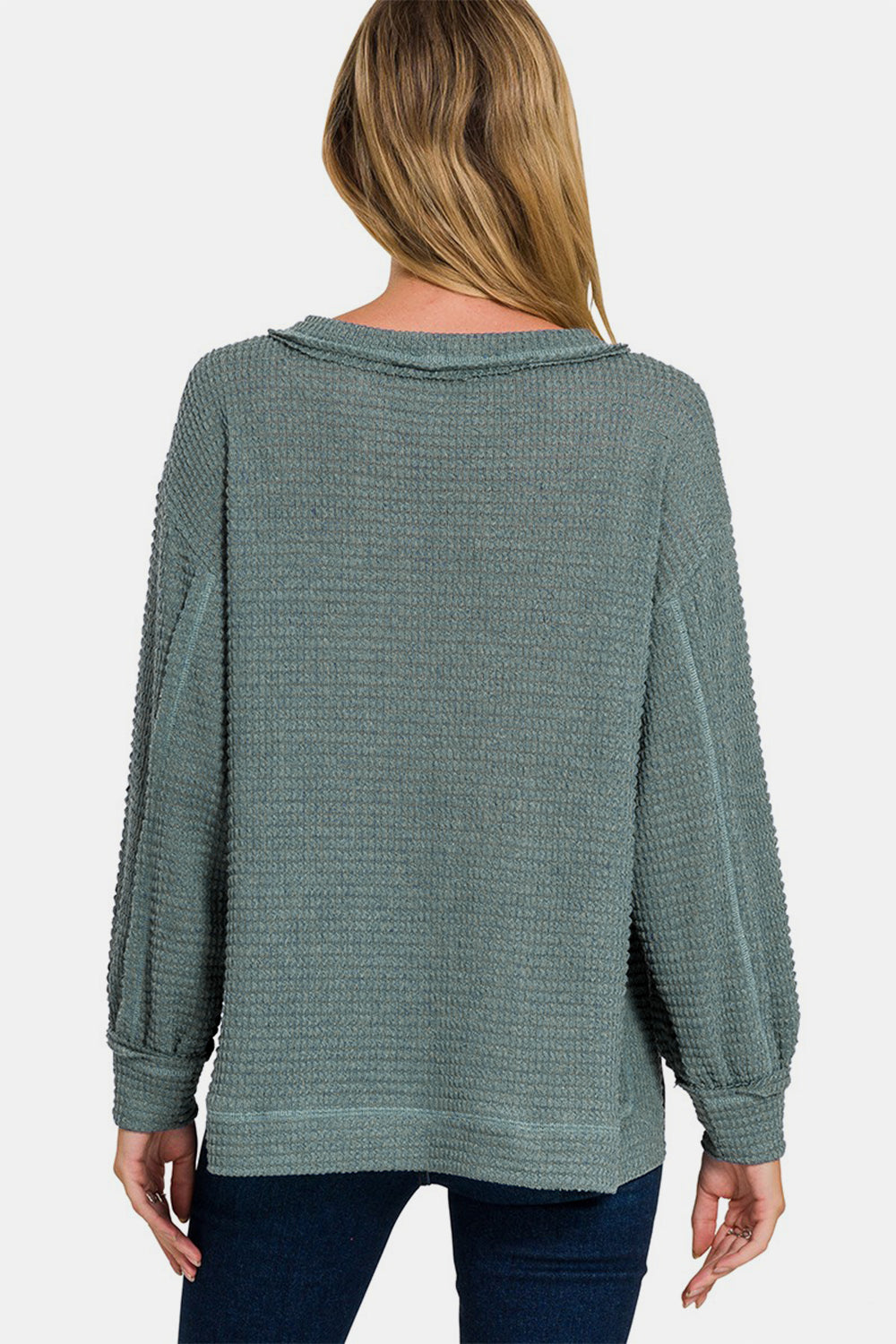 Zenana Exposed Seam Side Slit Long Sleeve Top